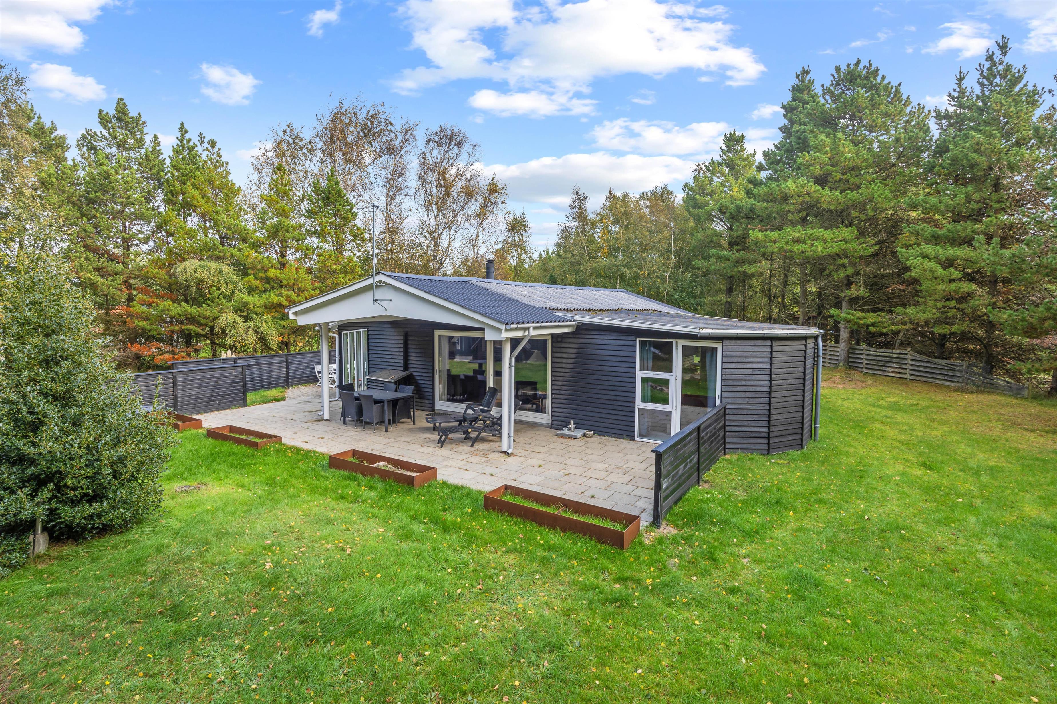 Husets højdepunkt er den store naturgrund på 2.750 m². En åben og en overdækket terrasse giver rig mulighed for at nyde den friske luft, mens du slapper af i de komfortable havemøbler. Hvad enten du tænder op i grillen eller spiller en omgang bordfodbold, bliver hvert øjeblik en oplevelse. For de aktive er der både en volleyballbane og en basketballbane på græsplænen – perfekt til hyggelig konkurrence og bevægelse i det fri. Sønderstrands dejlige badestrand ligger kun 1,1 km væk og indbyder til en forfriskende dukkert.