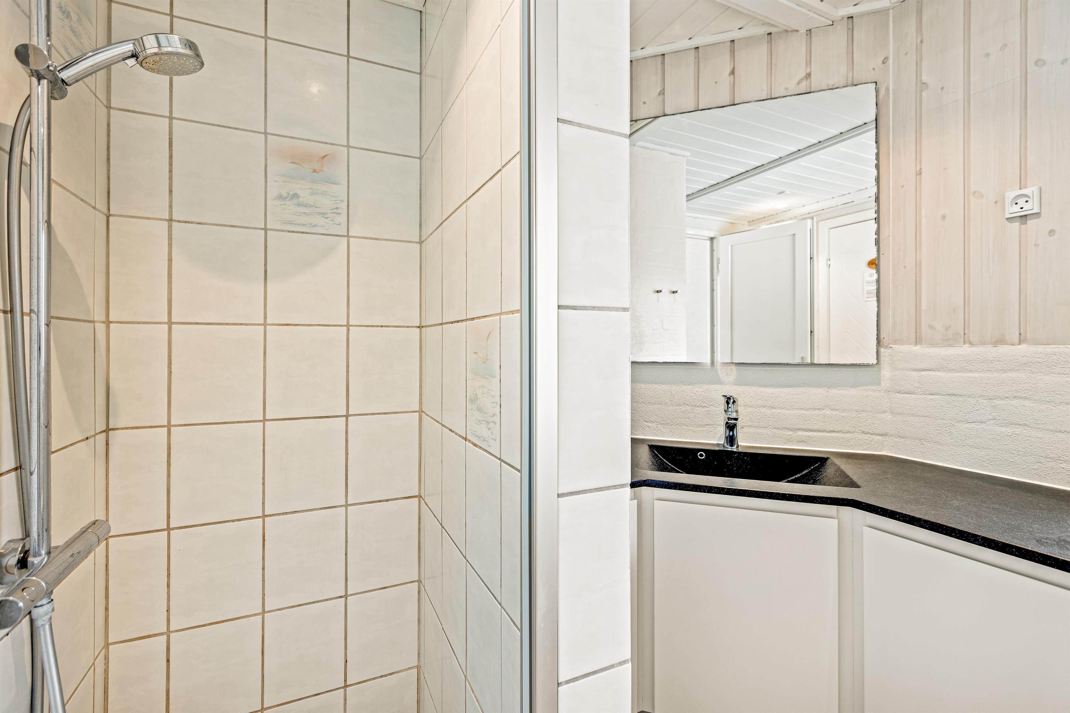 Sommerhusets andet badeværelse ligger i den anden ende af sommerhuset, hvor I også finder de 4 soveværelser. Alle soveværelser er indrettet med komfortable dobbeltsenge, og der er gulvvarme på badeværelserne. Desuden er der både vaskemaskine og tørretumbler i feriehuset.