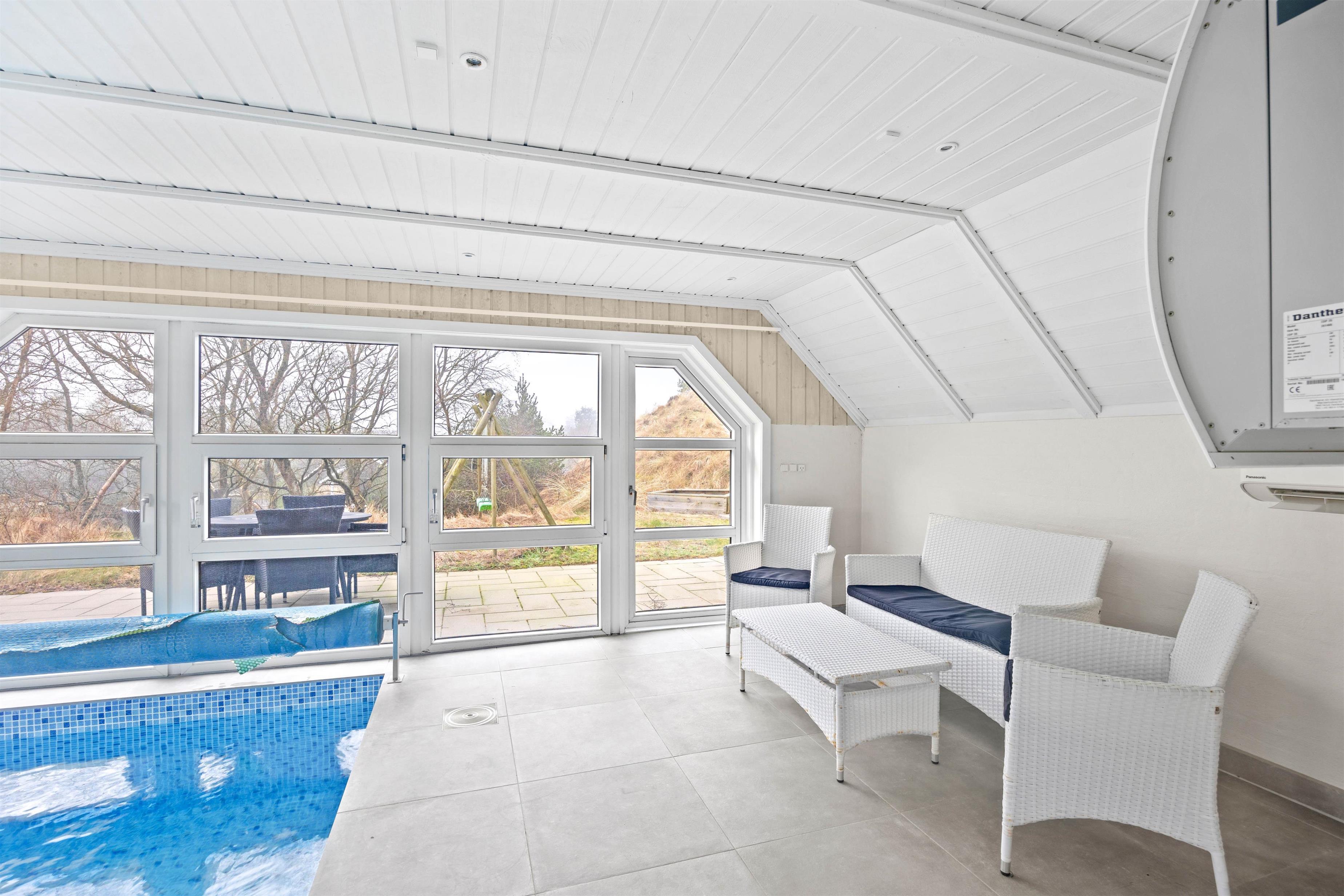 Et af sommerhusets absolutte highlights er poolrummet, hvor hele familien kan hygge sig, hvad enten I er til afslapning i spabadet eller leg i den 18 m2 store pool. I forbindelse med poolrummet ligger det ene af sommerhusets 2 badeværelser. Her finder I indgangen til saunen, som fuldender wellnessoplevelsen efter en tur i spaen.