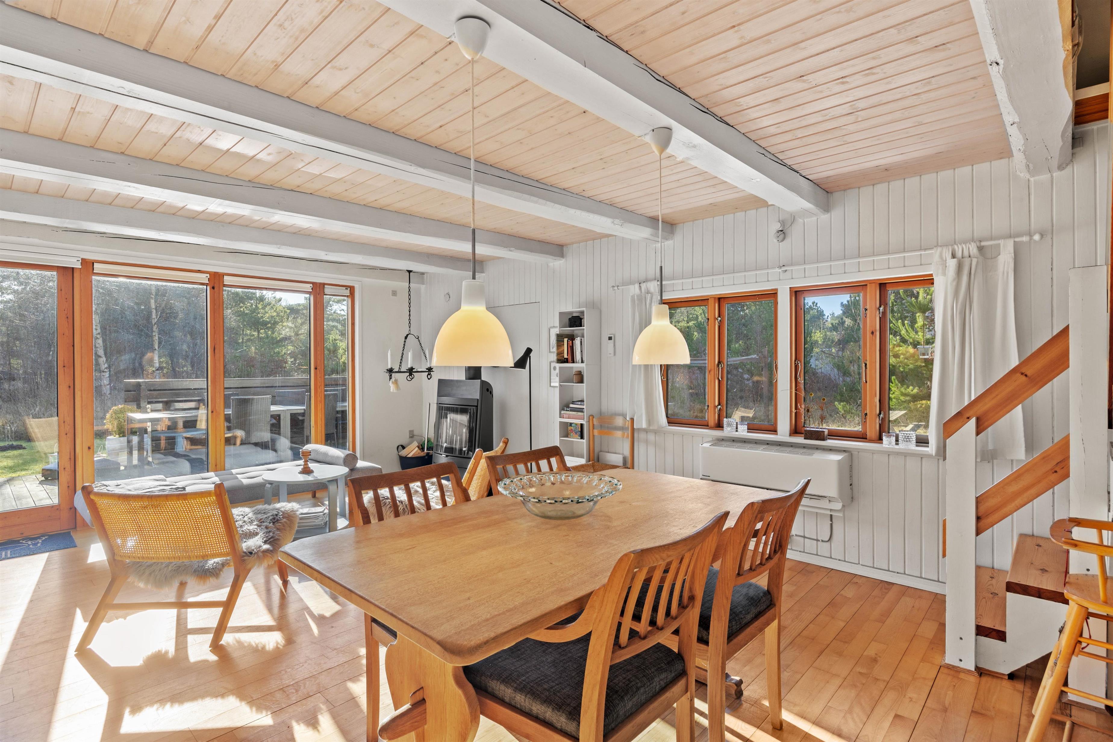 Med et rummeligt husareal på 108 m2 tilbyder dette sommerhus rigelig plads til alle. Der er 3 soverum, der sikrer en god nats søvn, mens de forskellige sovepladser gør det muligt for både børn og voksne at have deres eget rum. Sommerhuset er udstyret med en brændeovn, der skaber en varm og indbydende atmosfære, især på køligere aftener. Desuden sørger en moderne luft til luft varmepumpe for behageligt indeklima året rundt.