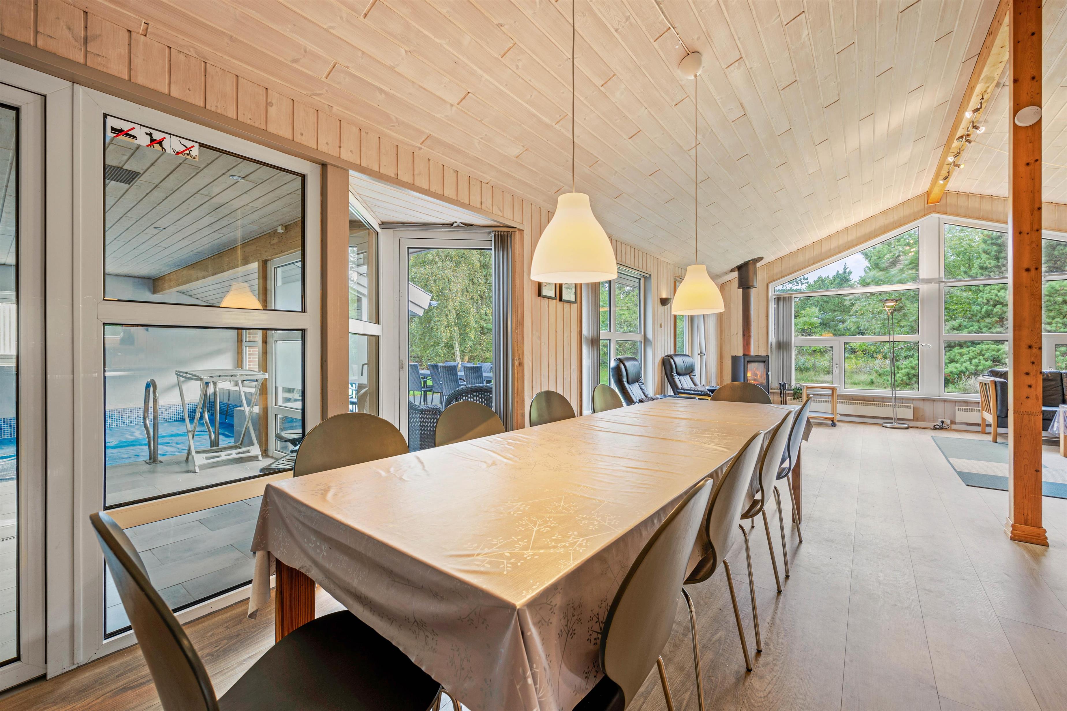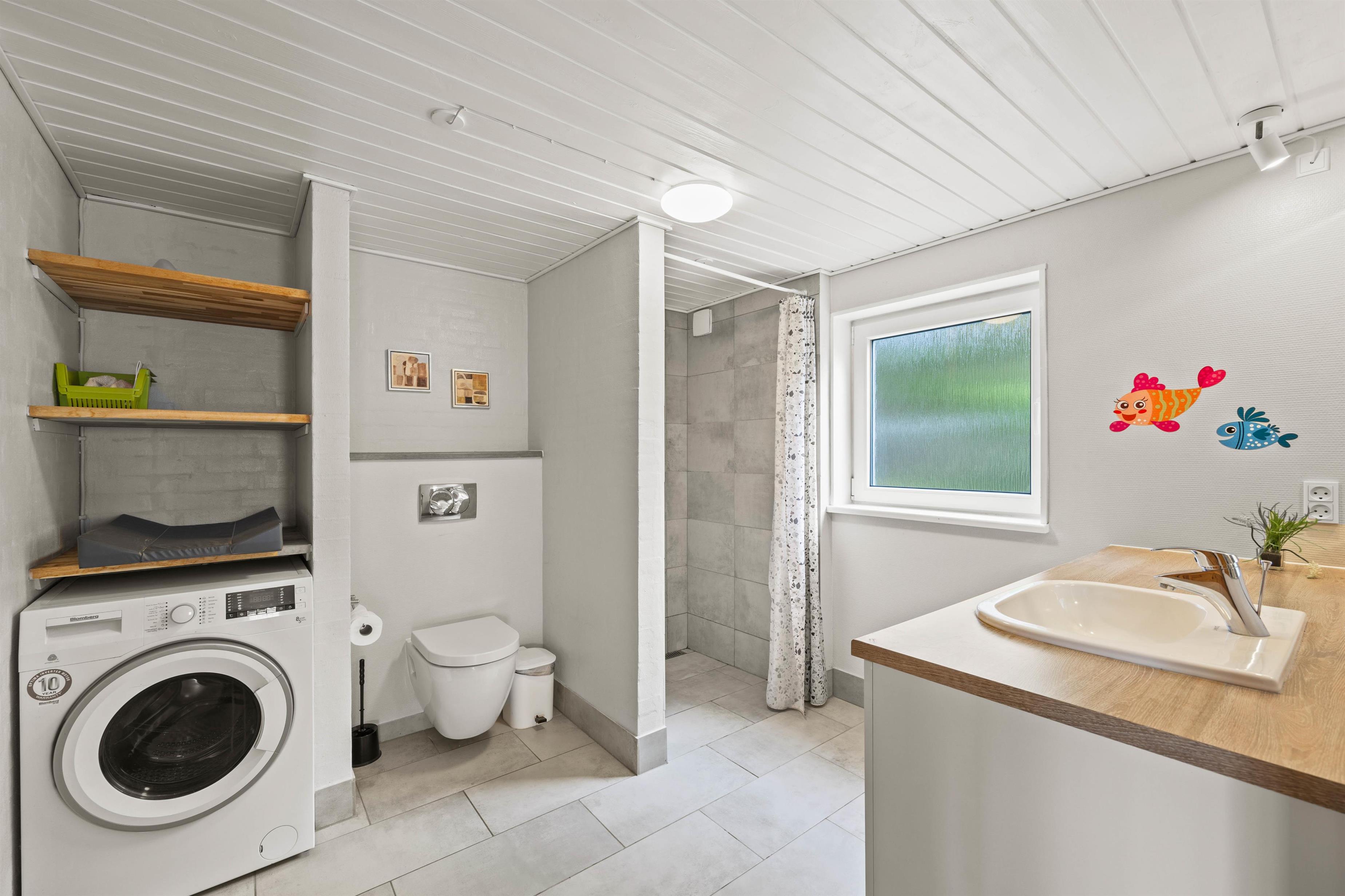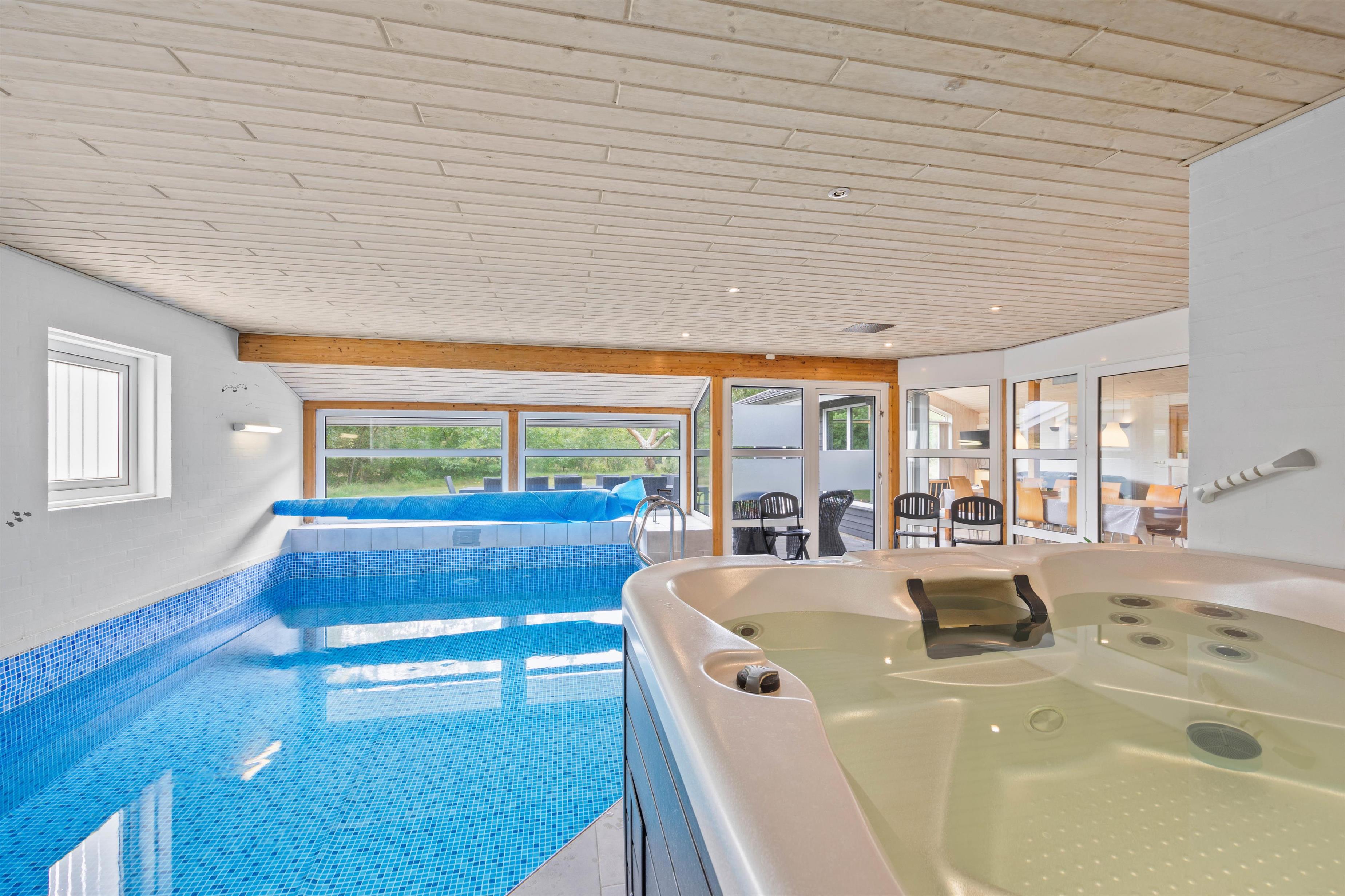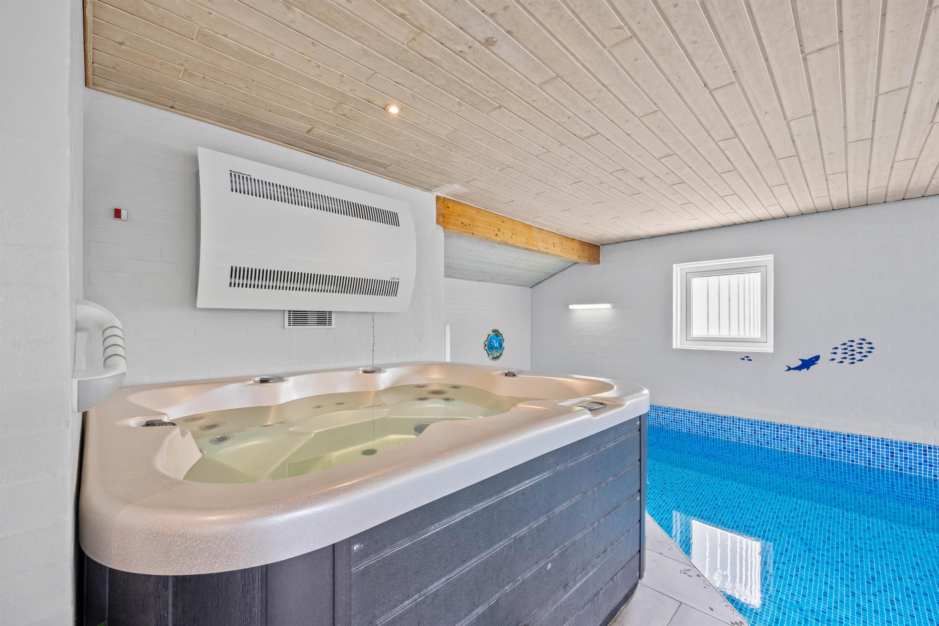 Feriehusets poolrum byder både på sjove og afslappende tider. Her finder I en 23 m2 pool, en spa og en sauna. Sommerhuset har 2 badeværelser, som begge har gulvvarme, og derudover er der også en vaskemaskine og en tørretumbler.