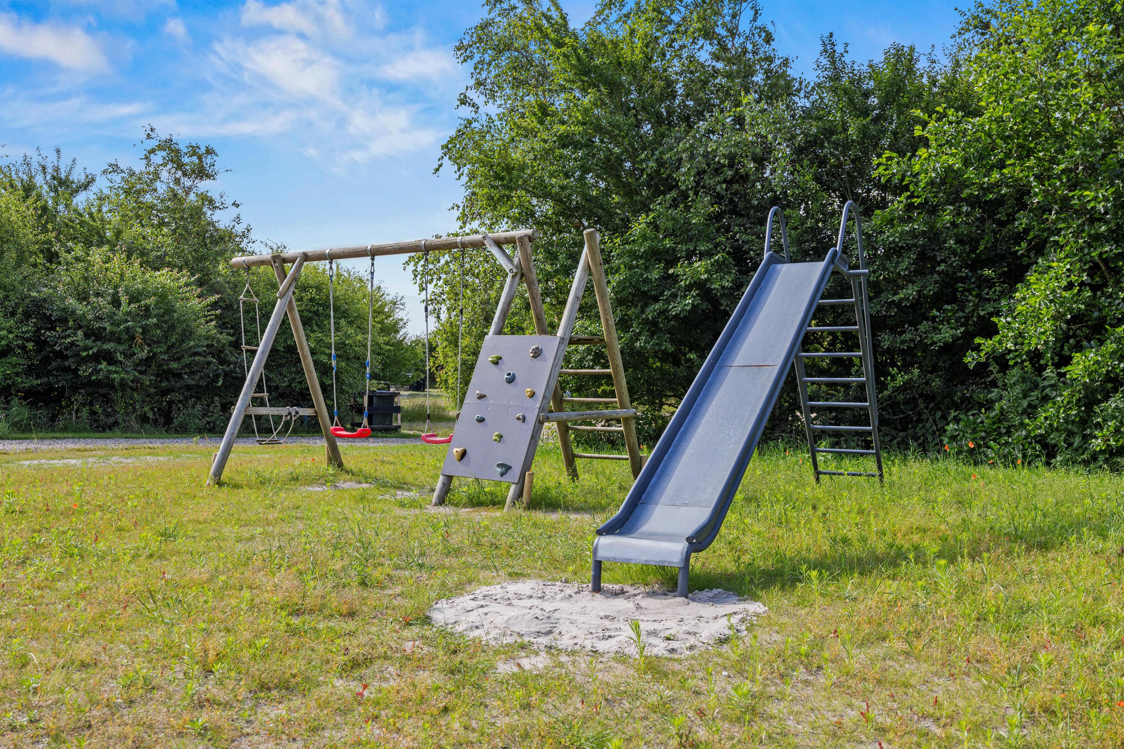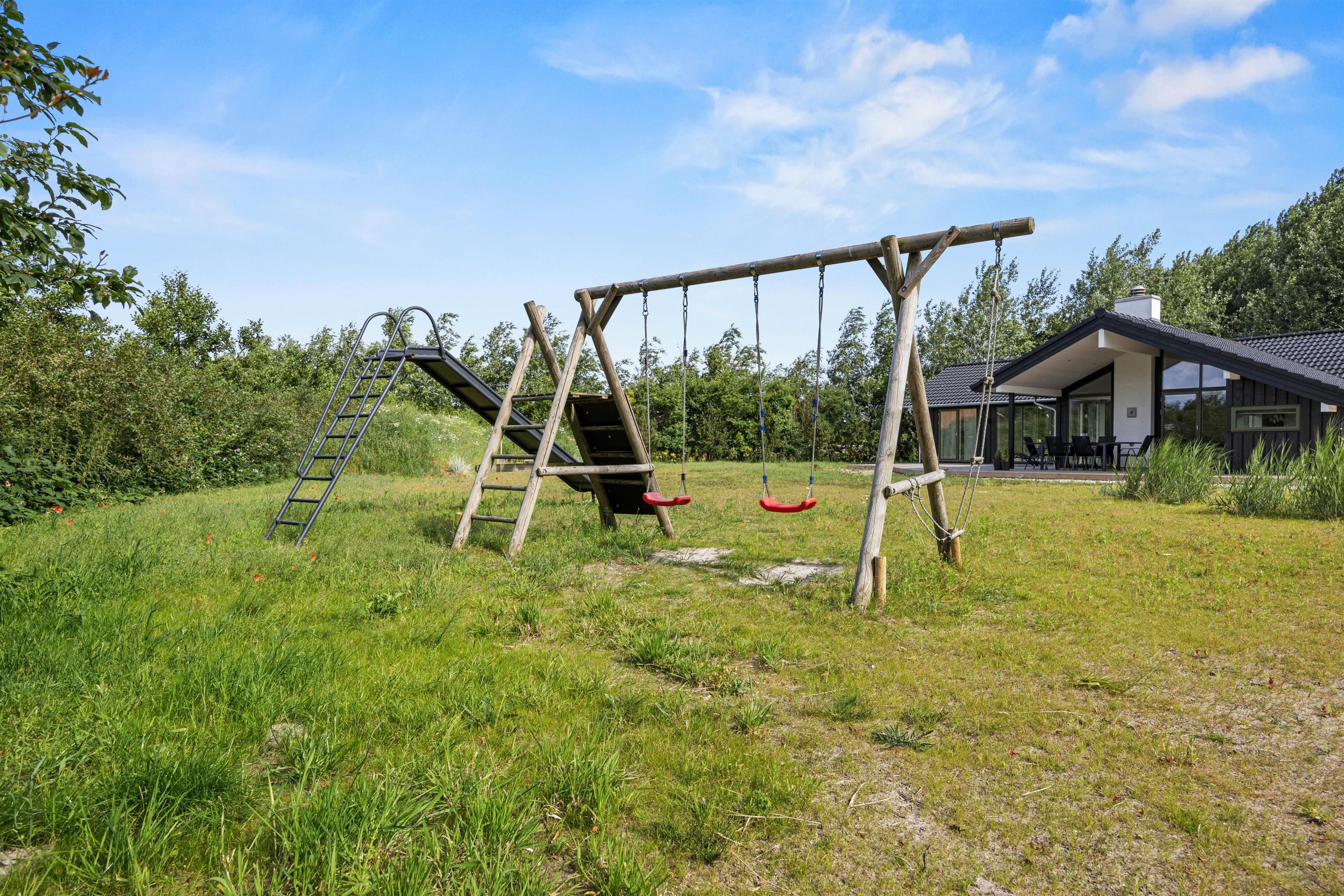 Det moderne feriehus ligger på en naturgrund på ca. 2500 kvadratmeter. Ved feriehuset er der ladestik til el-bil, en udendørs bruser i sommerhalvåret samt en stor rutsjebane, gynge og sandkasse til børnene. Her finder I også et badekar, som I kan fylde med varmt eller koldt vand fra den udendørs bruser.