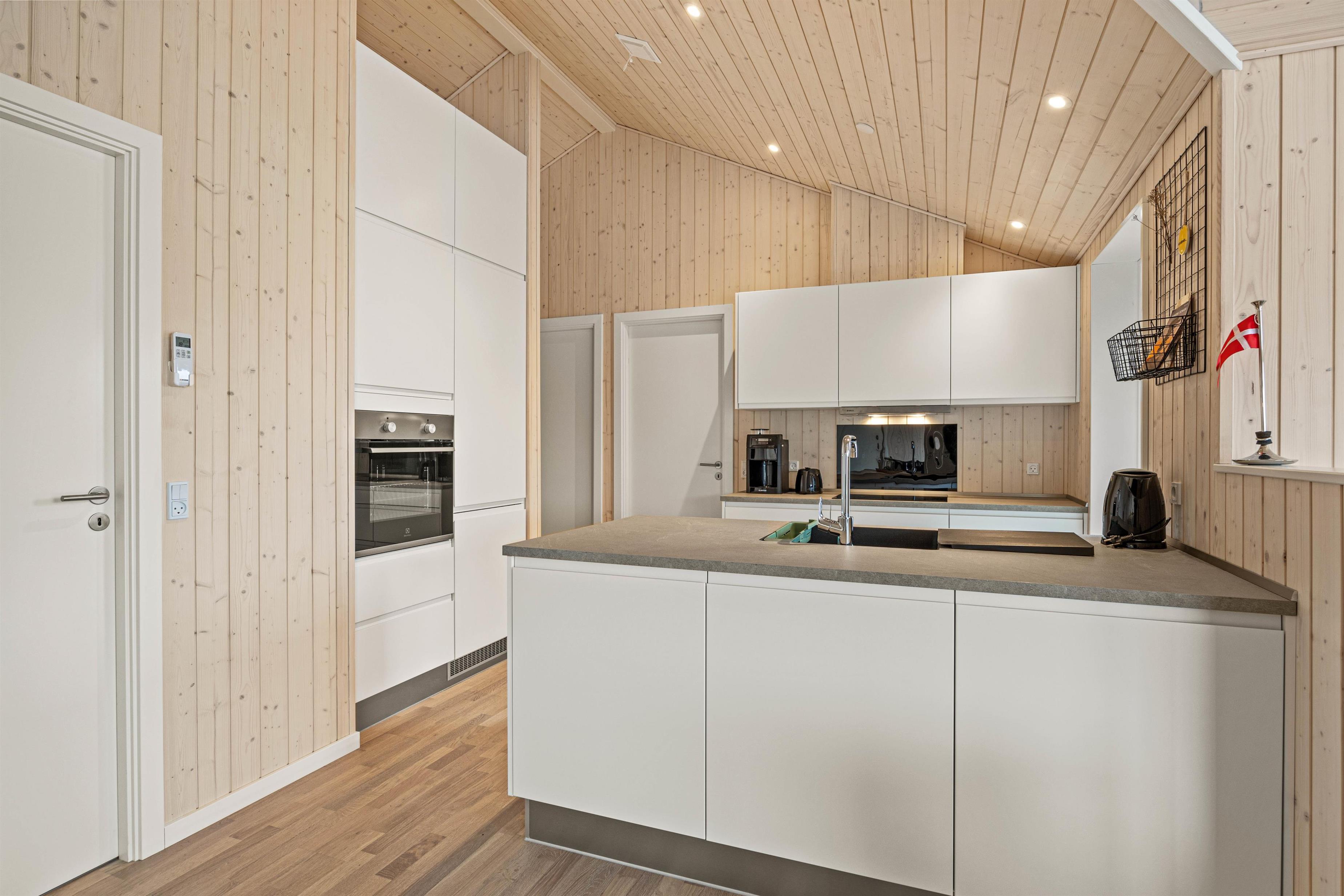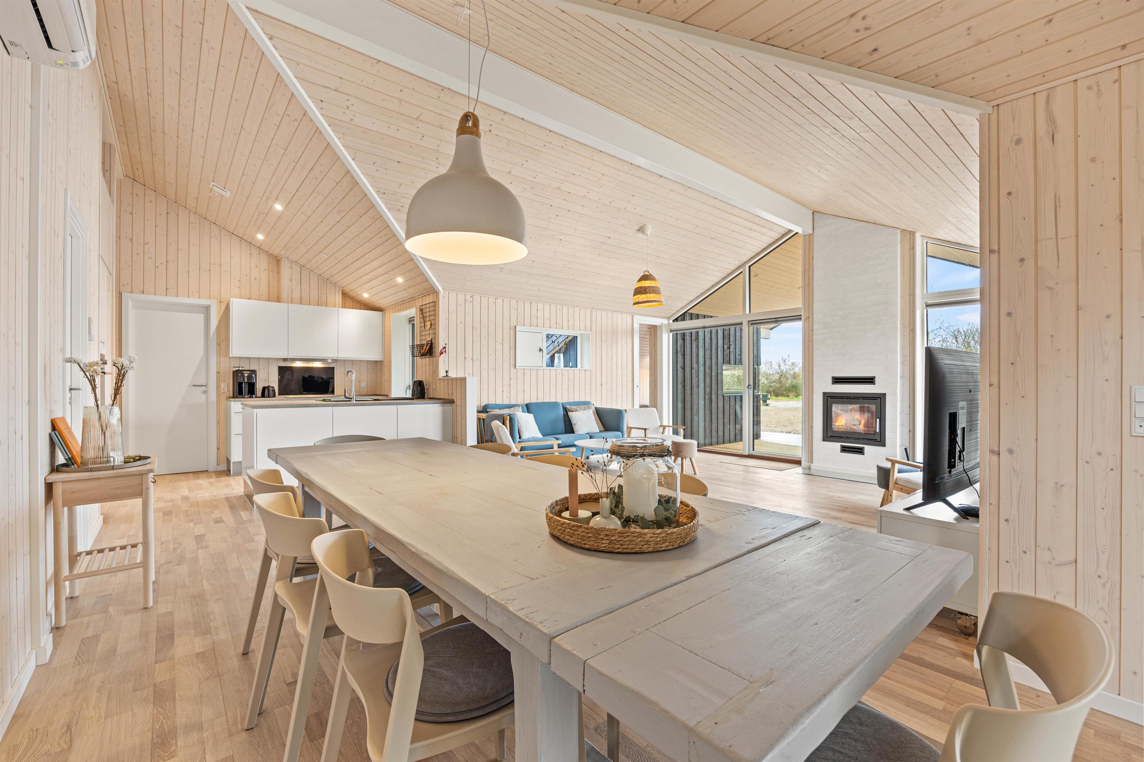 På Vestergårdsvænget 15 er der plads til alle i den rummelige stue. Her kan I slappe af sammen eller trække jer tilbage med yndlingsbogen. Ildens knitren i brændeovnen understreger feriestemningen med en hyggelig atmosfære. Der er også en energibesparende varmepumpe, som hurtigt og effektivt sørger for et behageligt indeklima og en god temperatur. I det åbne køkken finder I alt, hvad I behøver for at fremtrylle et lækkert måltid, der findes både almindelig komfur samt microbølgeovn. Prøv for eksempel en egnsret som 2 slags kød - på Rømø er det lam og fisk. Opvasken klarer maskinen bagefter, så I har tid til afslapning og socialt samvær. Eller I kan tage et slag bordfodbold i aktivitetsrummet. Feriehuset har også et bryggers med vaskemaskine og tørretumbler, så I kan friske garderoben op i løbet af ferien.