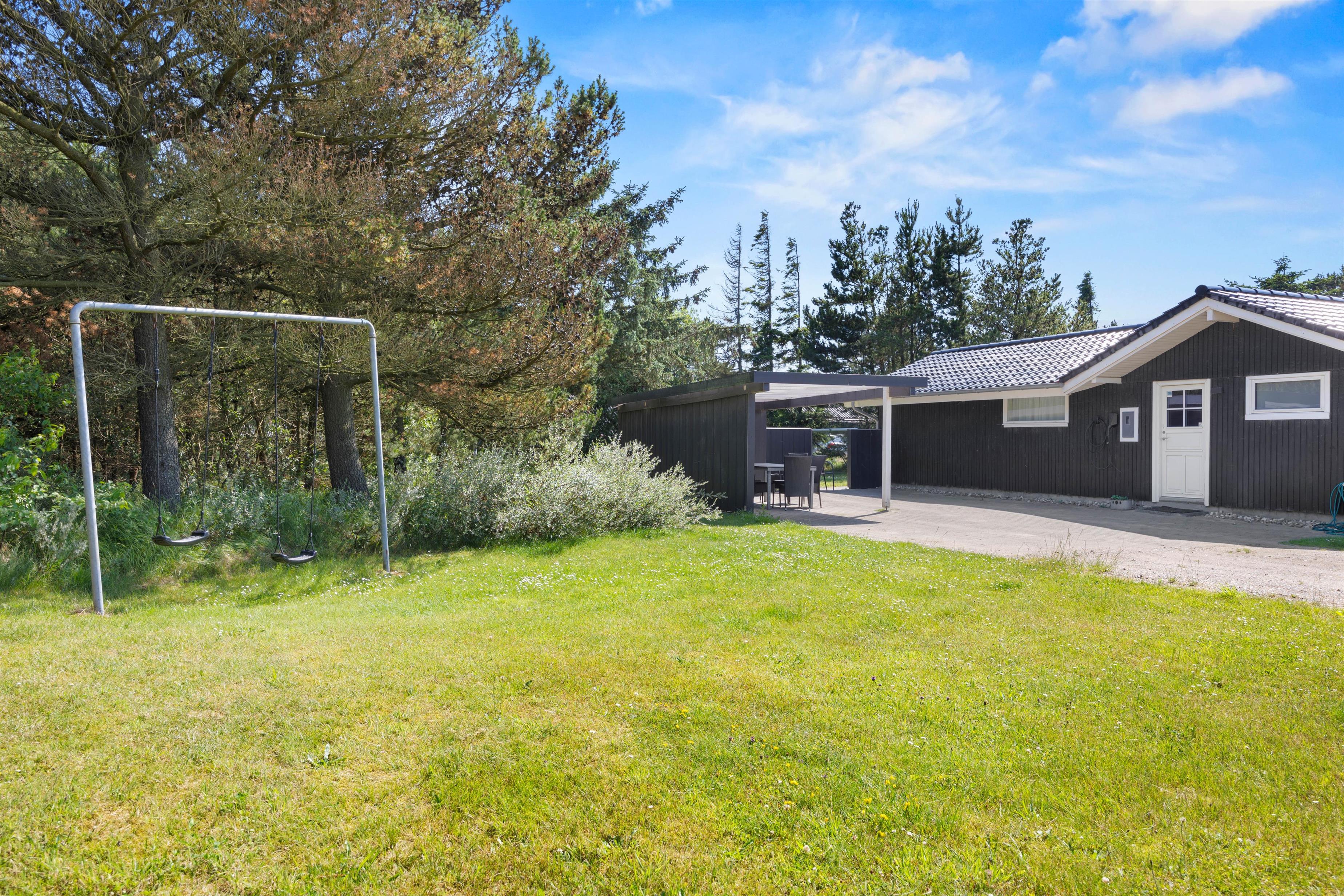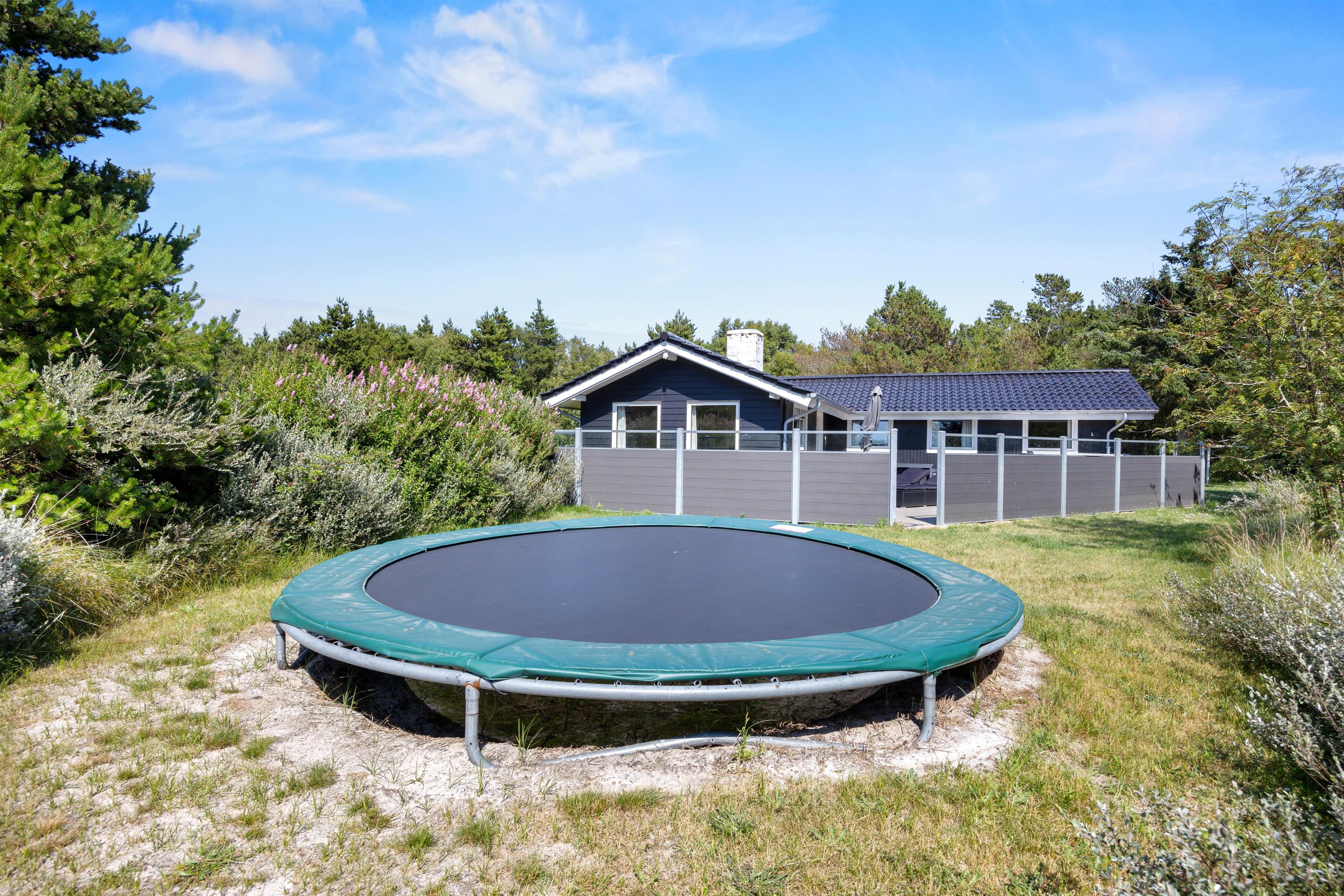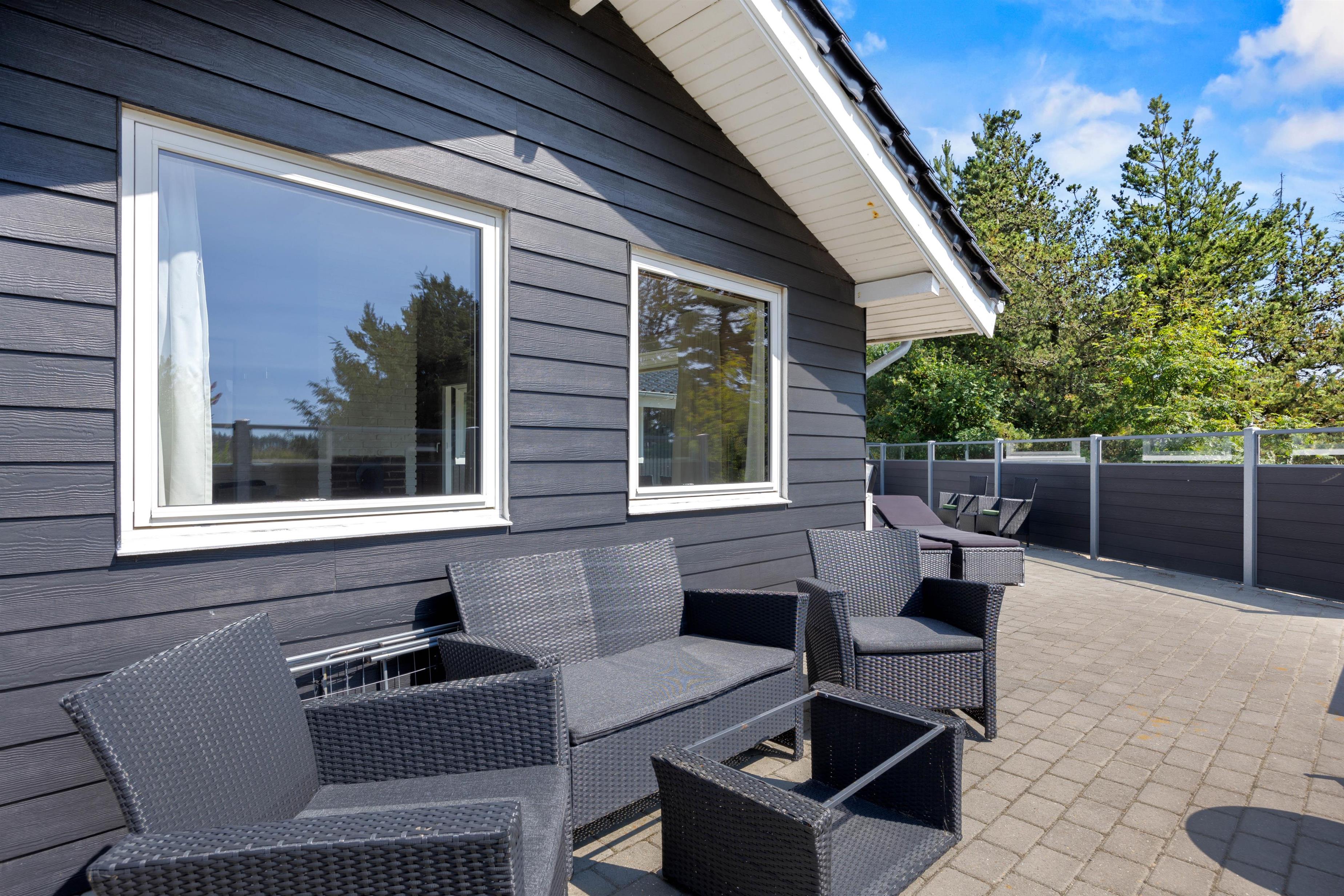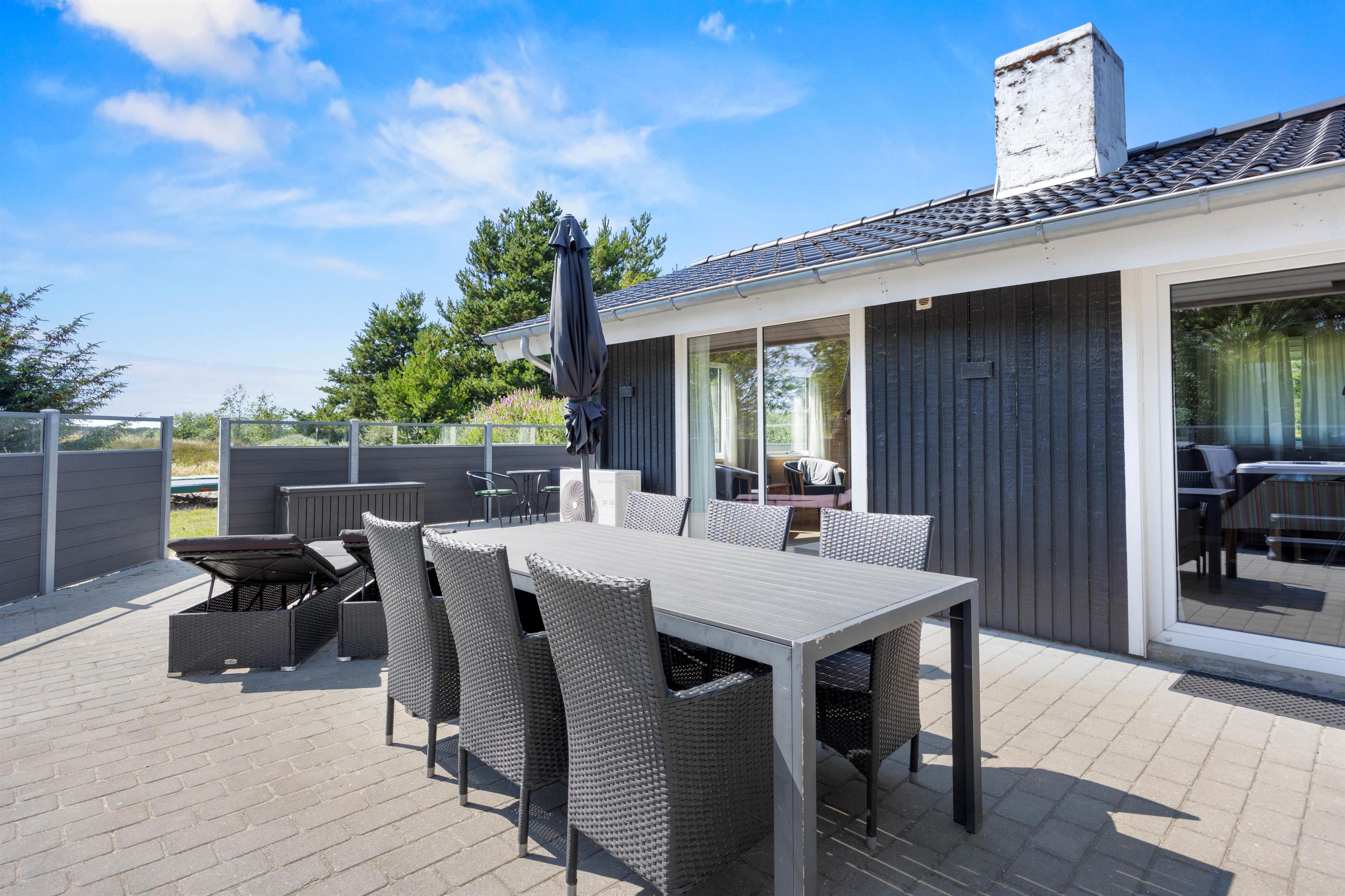 Feriehuset er beliggende på skønne Rømø, med kig til åbne vidder. Uderummet er perfekt udnyttet og har mange muligheder for at finde et godt sted at slappe af. Den store sydvestvendte terrasse er indrettet med havemøbler, solvogne, parasol og grill, og er det perfekte sted at nyde aftensmaden en lun sommeraften. På den østlige side af feriehuset har I en overdækket terrasse – ligeledes med havemøbler, så I selv på en regnvejrsdag kan nyde maden i det fri.