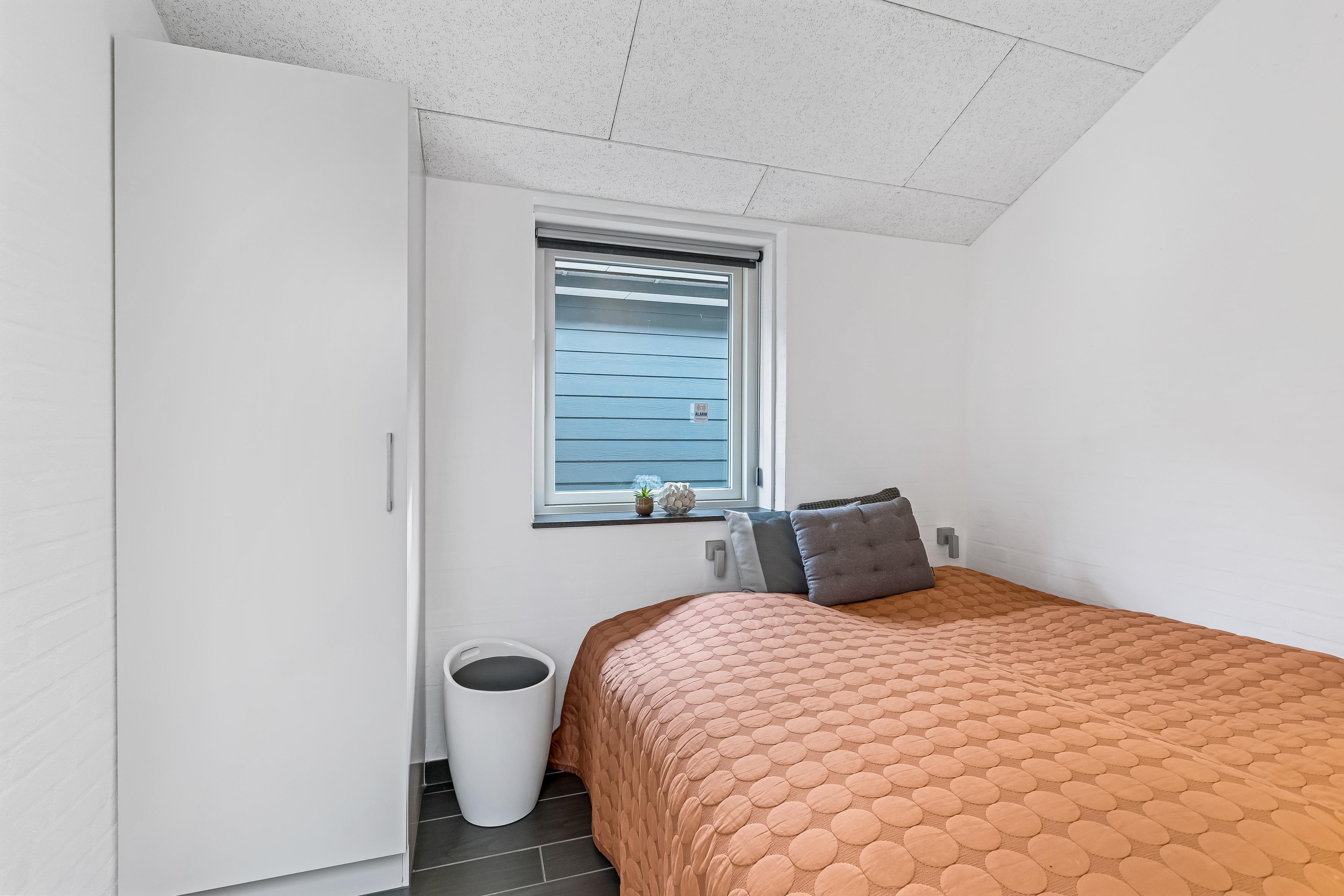 Sommerhuset har tre rummelige soveværelser med dobbeltsenge og skabe, hvilket giver god opbevaringsplads. Der er to stilfulde badeværelser, hvoraf det ene har badekar – perfekt til afslapning efter en dag ved stranden. De to badeværelser er designet med fokus på funktionalitet og velvære – gulvvarmen skaber en luksuriøs fornemmelse, der gør starten på dagen ekstra behagelig. Her sikres, at hver gæst kan få en god nats søvn og vågne op til en frisk og indbydende atmosfære.