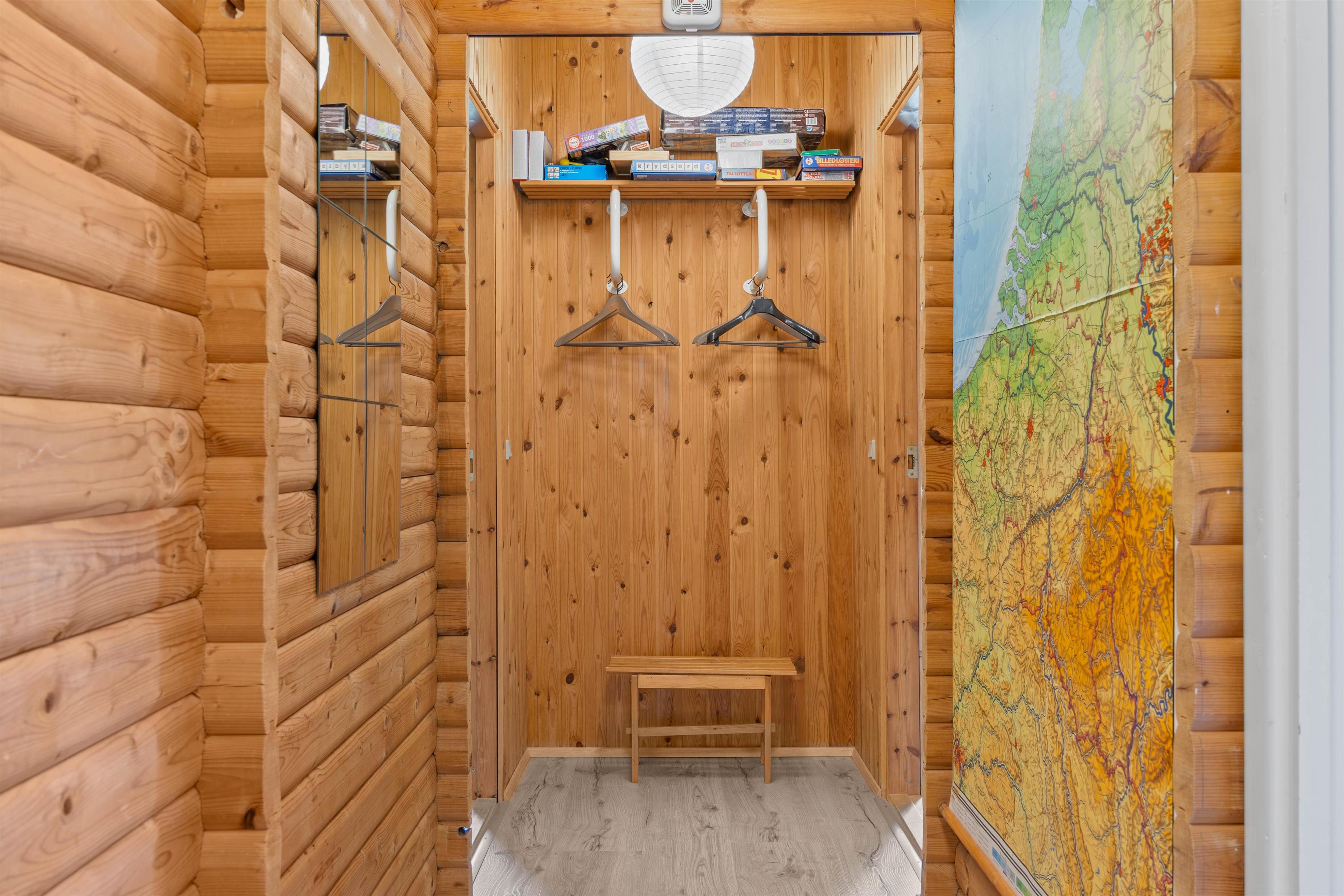 Udover brændeovnen kan I skabe et behageligt indeklima ved at bruge den energibesparende luft-til-luft varmepumpe. Praktisk råder sommerhuset også over vaskemaskine og tørretumbler.
