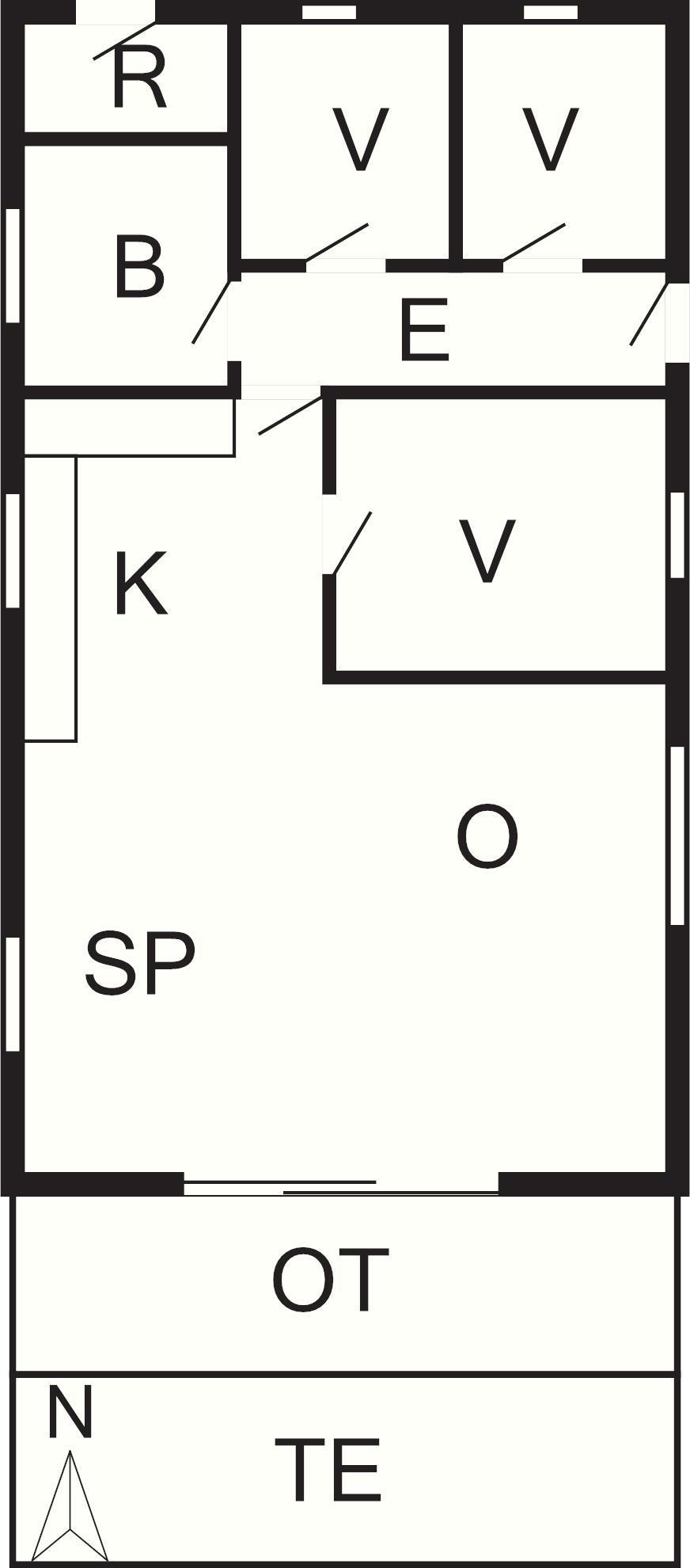 3 Soveværelser: (1DS)+(2K)+(4K), barneseng