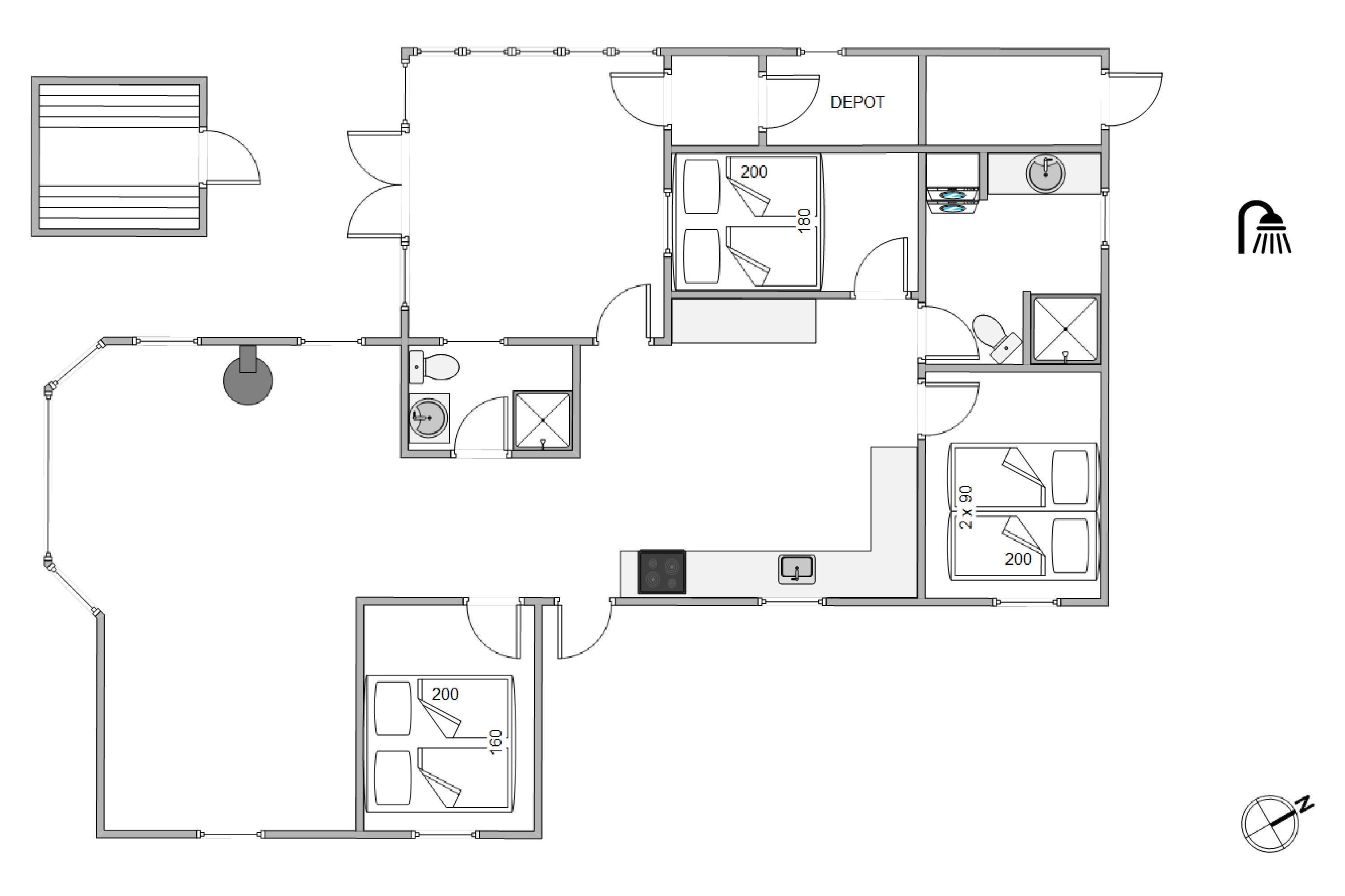 Huset rummer plads til 4 personer, som alle vil kunne nyde godt af husets lækre faciliteter. Feriehuset råder blandt andet over både en udesauna og brændeovn, som kan give jer varme i kinderne på de kølige dage. Ude finder i også en praktisk udebruser, hvor i kan skylle det værste sand af kroppen efter en tur på stranden, eller efter en varm tur i saunaen.