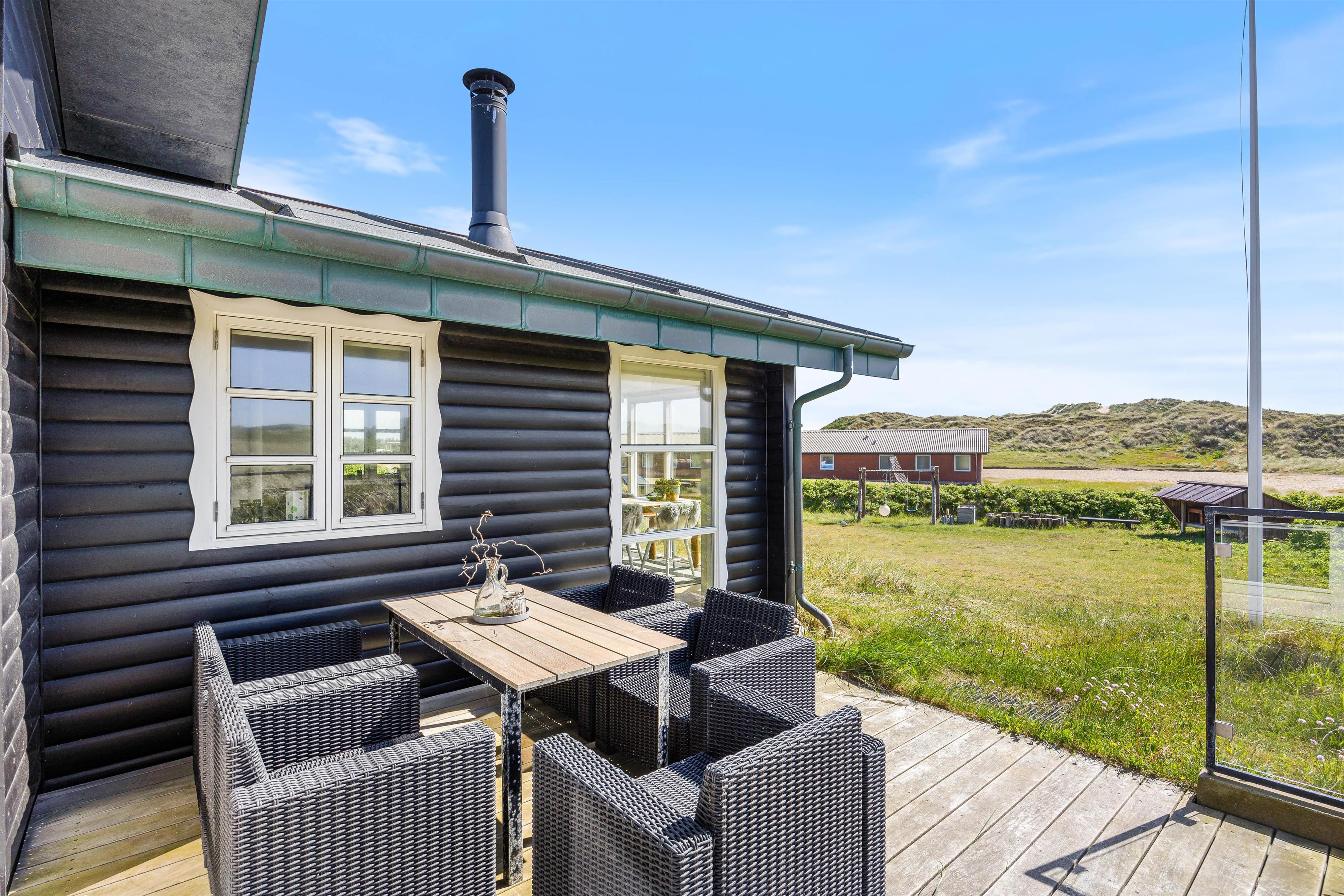Efter en strandtur vil feriehusets terrasse helt sikkert kunne indbyde jer til afslapning. Nyd de solrige dage i liggestolene og flyt frokosten og roseéen med ud på terrassen og nyd de smukke omgivelser.