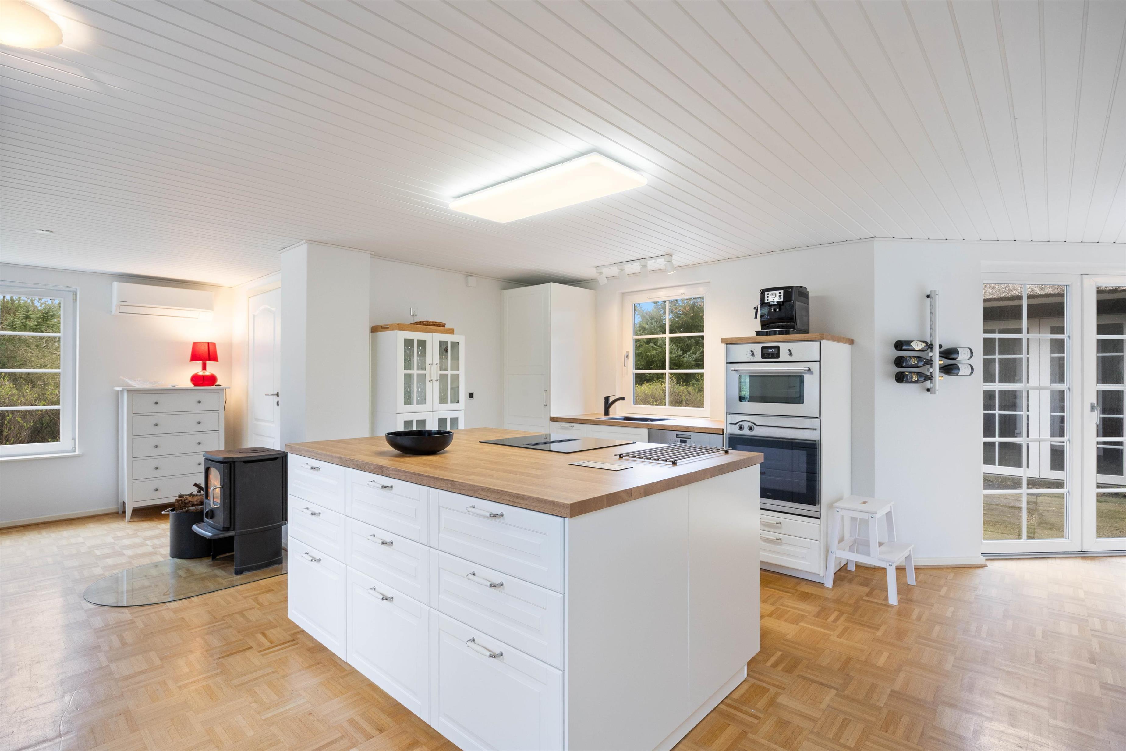Fra spisestuen er der direkte adgang til sommerhusets veludstyrede køkken, hvor der er rig mulighed for at kokkerere lækkert mad til hele familien. Dertil har sommerhuset fire gode soveværelser, som alle er indrettet med dobbeltseng. Sommerhuset har desuden en varmepumpe, så I kan undgå de alt for høje varmeregninger.