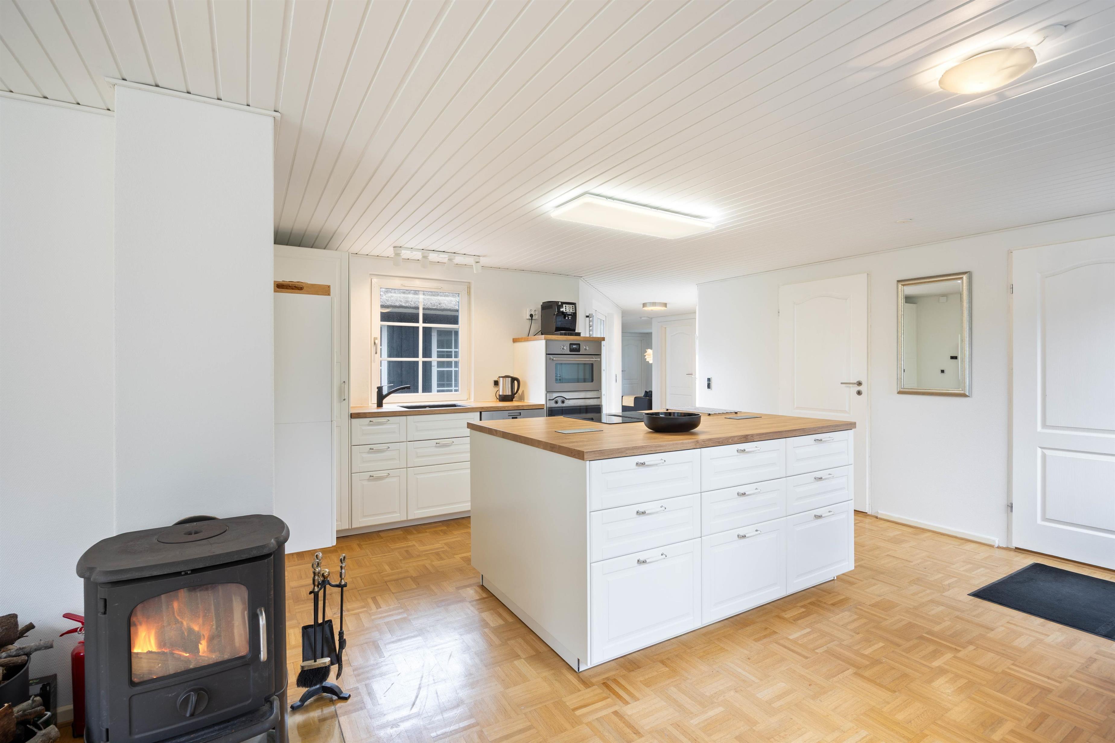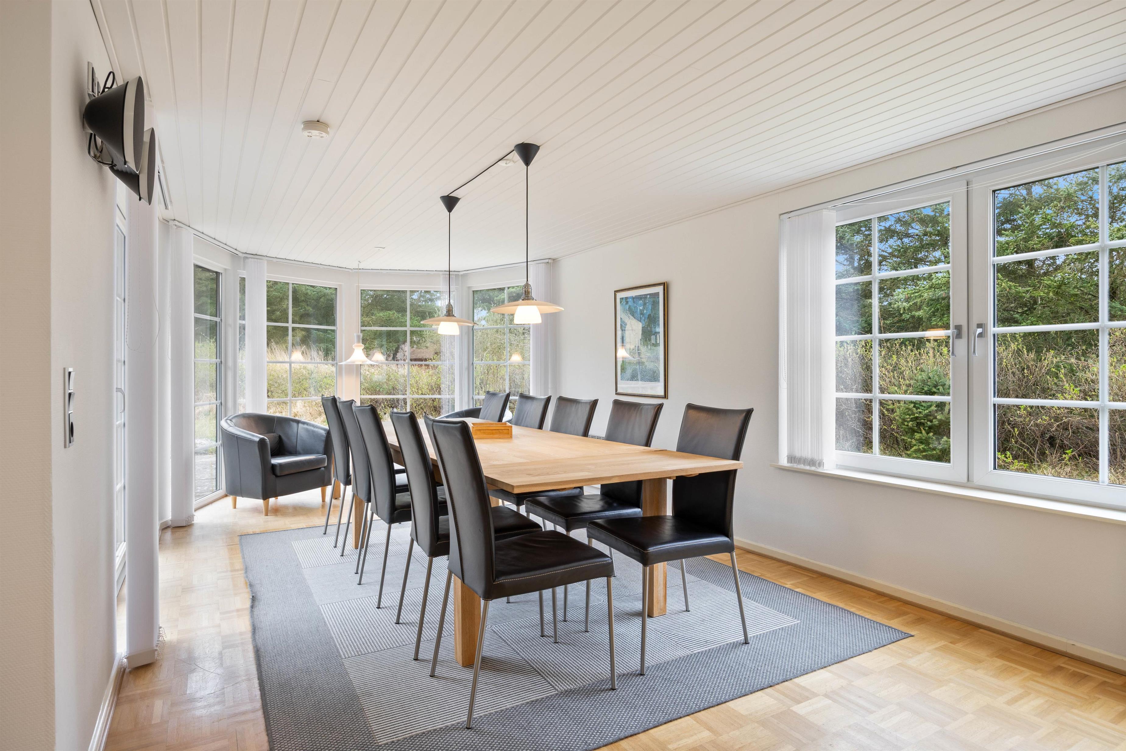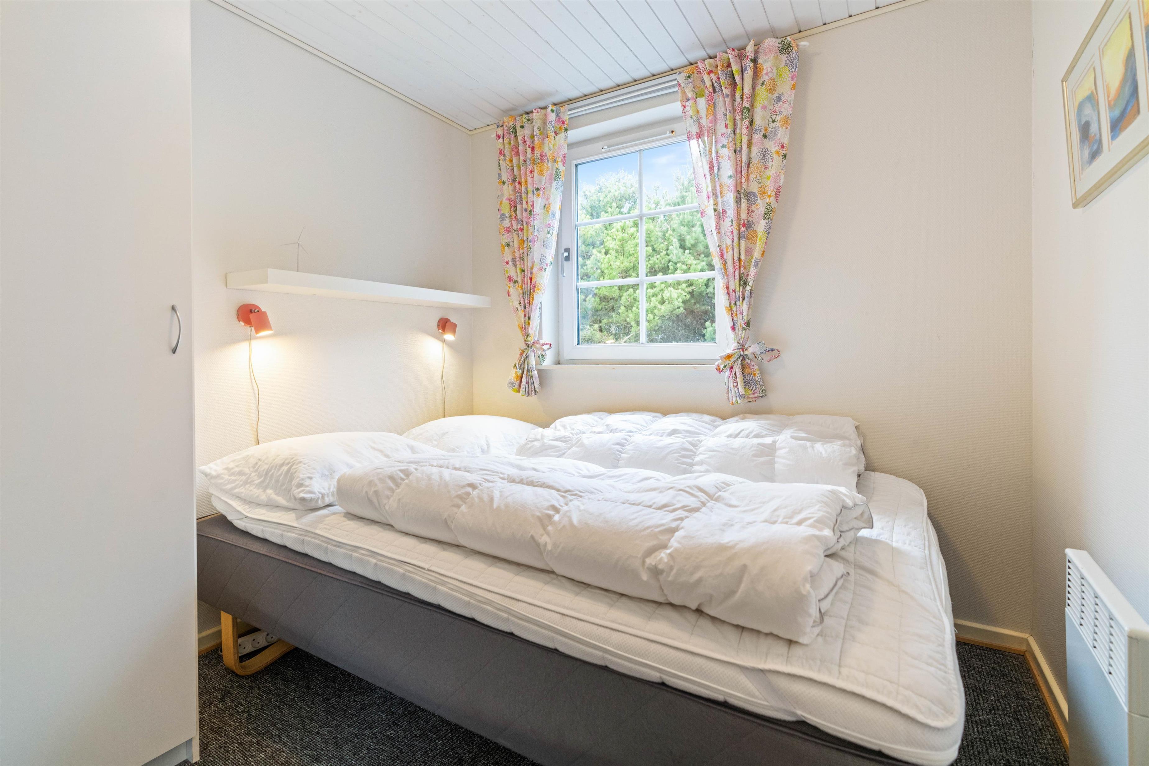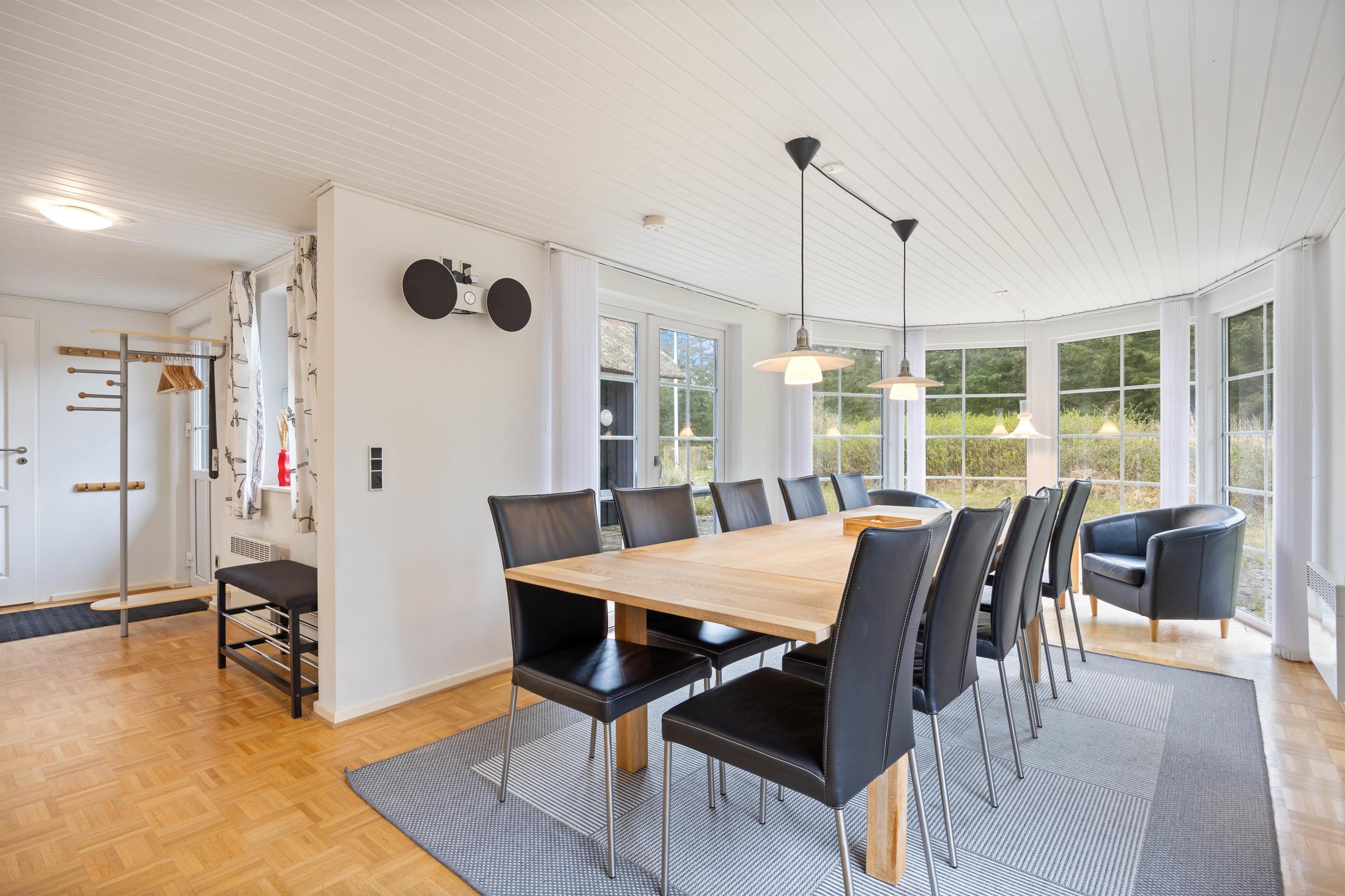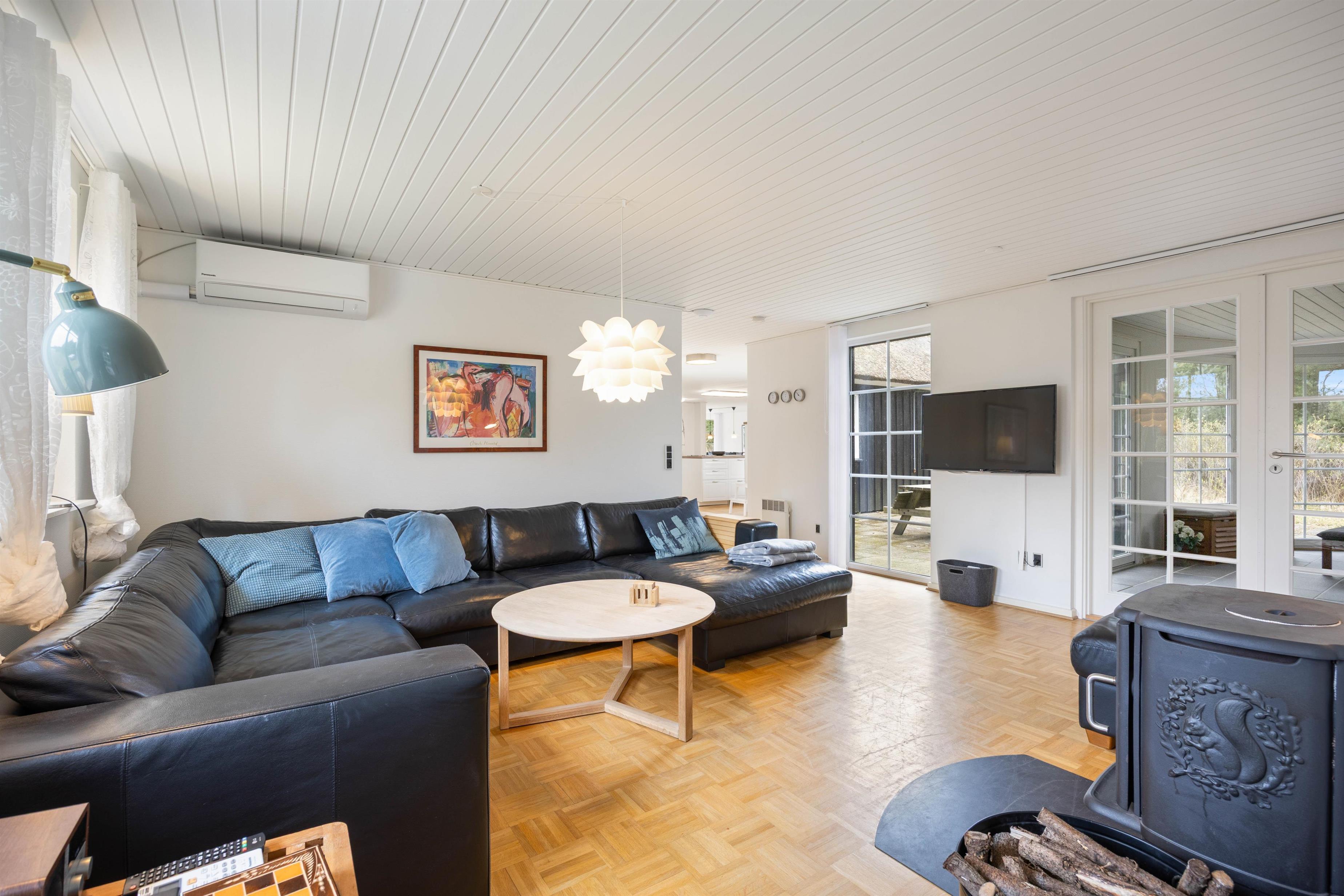 Sommerhuset er beliggende på ferieadressen Jens Jensens Vej 36, som blot er 650 meter fra den nærmeste strand. Hele sommerhuset er lyst og indbydende, og den skønne indretning spreder en hyggelig sommerhusstemning i alle rum. I stuen kan hele familien samles og nyde varmen samt hyggen foran den knitrende brændeovn. Her kan I benytte det trådløse internet til at streame en god film eller serie på sommerhusets fladskærms-tv.