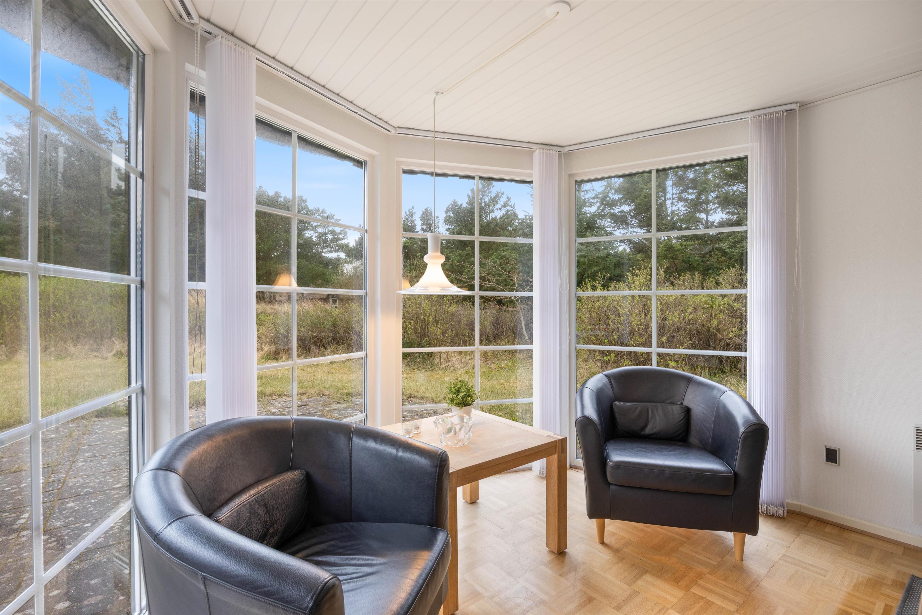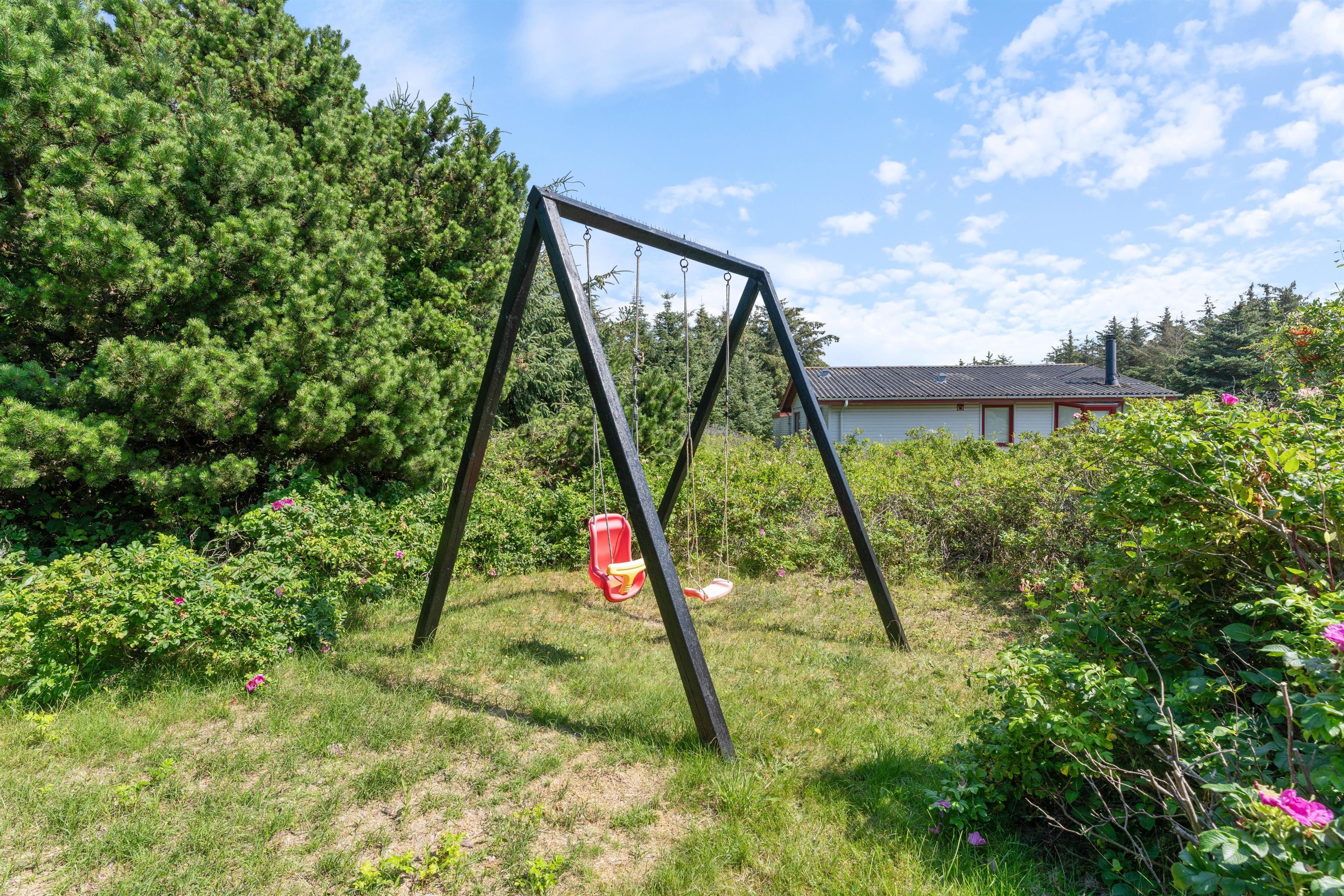 Med dette sommerhus får i en skøn beliggenhed på en naturgrund tæt på både hede og strand. På den dejlige terrasse mod syd er der havemøbler og liggestole, hvor de voksne rigtigt kan læne sig tilbage, mens børnene frit kan lege i sandkassen eller på gyngen. Sommerhuset har desuden en carport, hvor jeres bil kan stå beskyttet.