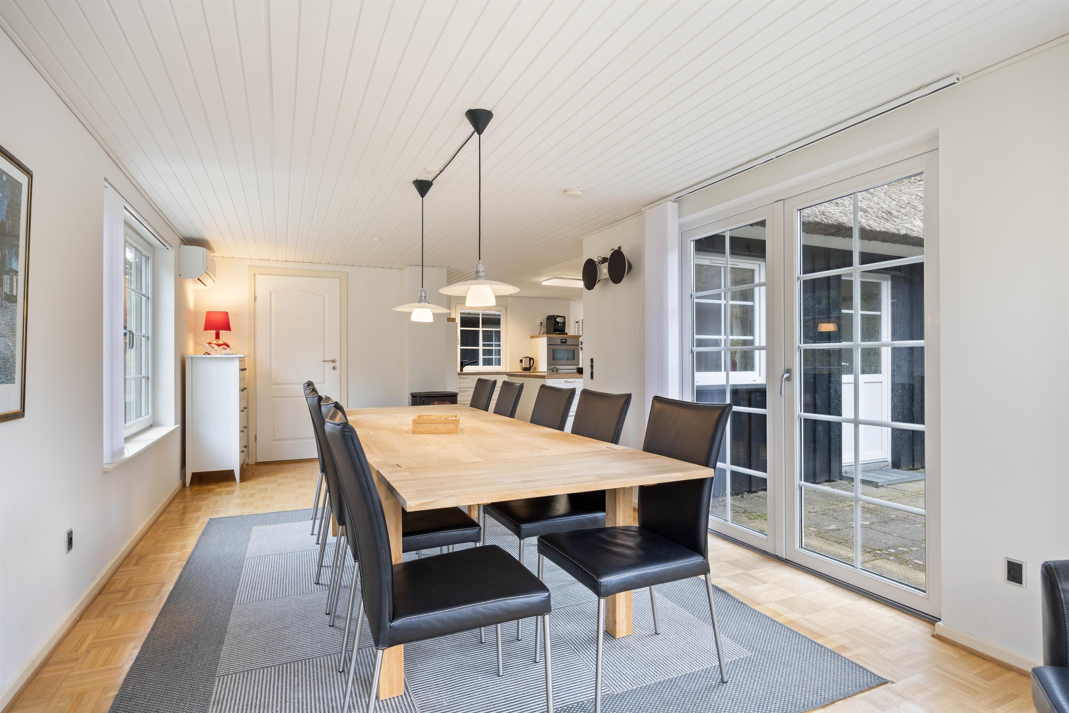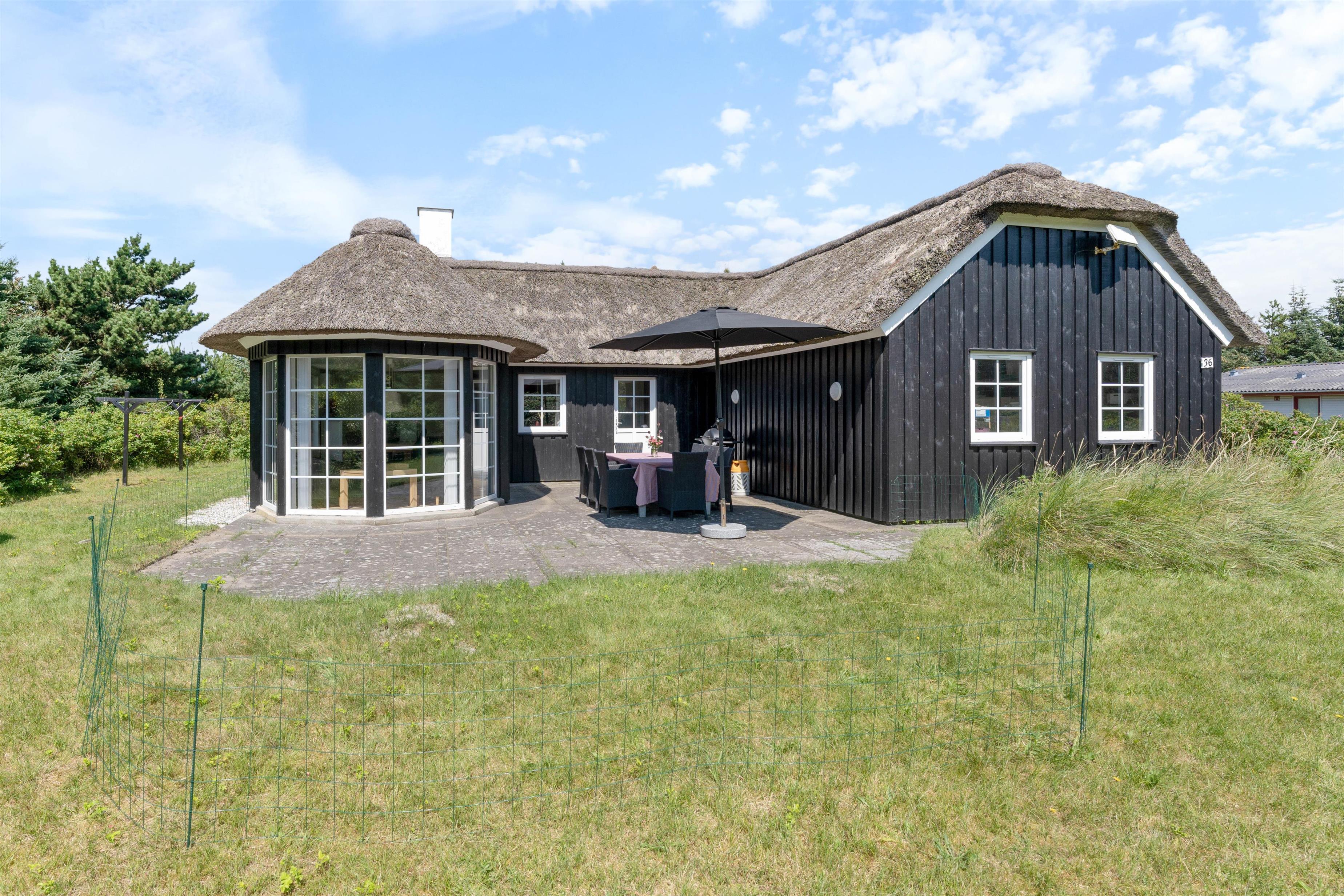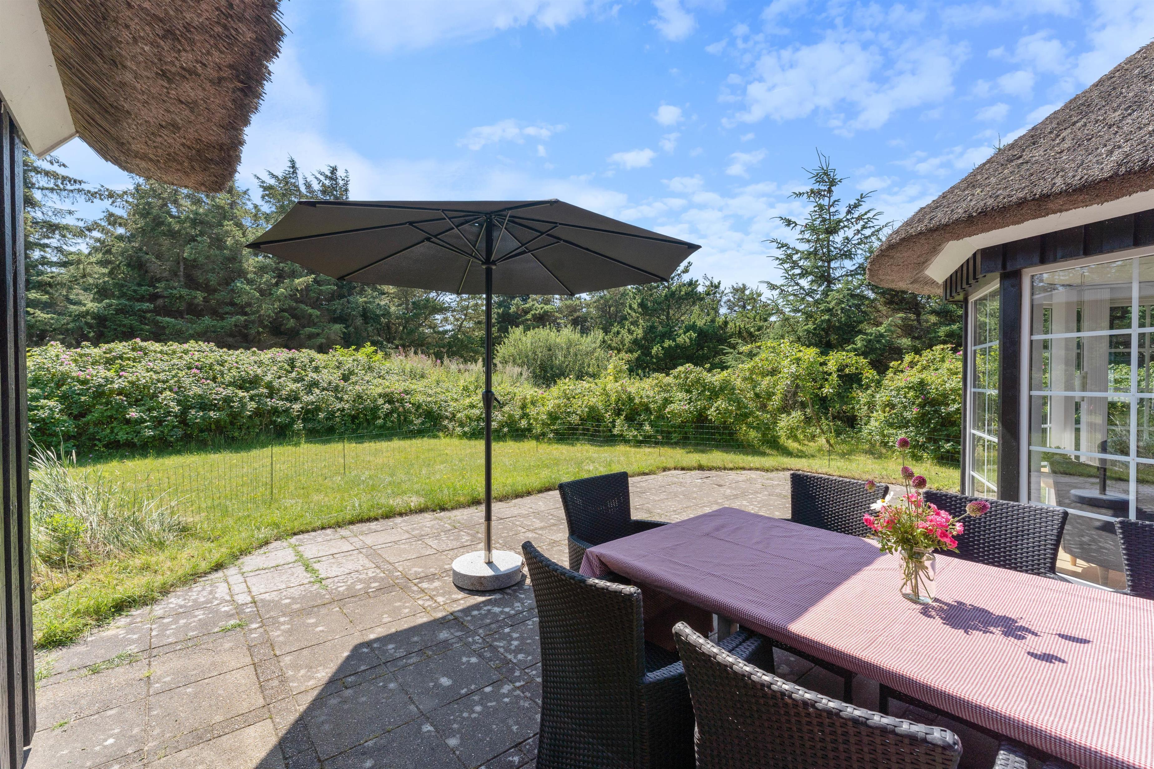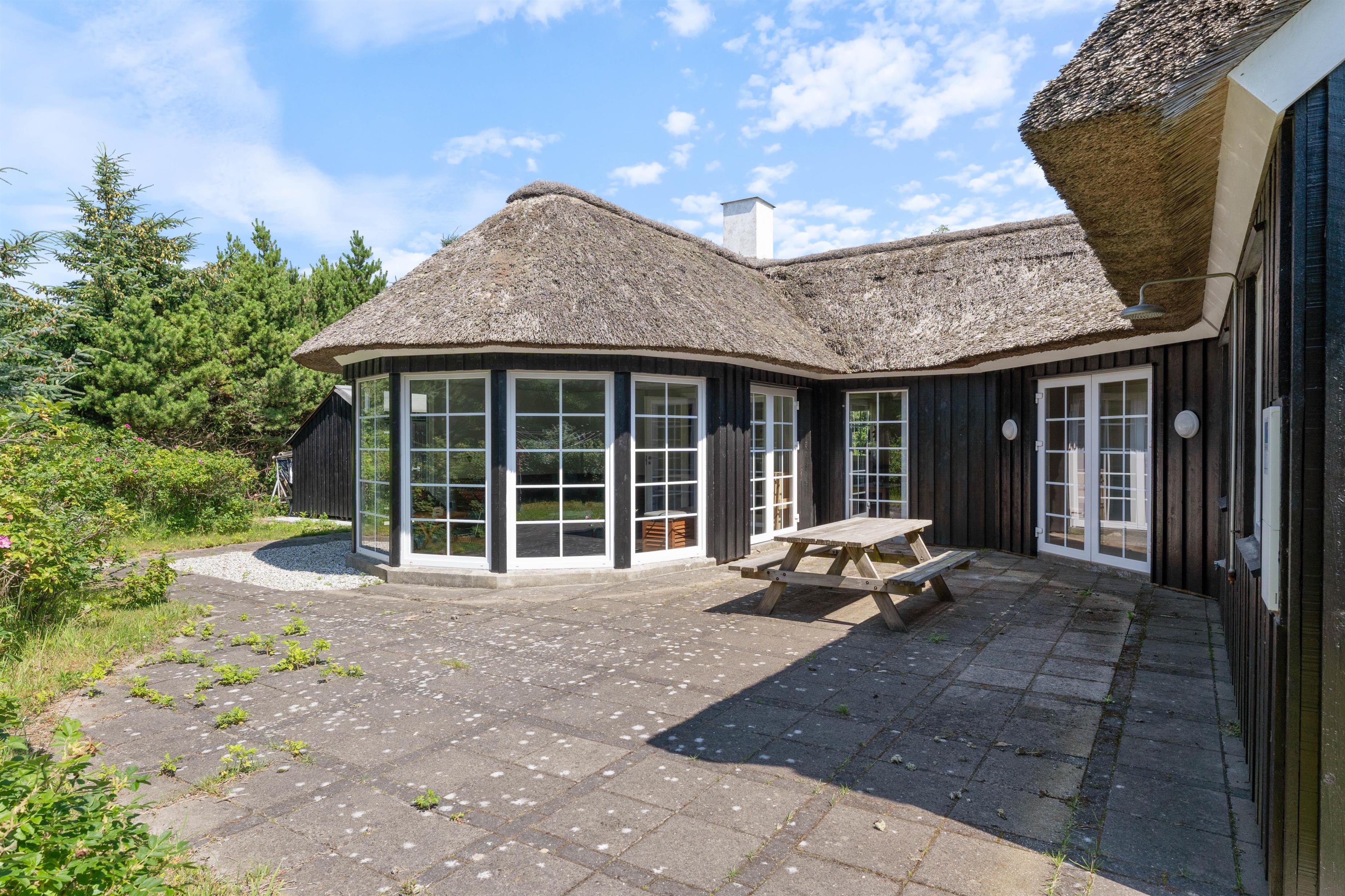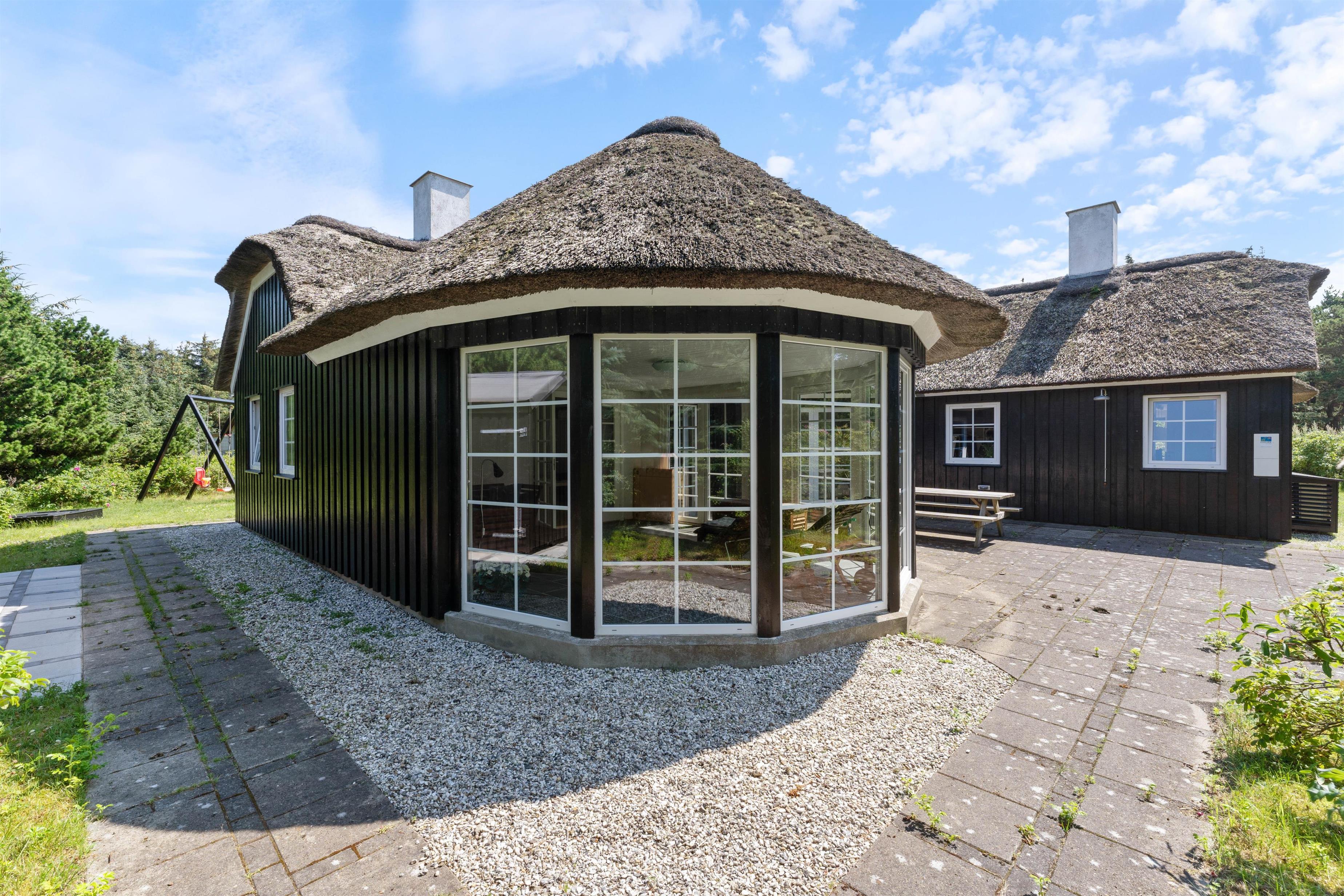 Her er et idyllisk sommerhus med stråtag, hvor I kan nyde jeres ferie i fulde drag. Sommerhuset har plads til syv personer, og det er også tilladt at have hunden med på jeres ferie. Sommerhuset har mange gode kvaliteter bl.a. sommerhusets gode beliggenhed, den stilfulde indretning og ikke mindst det dejlige terrasseområde. Dertil tilbyder sommerhuset en ekstra form for afslapning, da det både har spabad og sauna, hvor I virkelig kan slappe af og nyde jeres ferie.
