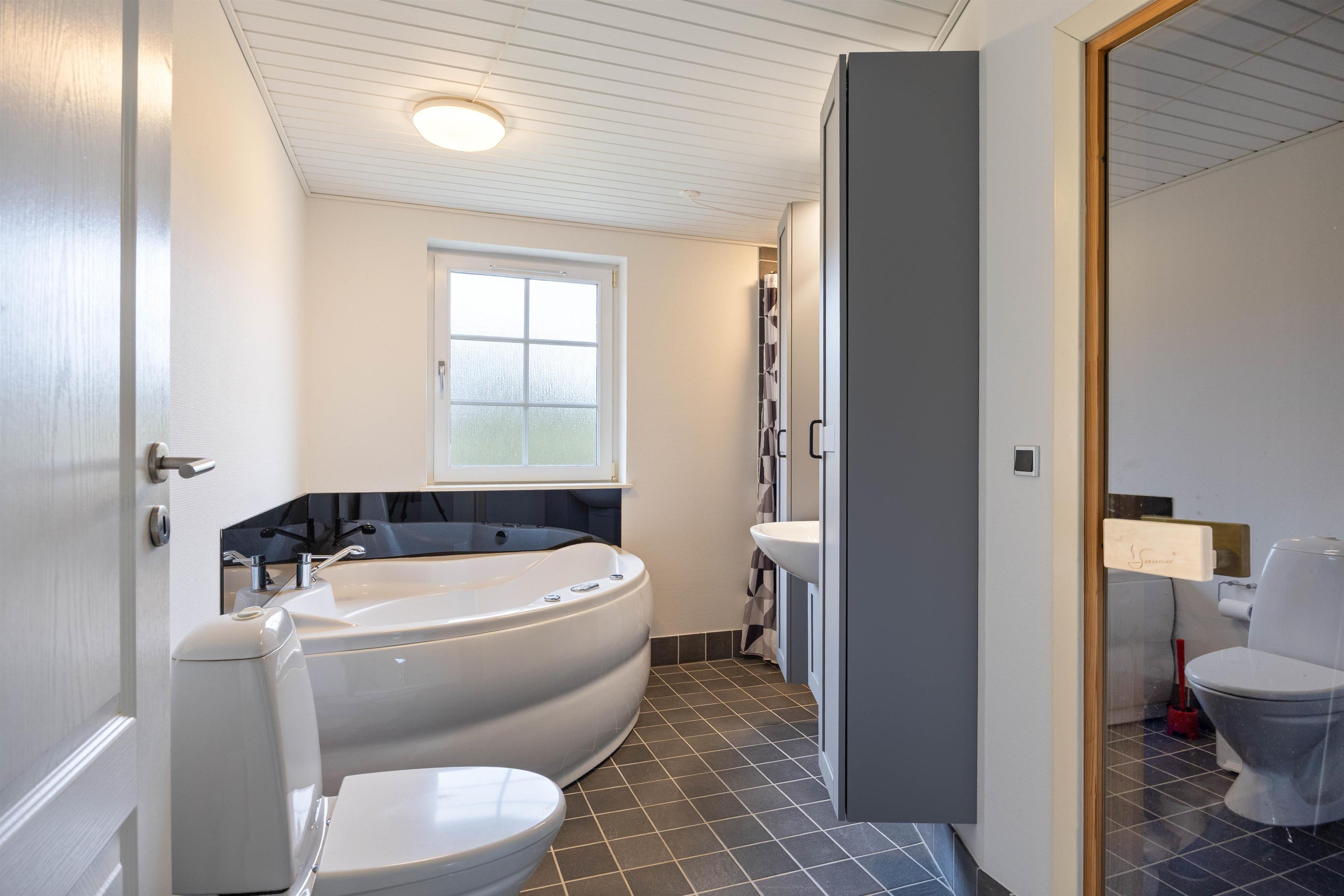 Dette skønne sommerhus har hele to badeværelser, hvor begge er indbygget med gulvvarme. Så hvis I er to familier, der holder ferie sammen, kan hver familie have sit eget badeværelse. Det ene badeværelse indbyder yderligere til ekstra velvære, da det er indrettet med både spabad og sauna. Og efter en lang dag ved stranden eller en god gåtur i klitterne, er det oplagt at benytte begge og rigtigt mærke følelsen af ferie.