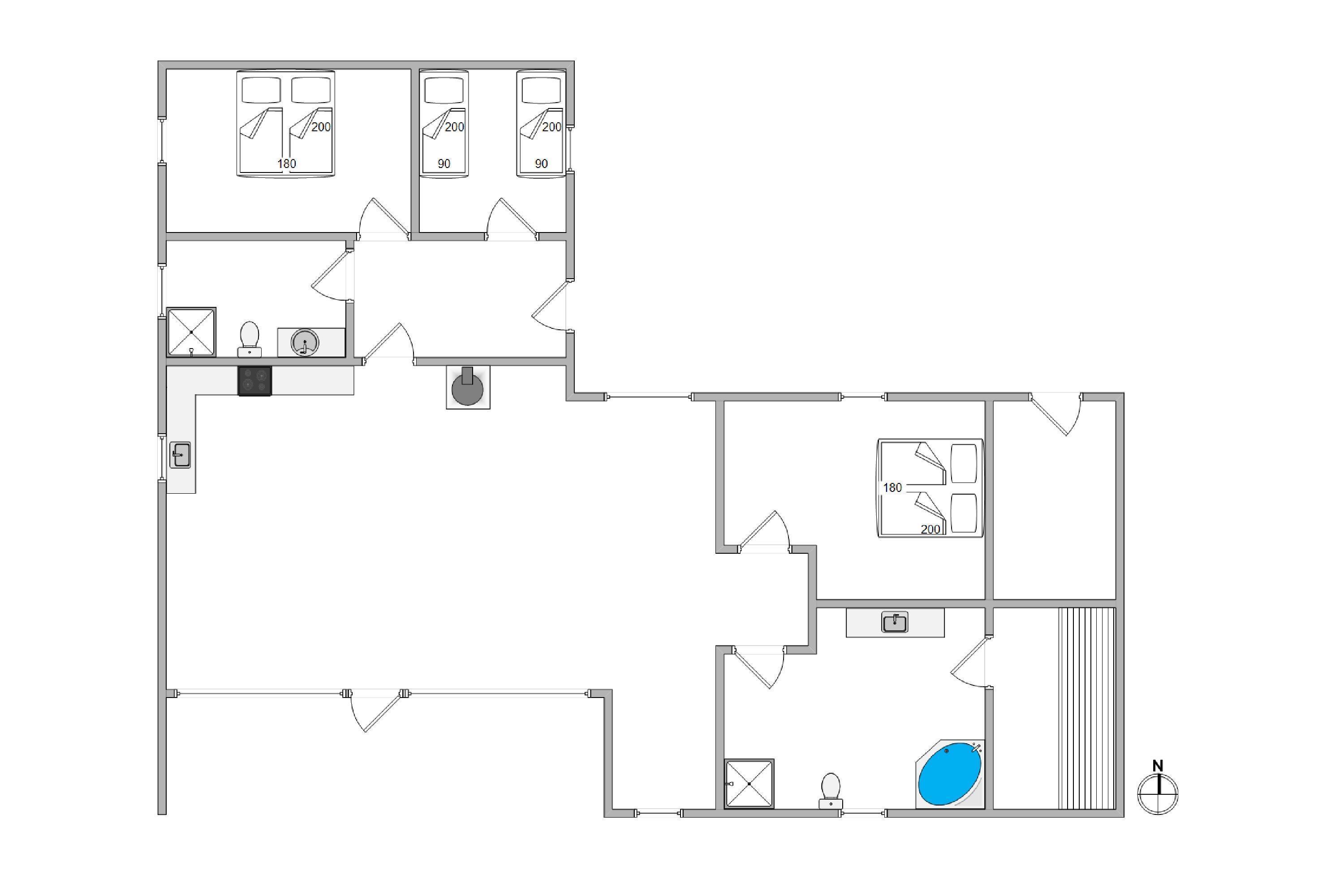 Et virkeligt dejligt og meget velholdt feriehus med en sød og hyggelig indretning. Feriehuset råder over to dejlige værelser med dobbeltsenge og et enkelt værelse med to enkeltsenge. Her er også to store og fine badeværelser, hvor det ene store badeværelse er med spa og sauna, lige til et par timers forkælelse efter en lang gåtur ved havet.
