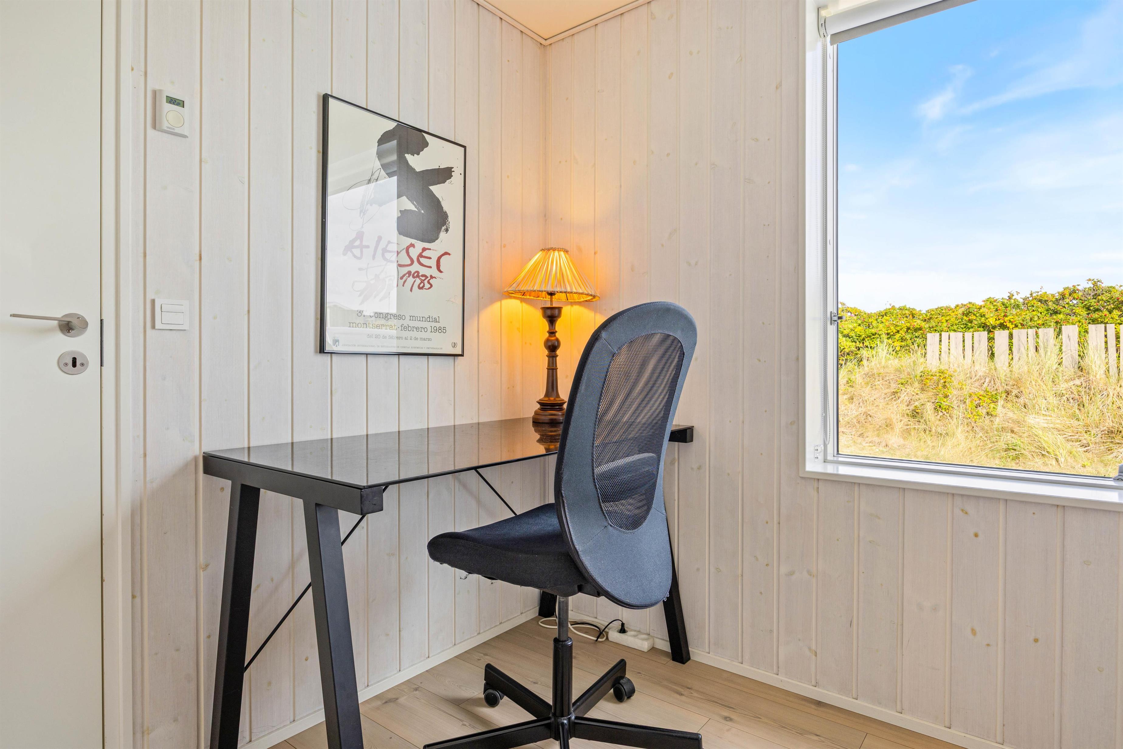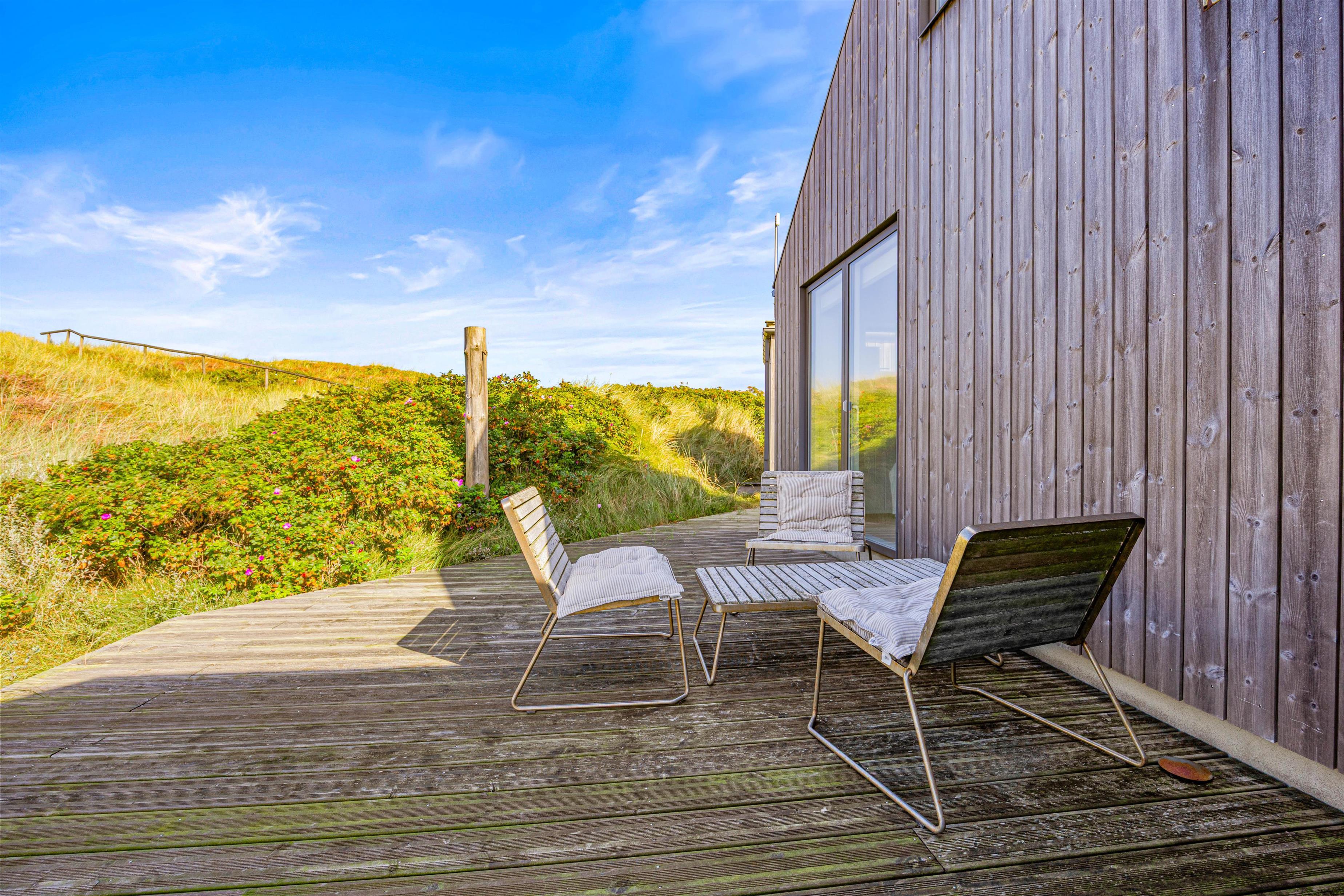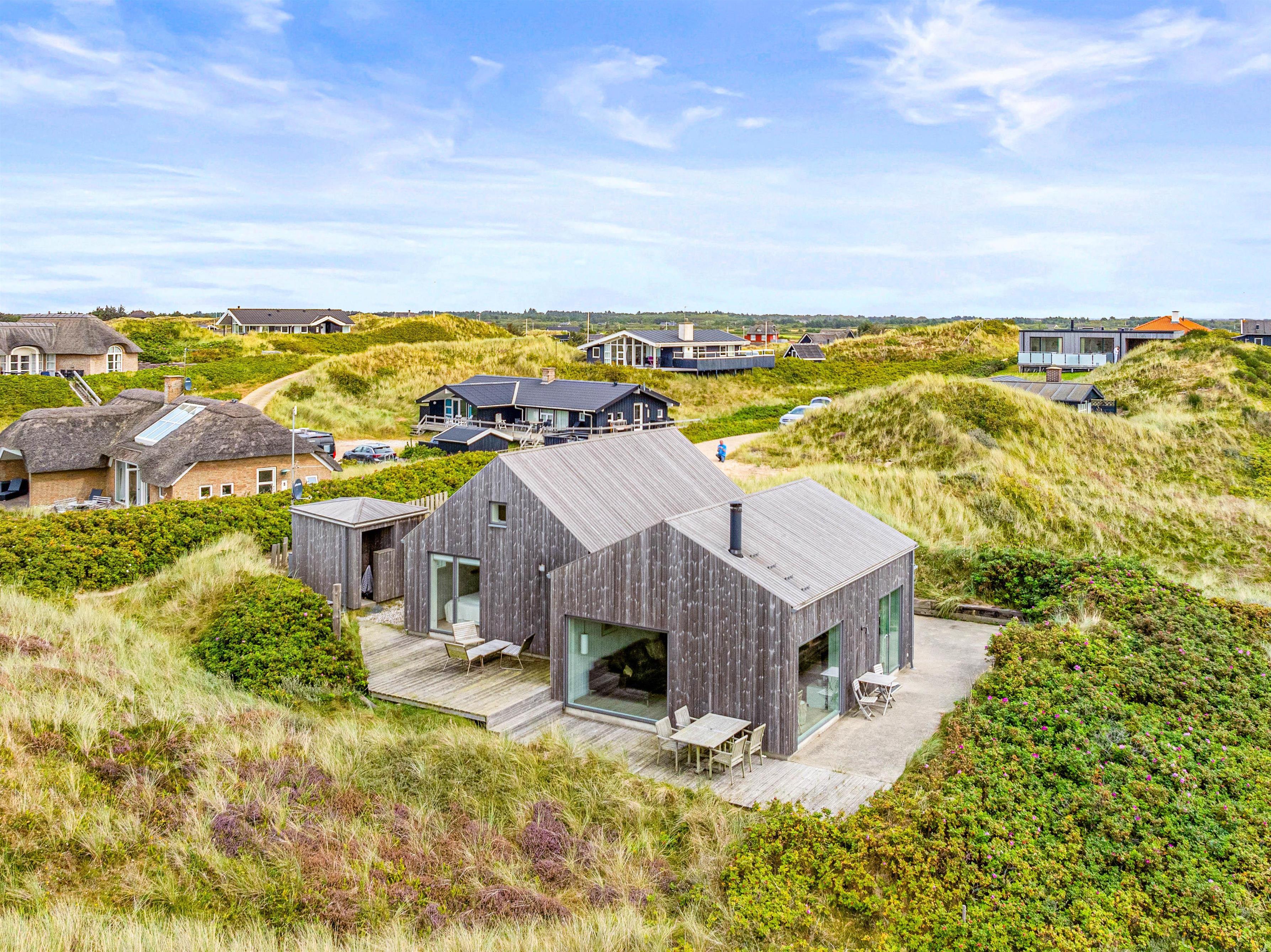 Feriehuset ligger lige ud til klitterne, så når du vil ned og nyde Vesterhavet og den gode sandstrand, er du kun en god gåtur gennem klitterne derfra. Klitlandskabet danner også en flot baggrund og udsigt fra feriehuset og dets terrasser – en udsigt du nok især vil nyde på de hyggelige grillaftener.