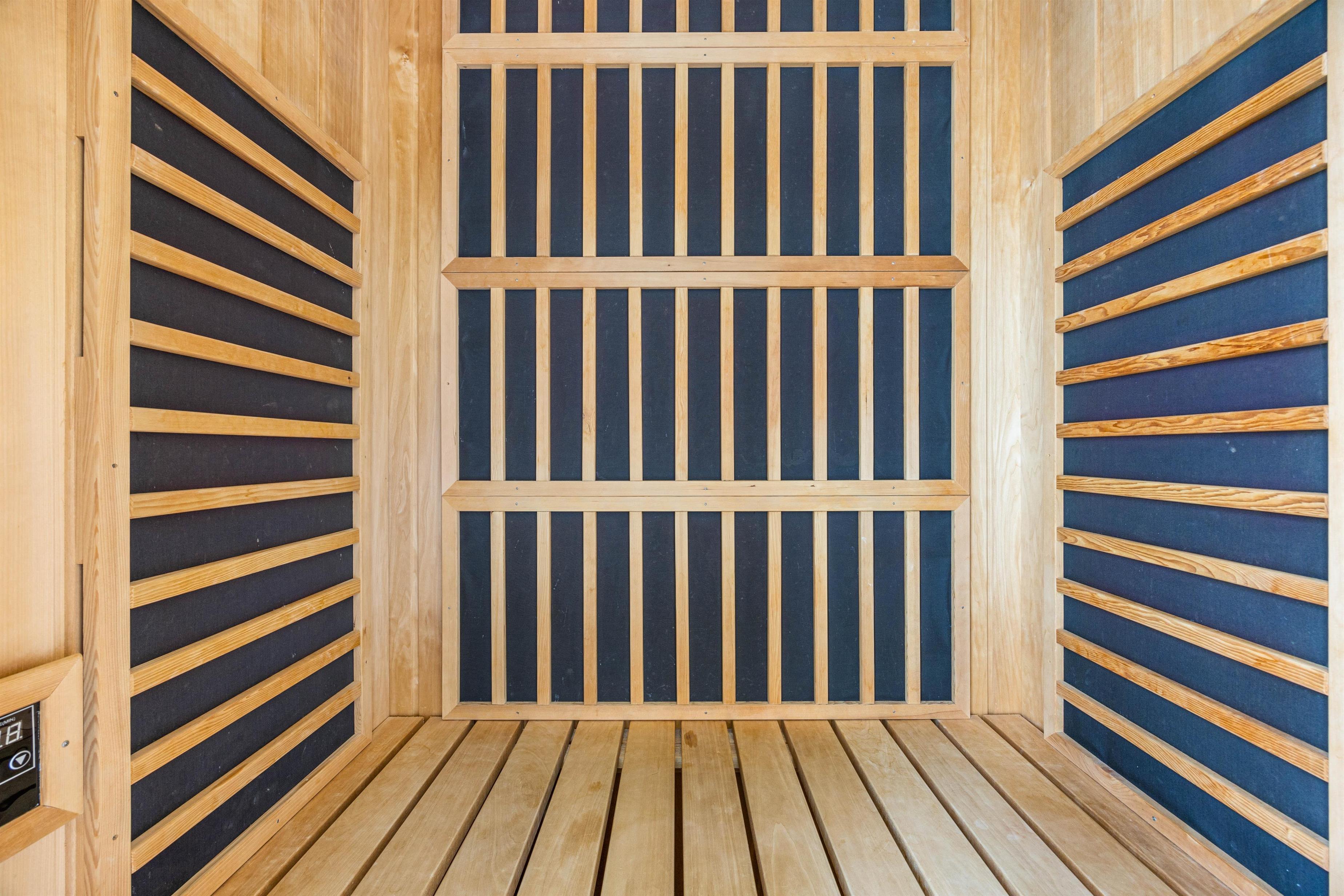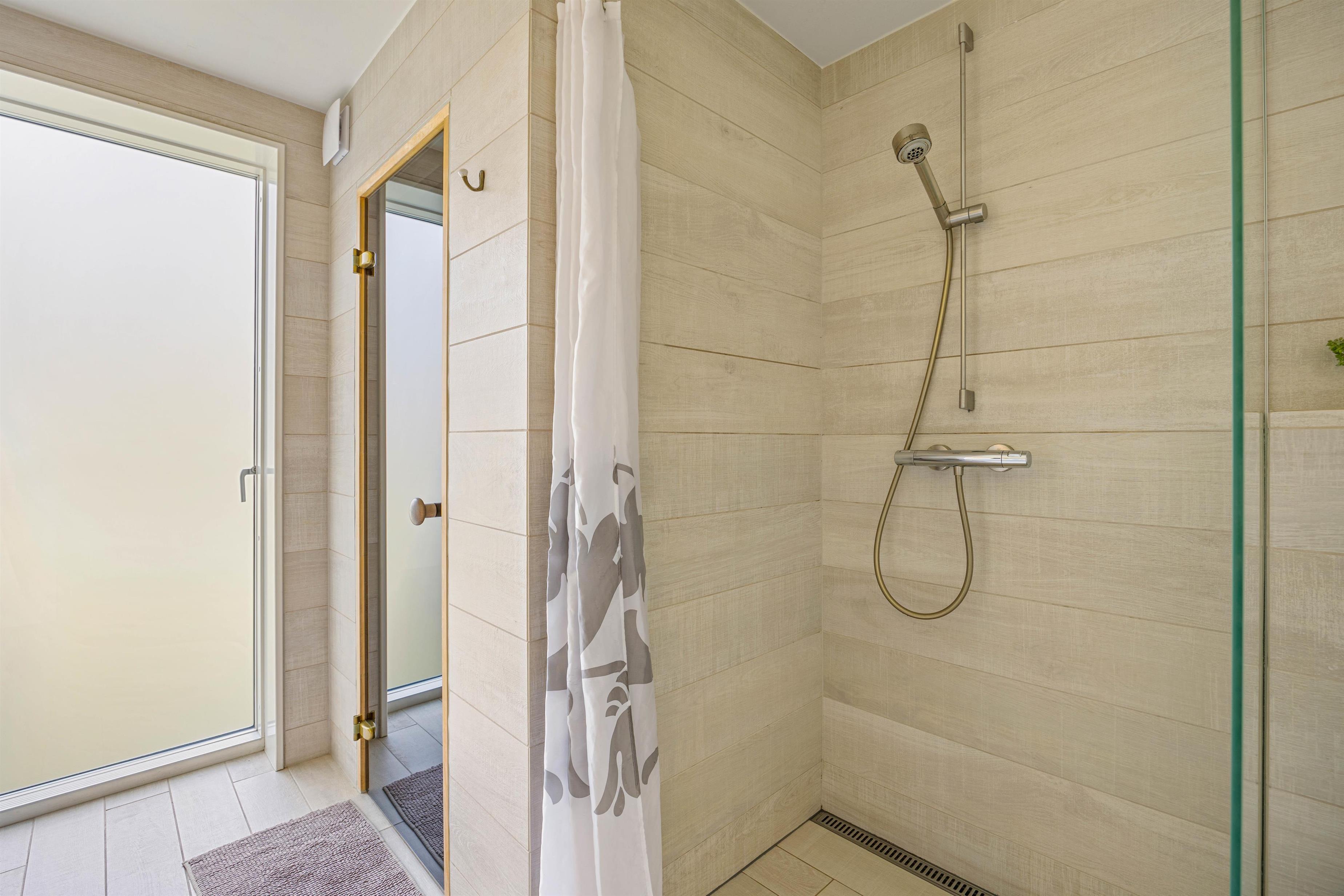 Dertil har feriehuset også et rigtig dejligt badeværelse, hvor der også er adgang til en infrarød sauna. Her kan I sætte dig godt til rette og slappe af efter en frisk tur ved stranden.