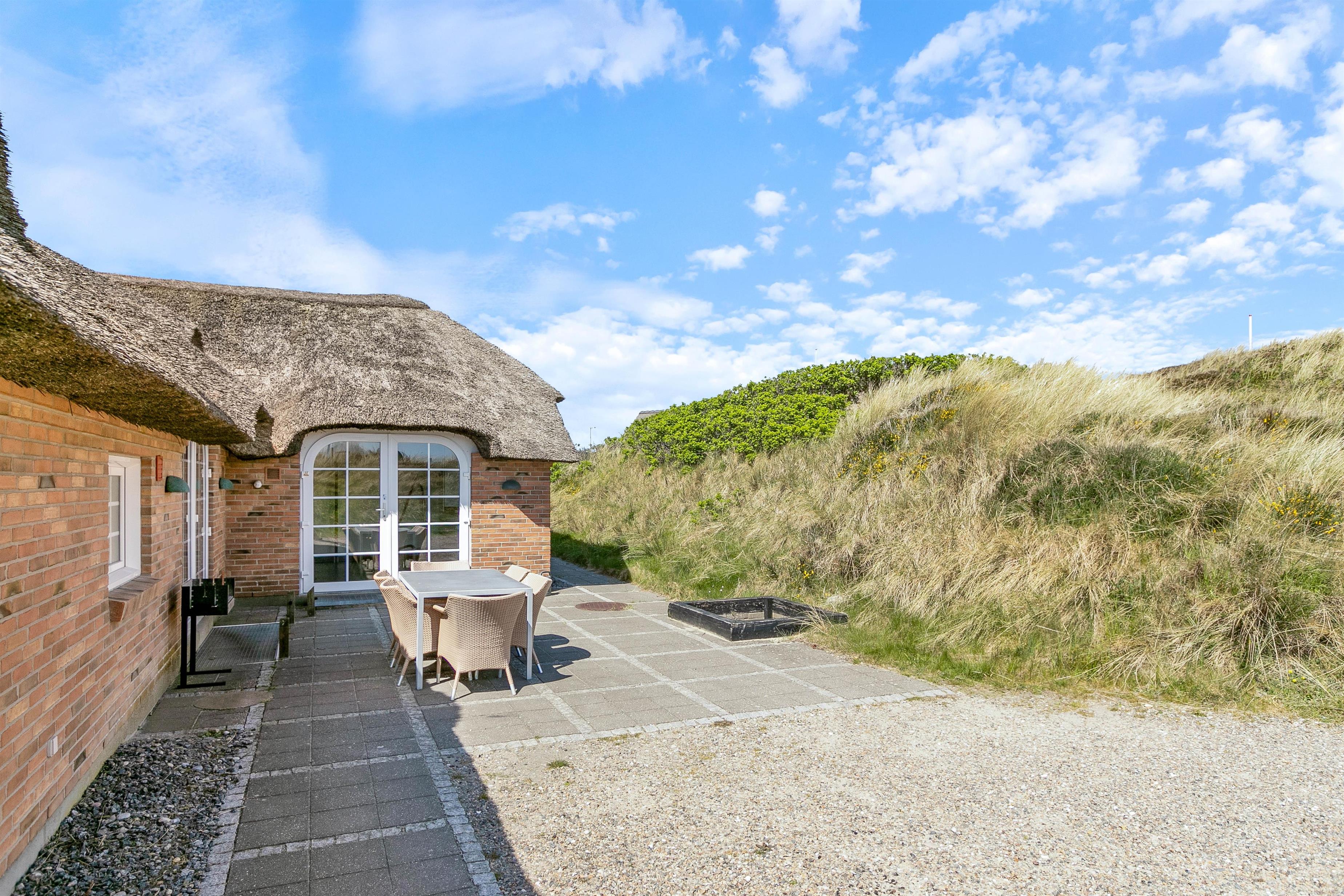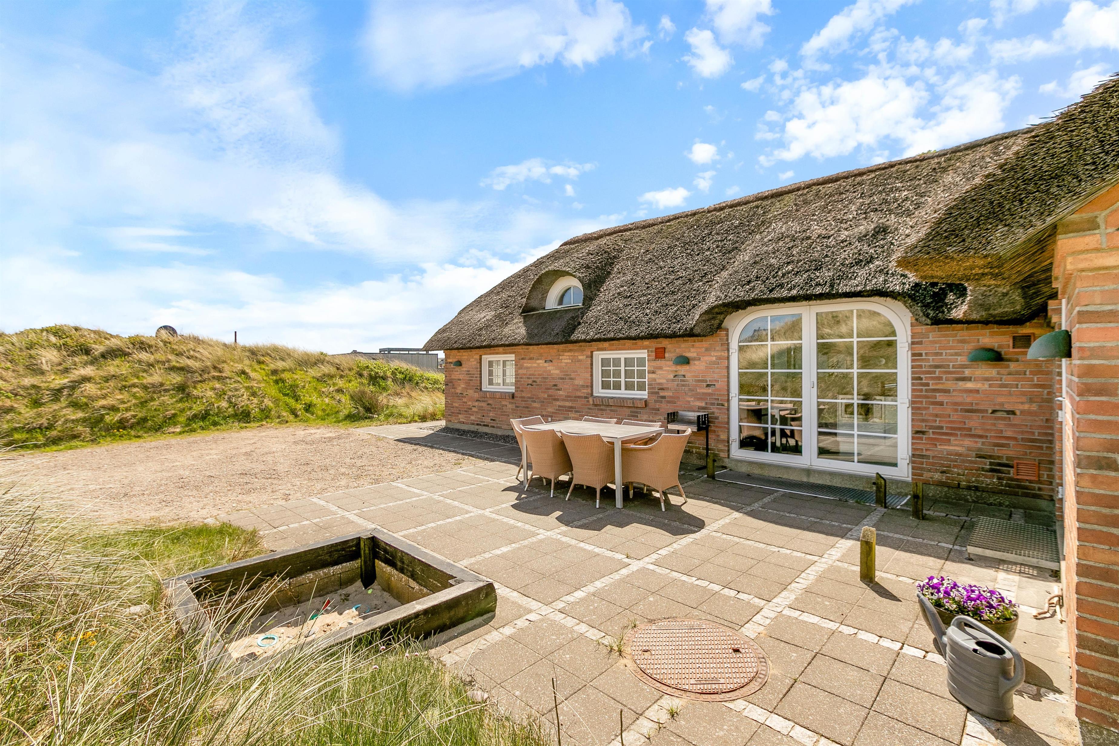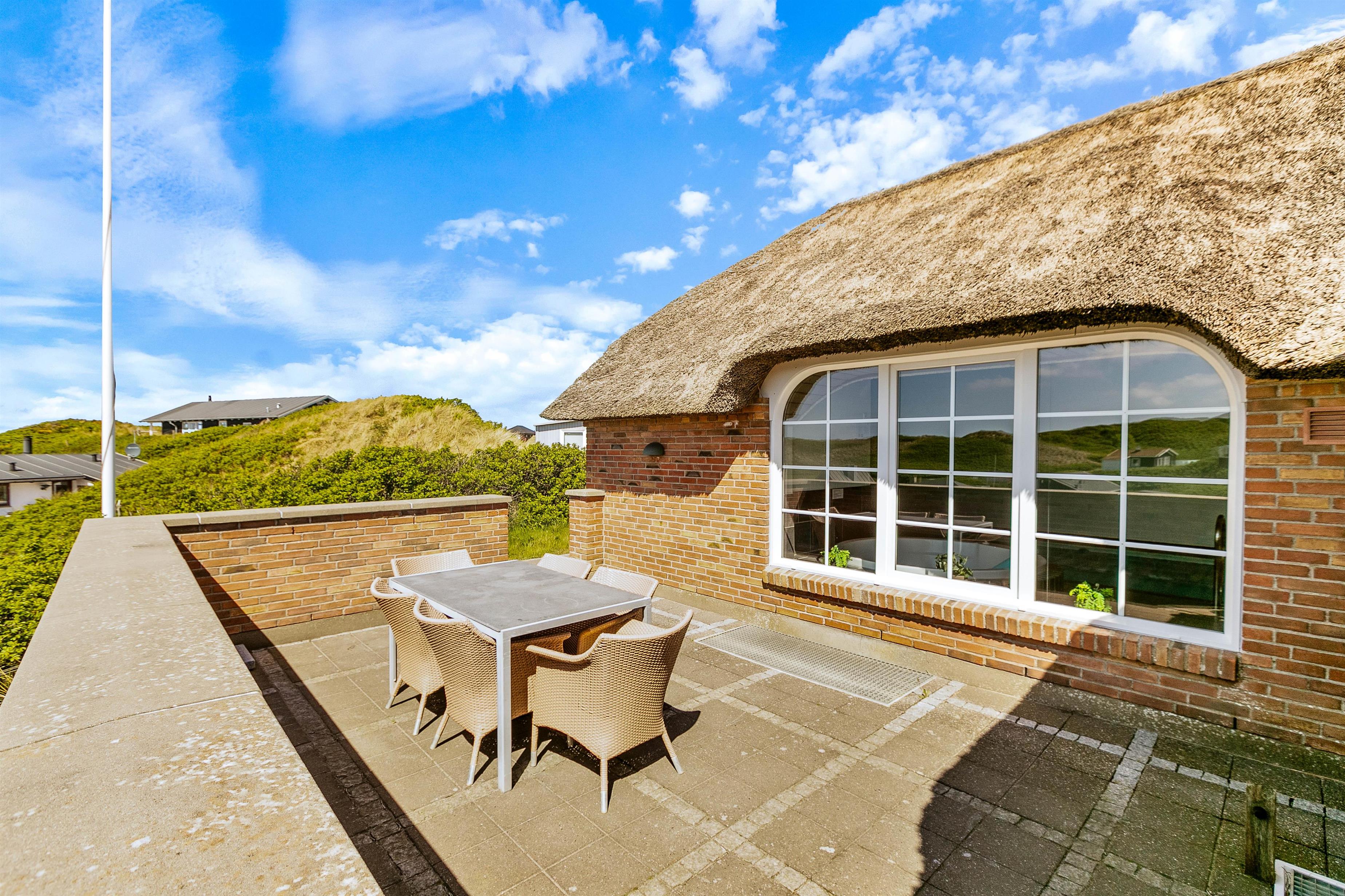 Rundt om huset er der flere terrasser, både åbne og afskærmede, med hyggelige siddepladser og liggestole. Der er rig mulighed for at nyde solens stråler, både til morgenmaden og til en eftermiddags-drink efter strandturen. Det er ren afslapning at sidde på husets vestvendte terrasse, nyde en god grill-middag og havets brusen i solnedgangen.