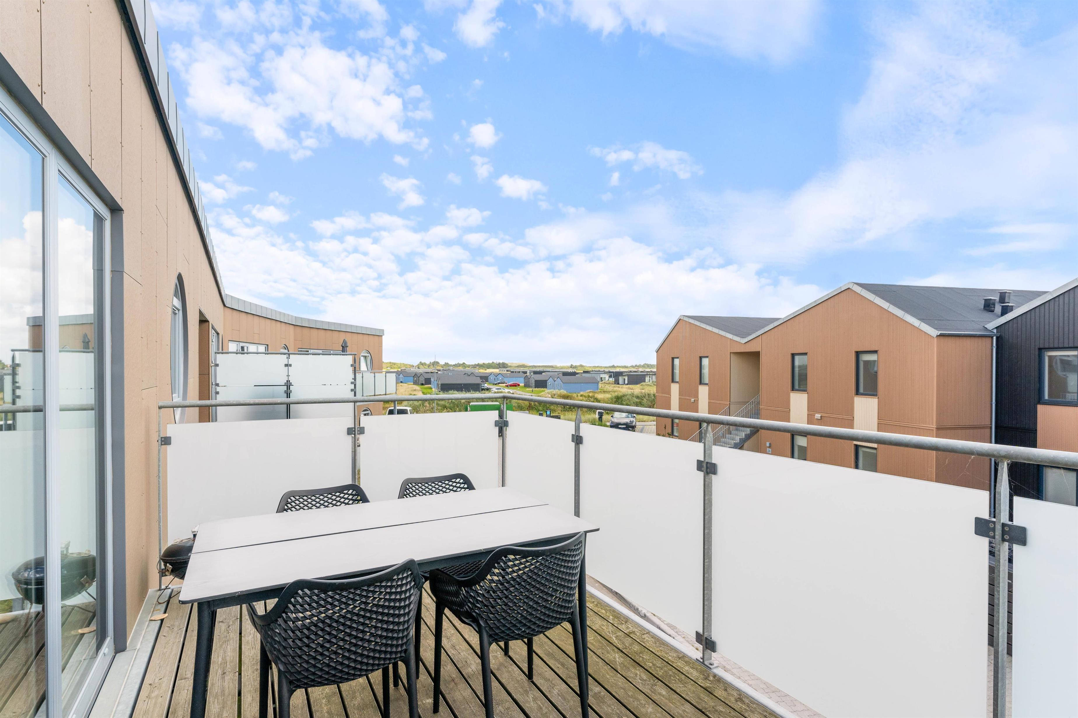Fra stuen er der adgang til en sydvendt balkon, hvor I kan nyde et lækkert måltid tilberedt over grillen. I behøver ikke at finde bilnøglerne frem, hvis I skal ud at handle, da ferielejligheden kun ligger 450 meter fra det nærmeste supermarked i Søndervig.