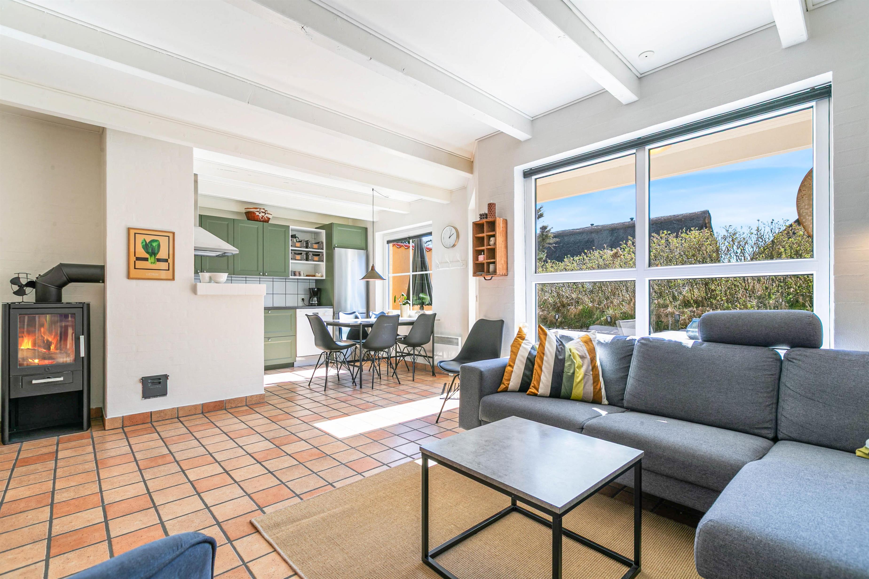Brændeovnen giver en behagelig stuetemperatur på køligere aftener. Sæt jer godt til rette og nyd flammerne med en god bog i hånden eller se yndlingsserien sammen. Er I mere konkurrencemindede, er der en PlayStation 3 i ferieboligen. Derudover er der en moderne og energivenlig varmepumpe.