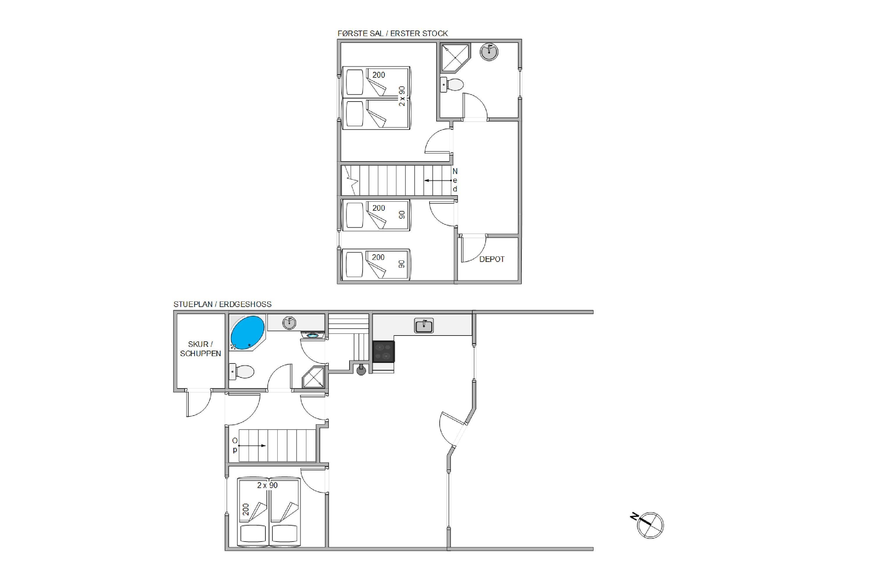 1. soverum/sengestørrelser2 x 90 x 200
