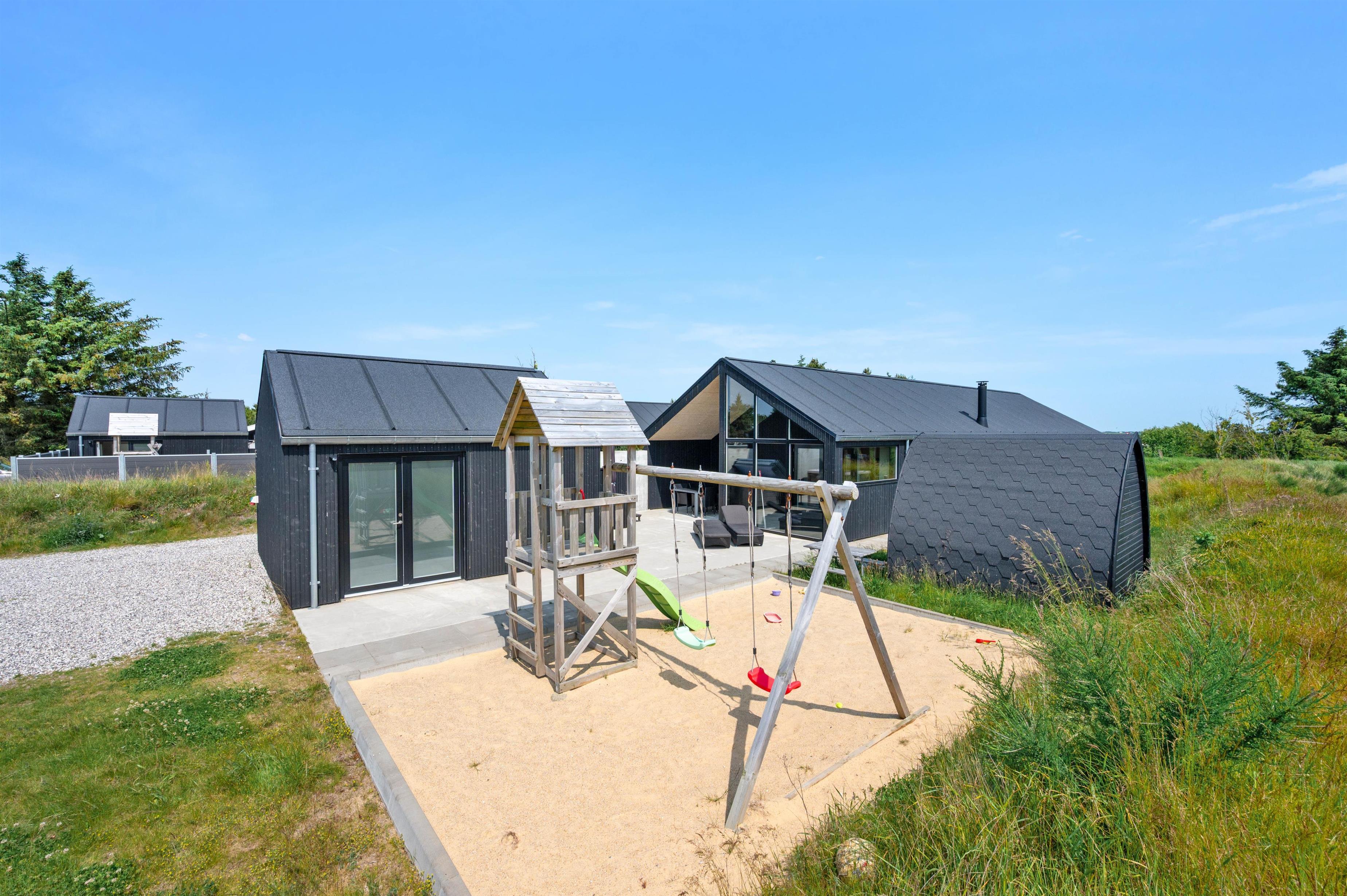 I sommerhuset på P Snejkers Vej 21B i Søndervig vil I føle jer hjemme, allerede når I træder indenfor. Det flotte sommerhus, der er bygget i 2023, rummer nemlig en moderne indretning, der bliver komplimenteret af det skønne lysindfald.