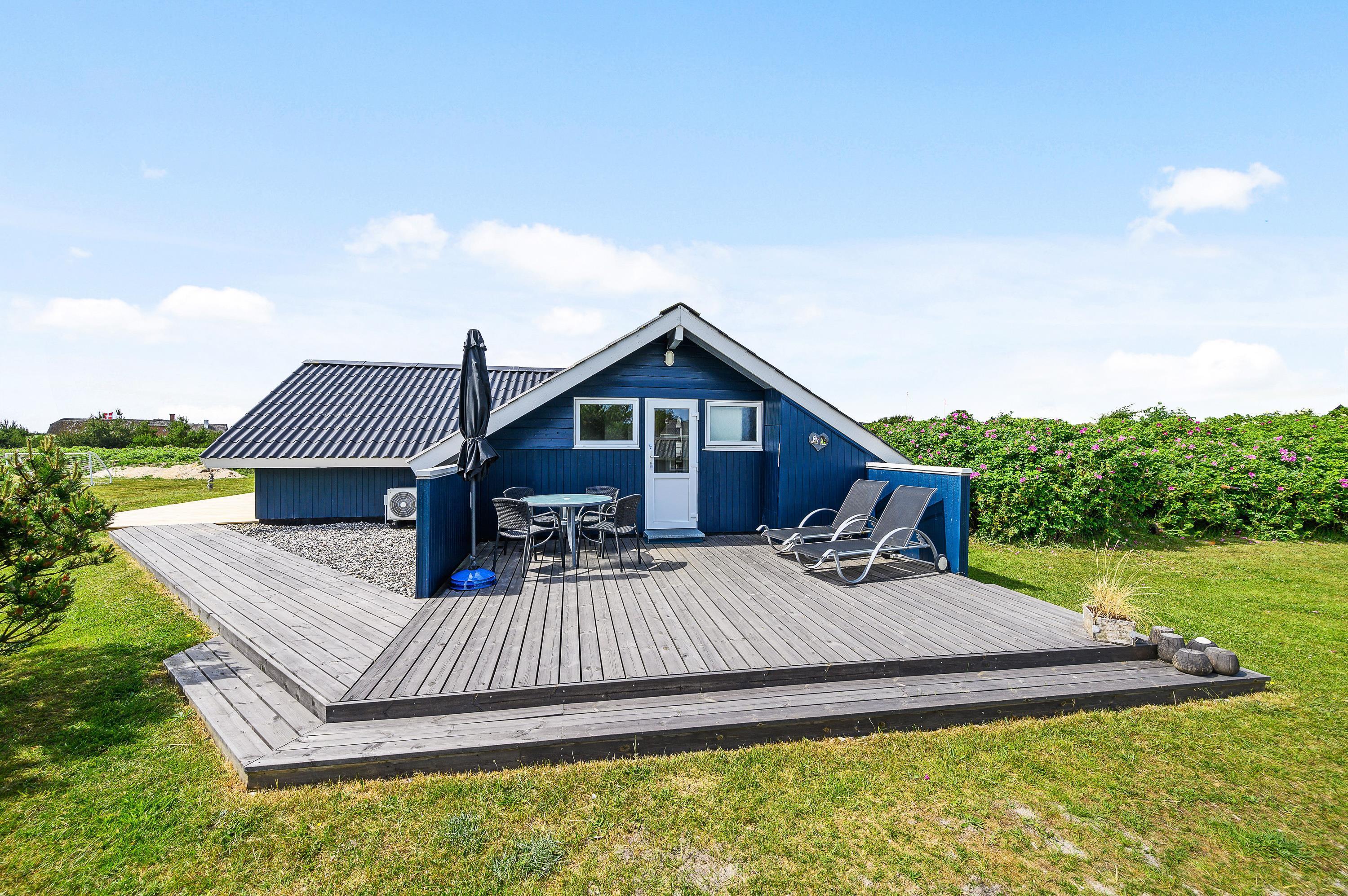Med til ferieadressen hører et skønt udeområde. Sommerhuset er beliggende på en stor naturgrund, og træer og buskads skærmer af til naboerne og giver jer masser af privatliv på ferien – og samtidig er I omgivet af den flotte, vestjyske natur med hede og klitlandskab.