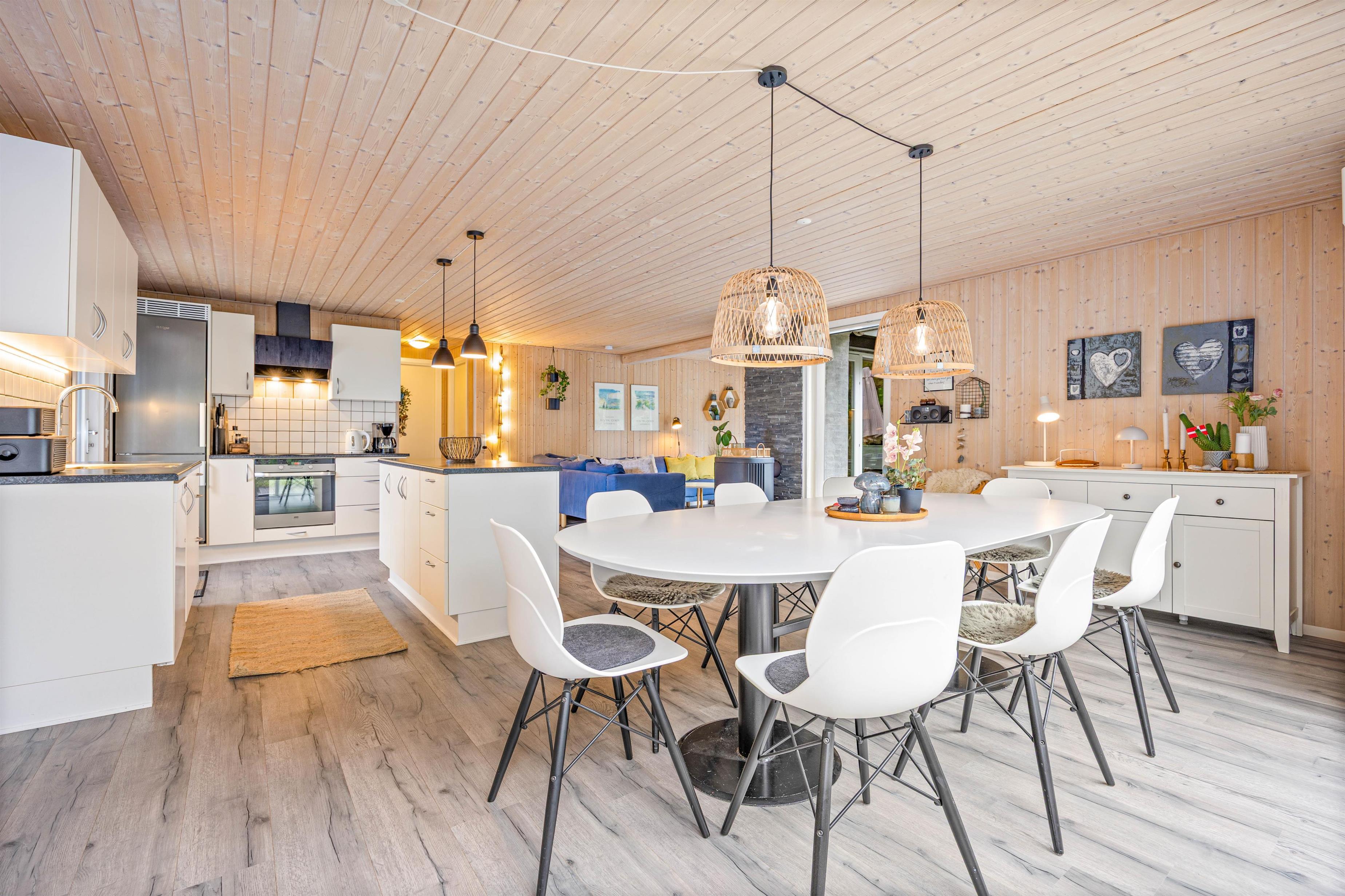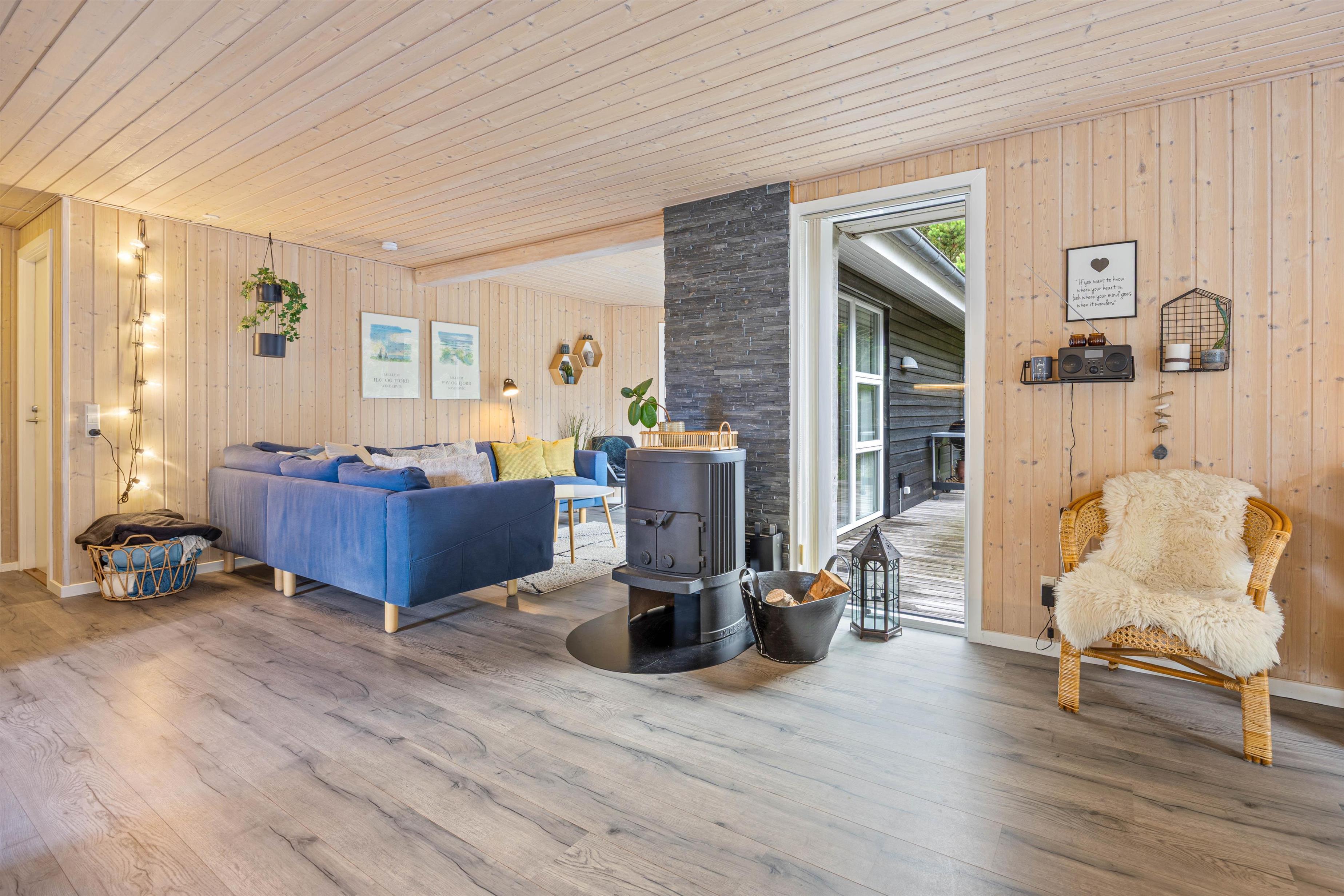 Sommerhuset er løbende blevet renoveret og sidst i 2018, hvilket sikrer moderne faciliteter i stemningsfulde rammer. Her findes der et veludstyret køkken med en opvaskemaskine og en separat fryser på 71 liter, der gør det nemt at tilberede alle jeres feriemåltider. Den rummelige stue er udstyret med en brændeovn, som skaber en hyggelig atmosfære på kølige aftener, og for varme sommerdage sikrer en luft til luft varmepumpe, at indeklimaet altid er behageligt.