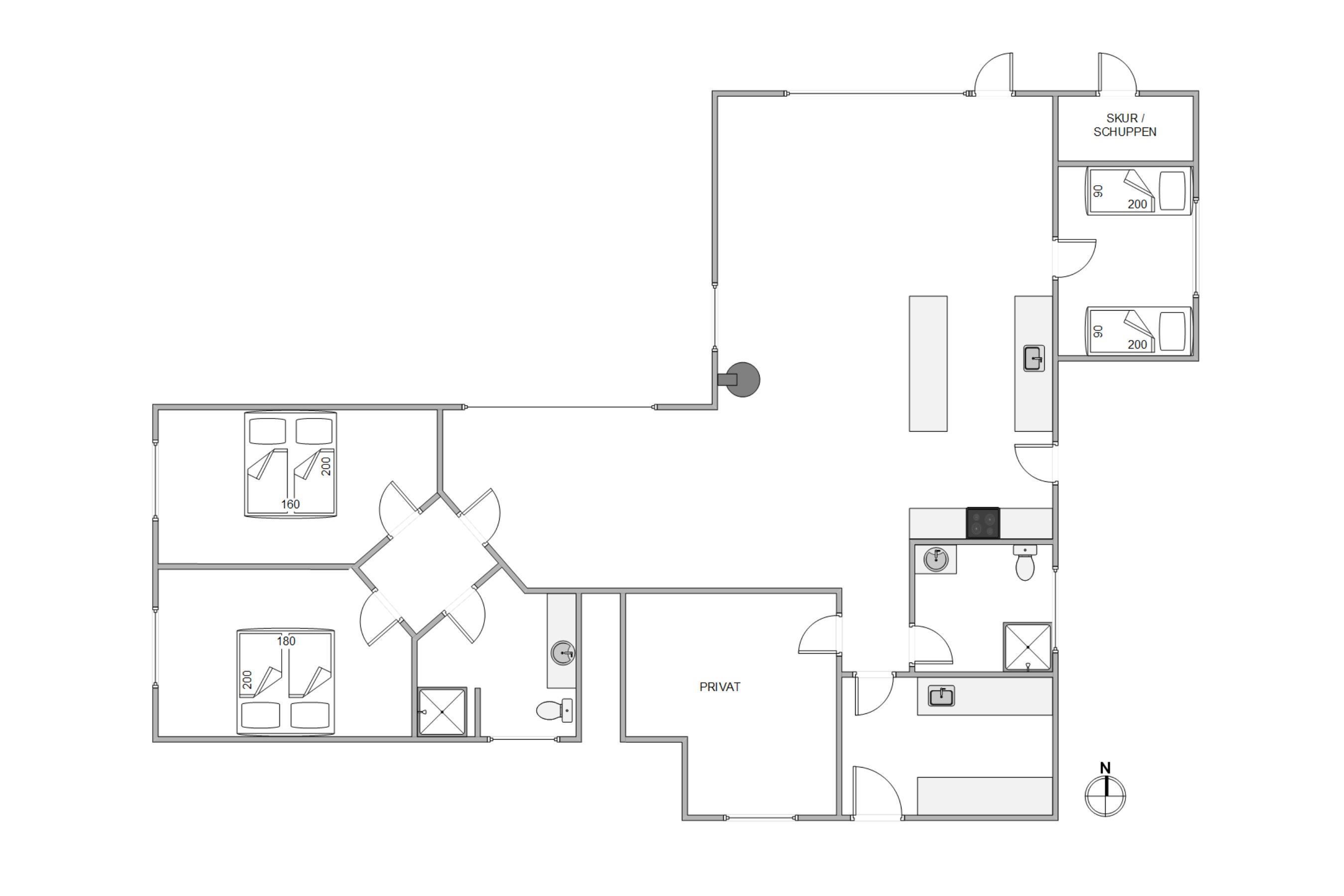 Der er tre soverum, hvoraf to er udstyret med dobbeltsenge og det sidste med to enkeltsenge. Her kan alle finde deres egen plads at slappe af på. Derudover har huset to badeværelser med moderne faciliteter, inklusive gulvvarme i det ene, så I kan nyde ekstra meget velvære under jeres ophold.