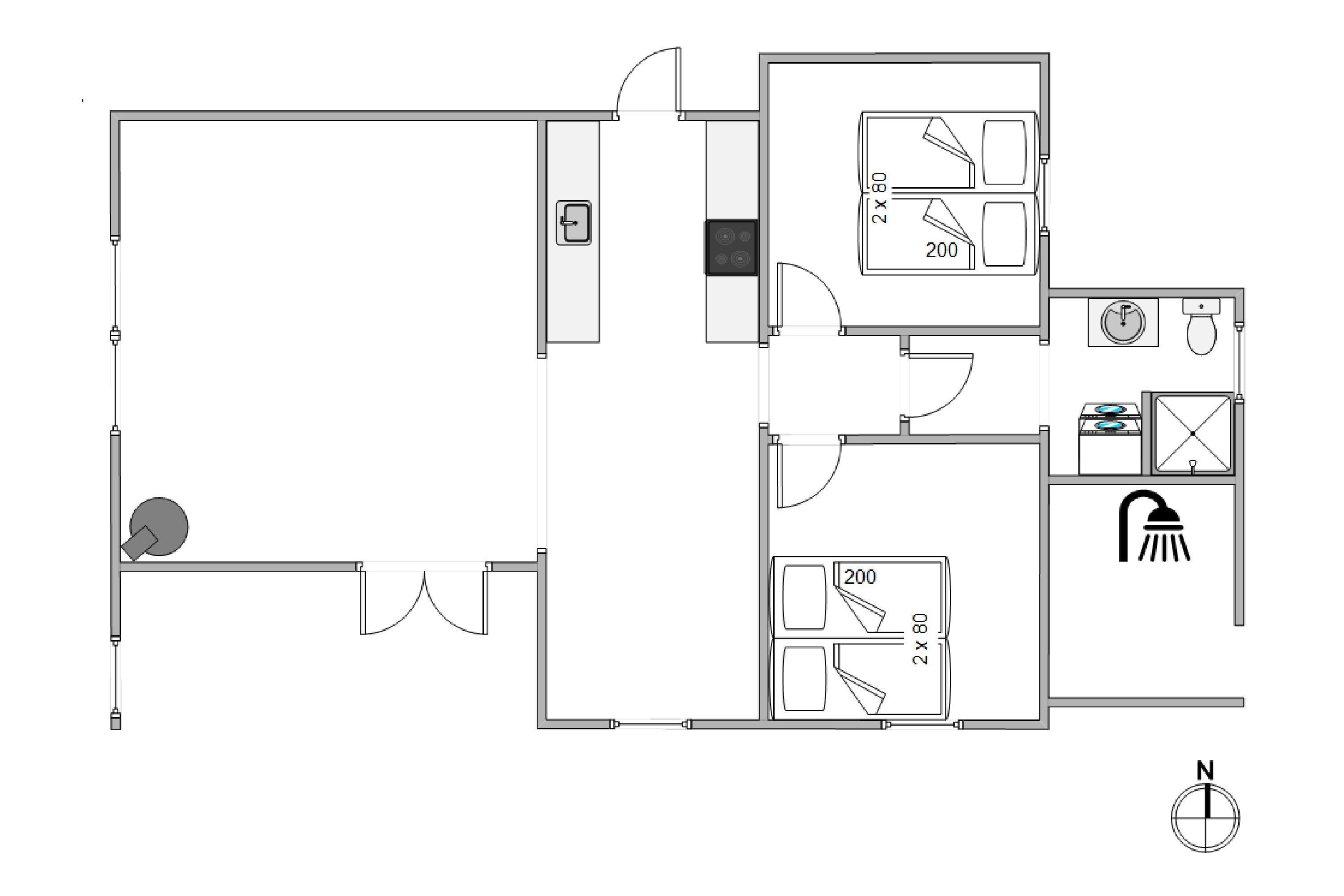Feriehuset på Lyngen 15 er et klassisk træsommerhus fra 70'erne, som er forvandlet til en fin sommerperle i dejlig strandstil. Husets indretning er lys og indbyder til hyggelige stunder i et stille ferietempo. De lyse vægge, lofter og gulve giver en dejlig rolig bund for den sommerlige stemning, der også kendertegner indretningen og møbleringen i huset. Det charmerende sommerhuset råder også over en brændeovn, som også sikrer endnu flere hyggelige timer og behagelige temperaturer, især på kølige aftener.
