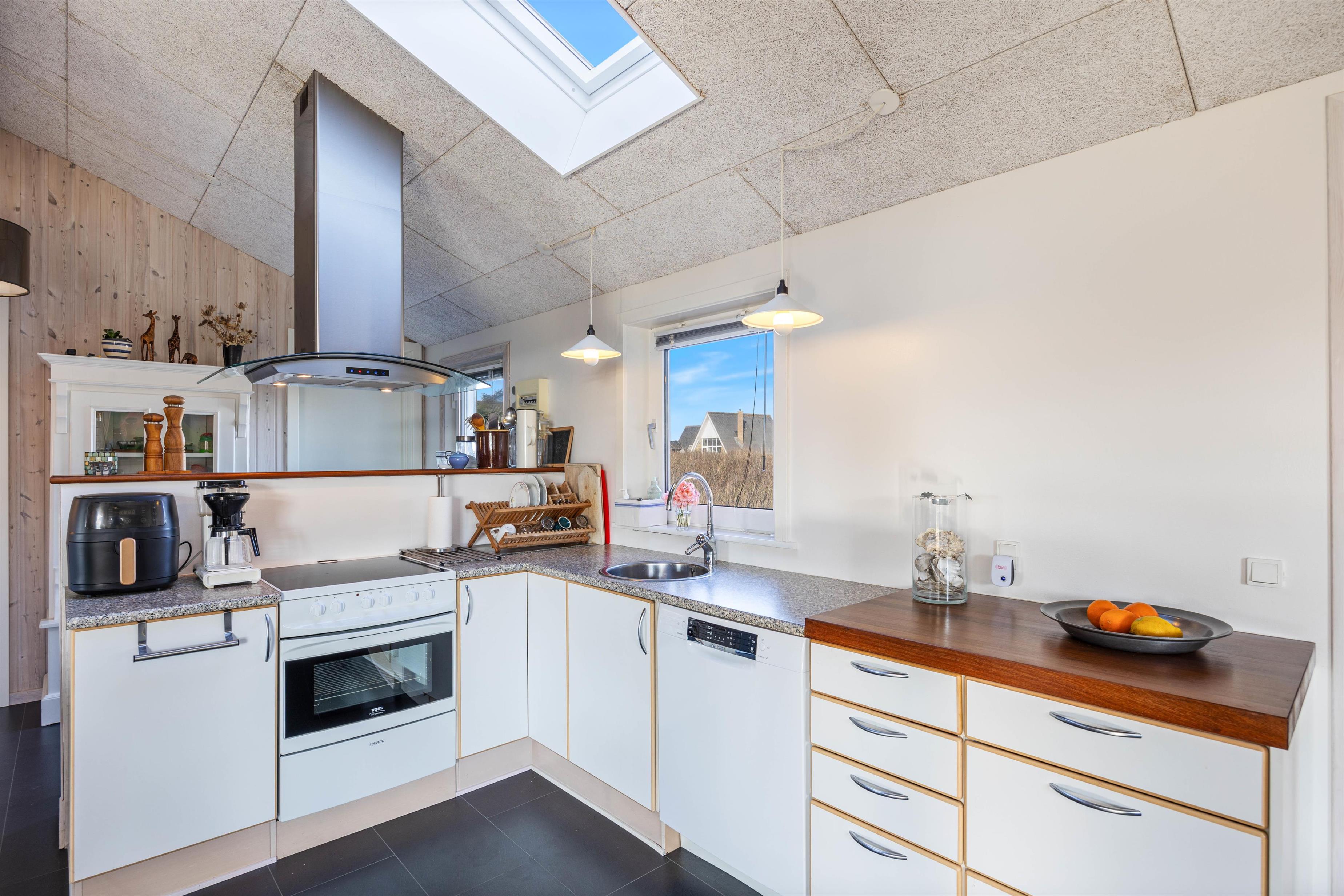 Feriehusets indretning imponerer med sin hygge. Det veludstyrede køkken giver jer mulighed for at lave jeres yndlings ferieretter med venner eller familien ved det store spisebord. Opvaskemaskinen gør oprydningen efter et måltid til en leg. Opholdsstuen med brændeovn skaber en hyggelig atmosfære på de kølige aftener, og bidrager til den helt rigtig feriestemning. Har I ikke gang i brændeovnen, har I mulighed for at benytte jer af den energibesparende luft-til-luft varmepumpe, som bidrager til et behageligt indeklima hele året rundt.