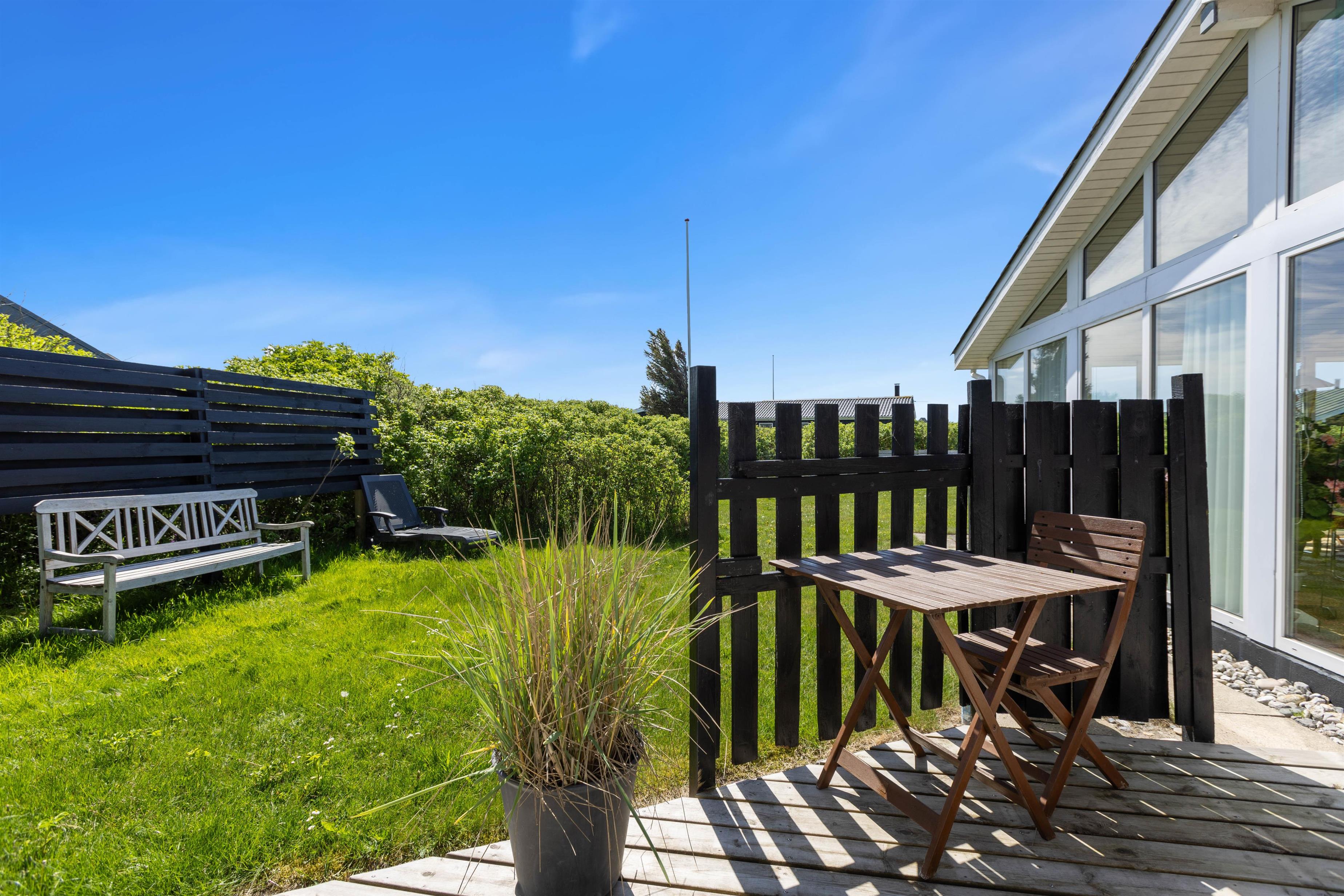 Feriehuset har en åben og afskærmet terrasse, hvor I kan nyde solen eller have hyggelige grillaftener under åben himmel. Det er også her i finder de behagelige havemøbler og solsengen, hvor i kan nyde de varme sommerdage.