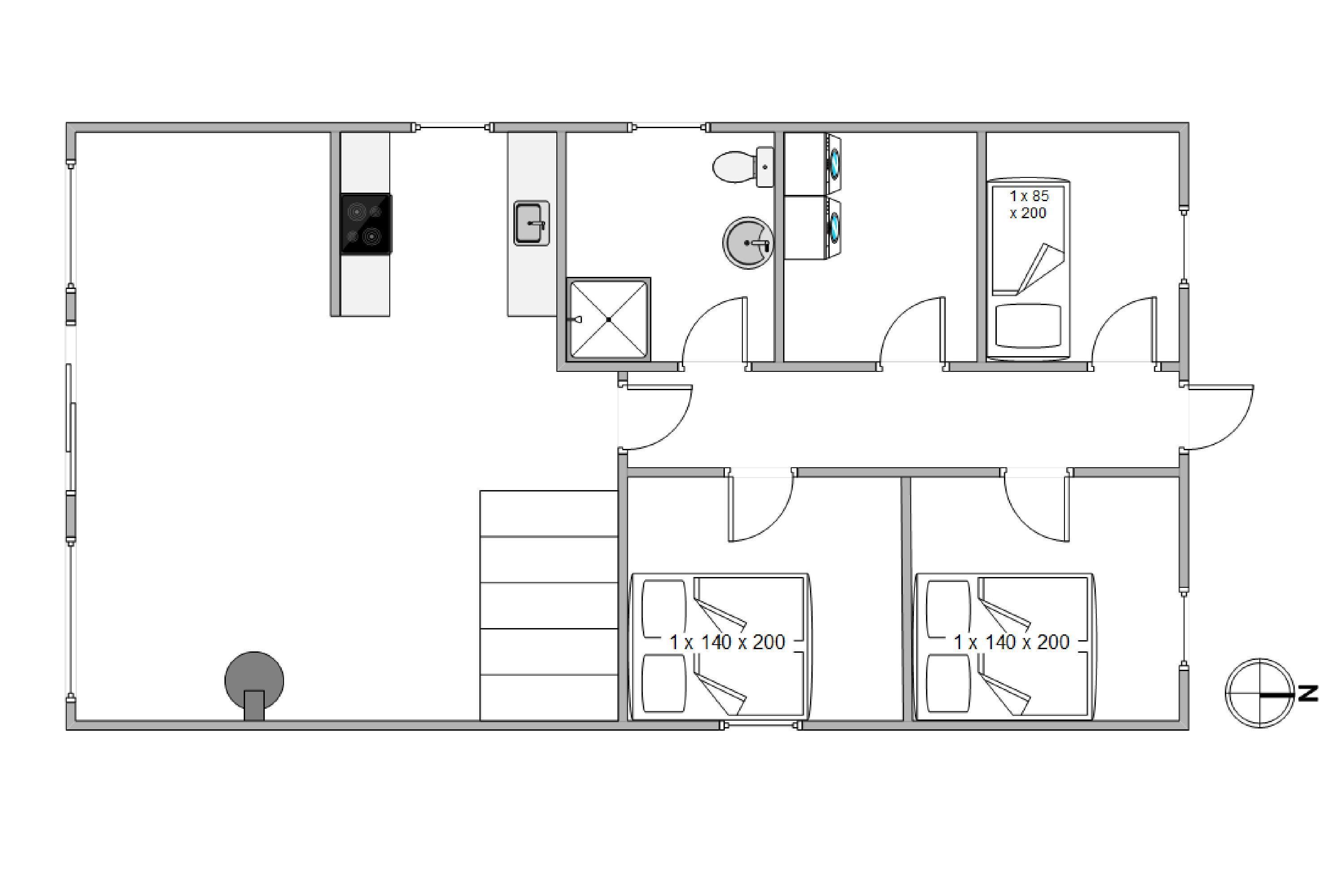 Det 88 kvadratmeter store feriehus byder på hjemlige rammer og god stemning fra første feriedag. Indretningen bliver tilført en helt speciel charme med sine mørke loftsbjælker, der sammen med den klassiske brændeovn og de små, personlige detaljer fuldender sommerhusstilen.