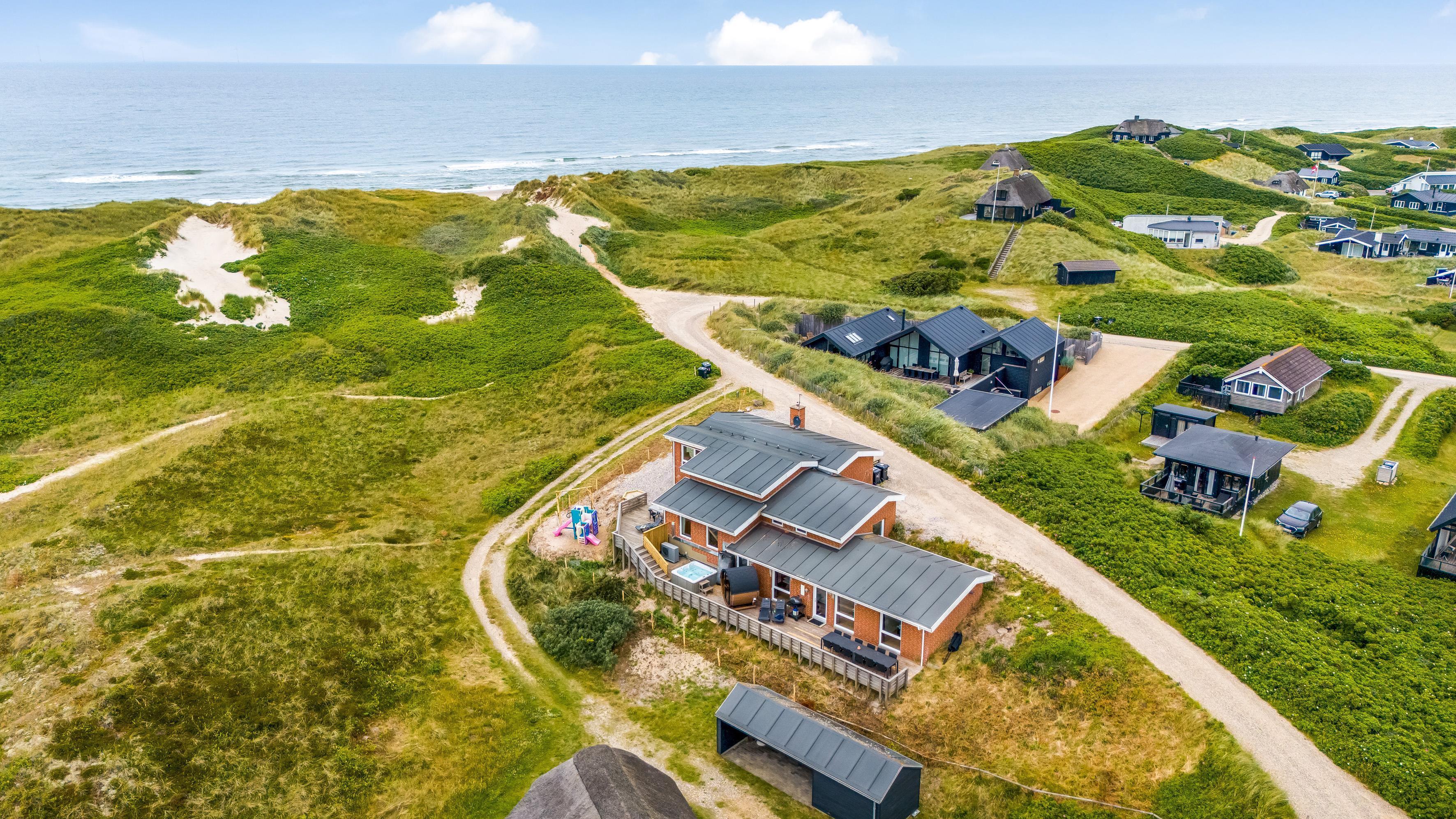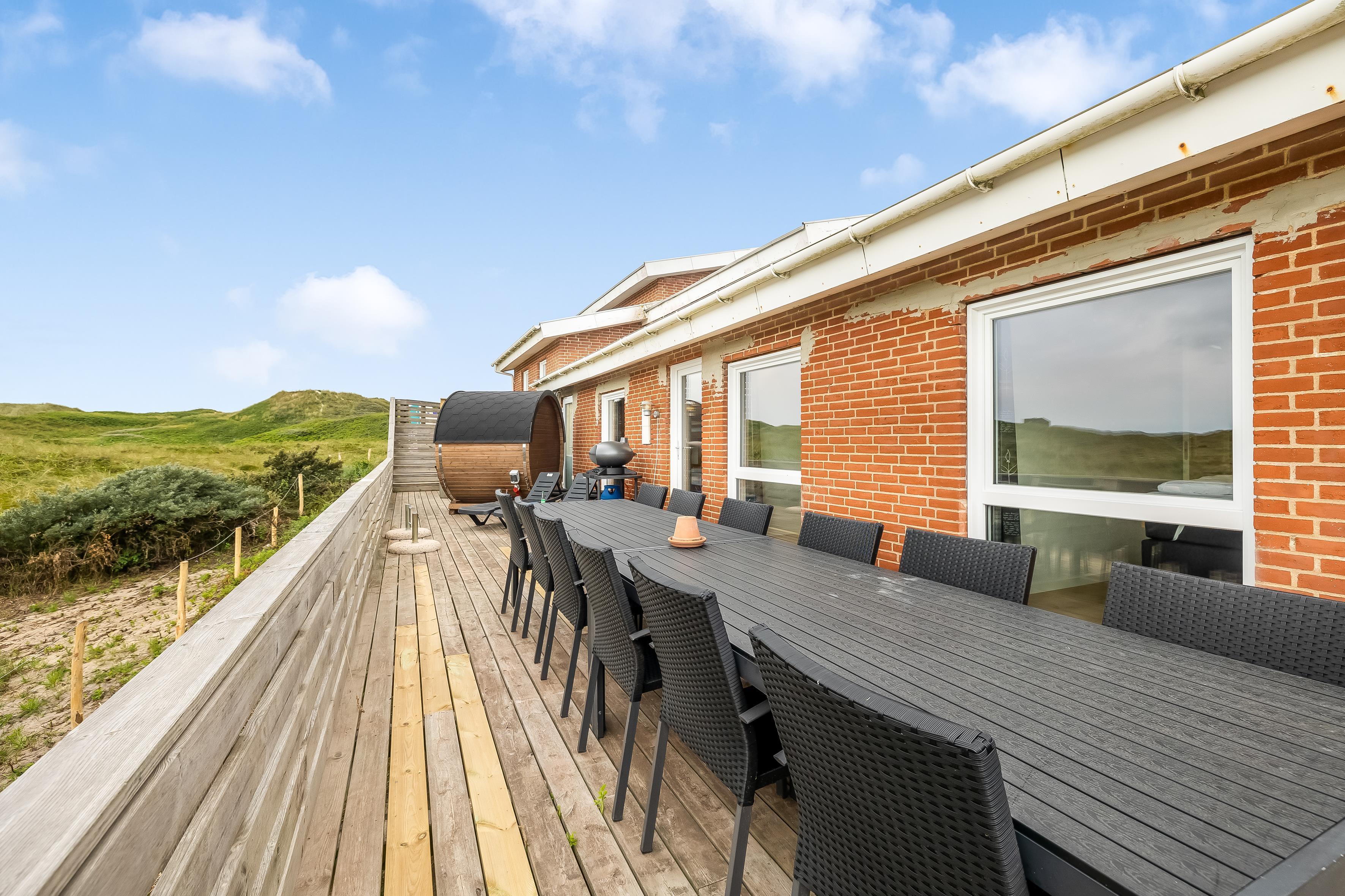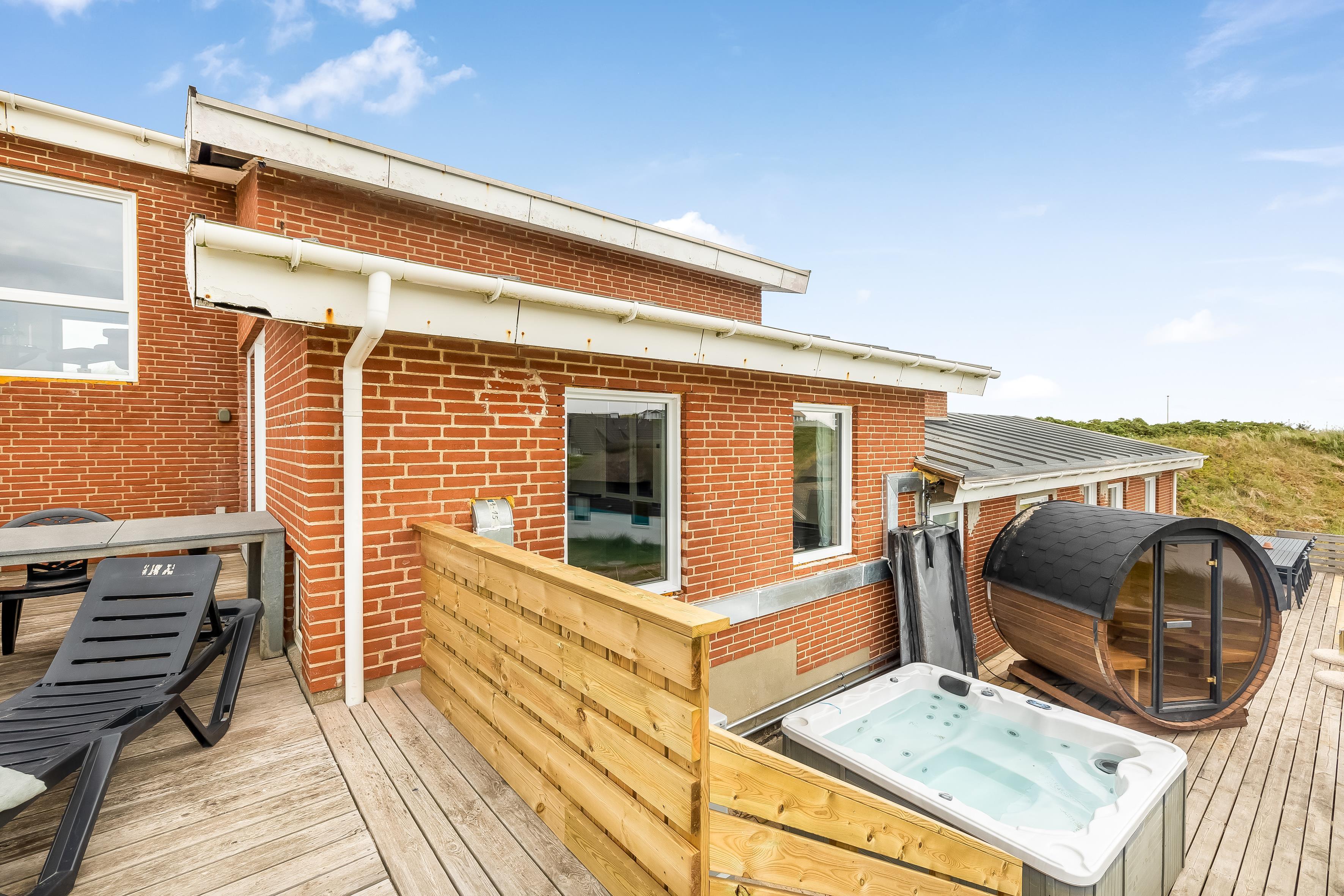 Udenfor kan du nyde en stor terrasse, hvor du kan grille og spise under åben himmel. For dem, der ønsker at slappe af, er der et udendørs spa, der kan rumme op til 7 personer.