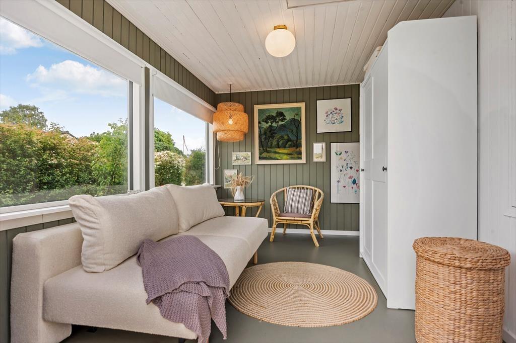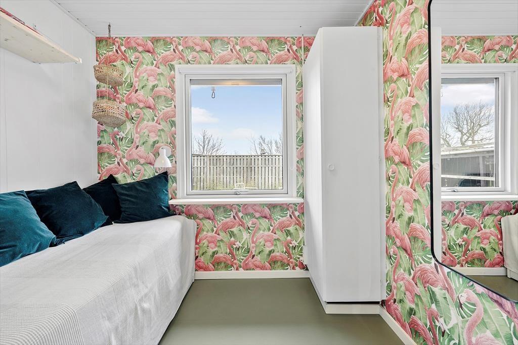 Sommerhuset har 4 sovepladser fordelt på to charmerende værelser, der begge er indrettet med fantastiske farver og vidunderlige tapeter. Her sover du i komfortable senge, så du kan sove godt efter en dag fyldt med oplevelser. Den sidste soveplads findes i alrummet, hvor en elegant og behagelig sovesofa giver en ekstra mulighed for en god nats søvn.