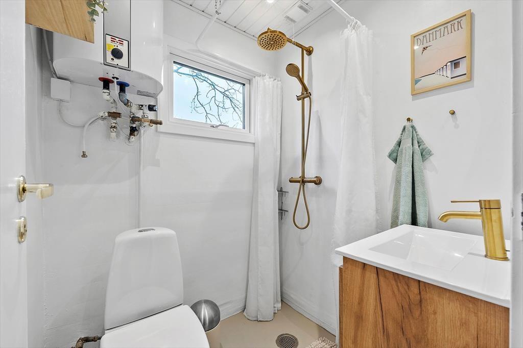 Husets hjerte er det åbne alrum, hvor køkken, spiseplads og stue smelter gnidningsløst sammen og indbyder til samvær samt hyggelige stunder. Det moderne køkken er fuldt udstyret, så du nemt kan trylle lækre måltider frem, mens de andre slapper af i de bløde møbler eller nyder kop kaffe ved spisebordet. Stuen er indrettet med sans for både æstetik og komfort – her kan du synke ned i sofaen med en god bog eller sætte en film på, mens aftenen langsomt falder på.