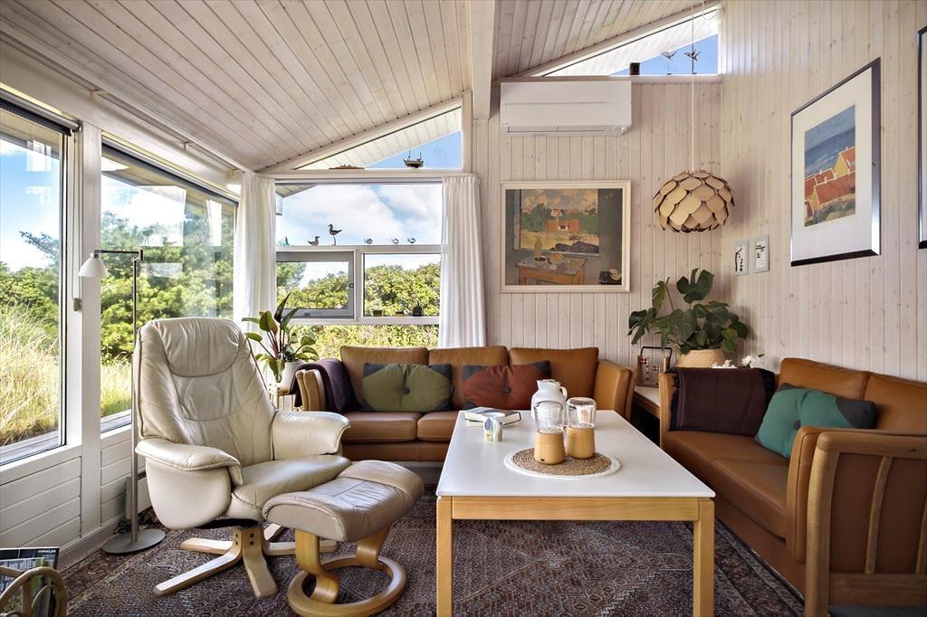 Indenfor møder du en lys og venlig indretning, hvor hyggen er i højsædet. Stuen er hjertet i huset, og her kan I samles om måltiderne, tænde op i brændeovnen på kølige dage eller bare slappe af med en god bog i sofaen. Det åbne køkken gør det nemt at være sammen, selv når der skal kokkereres, og du har et godt udgangspunkt for at nyde ferien i roligt tempo. Huset emmer af afslappet sommerhusstemning, der får skuldrene til at sænke sig med det samme, og det er oplagt at sætte sig til rette og nyde en langsom morgen med kaffe og hjemmebag.