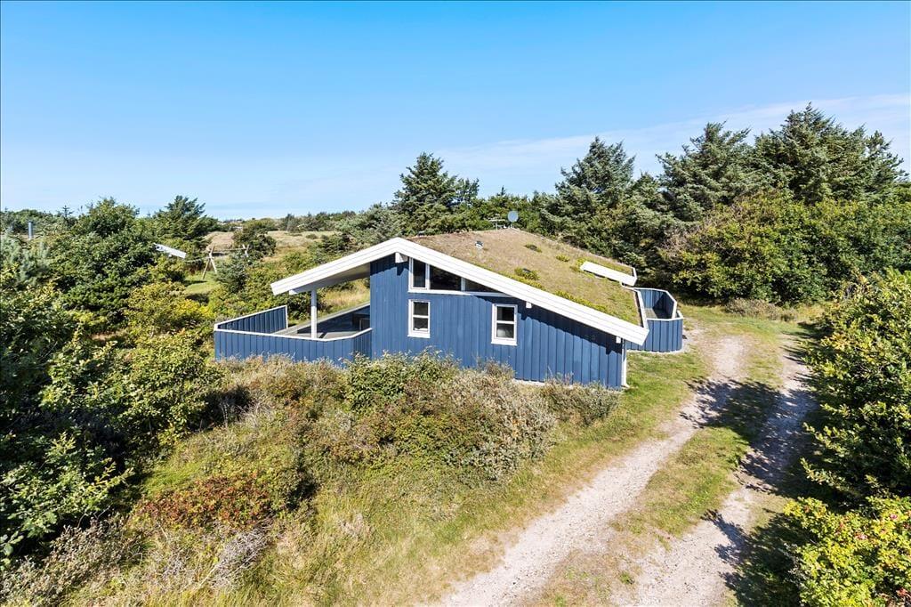 Sommerhuset ligger i et smukt klitområde, hvilket også afspejles i beplantningen på den store naturgrund. På østsiden ligger en lille terrasse ved entreen, mens I på vestsiden kan færdes helt ugeneret på den store og delvist overdækkede terrasse med udgang fra stuen. Også børnene vil få nogle gode timer her i sandkassen og i gyngerne.