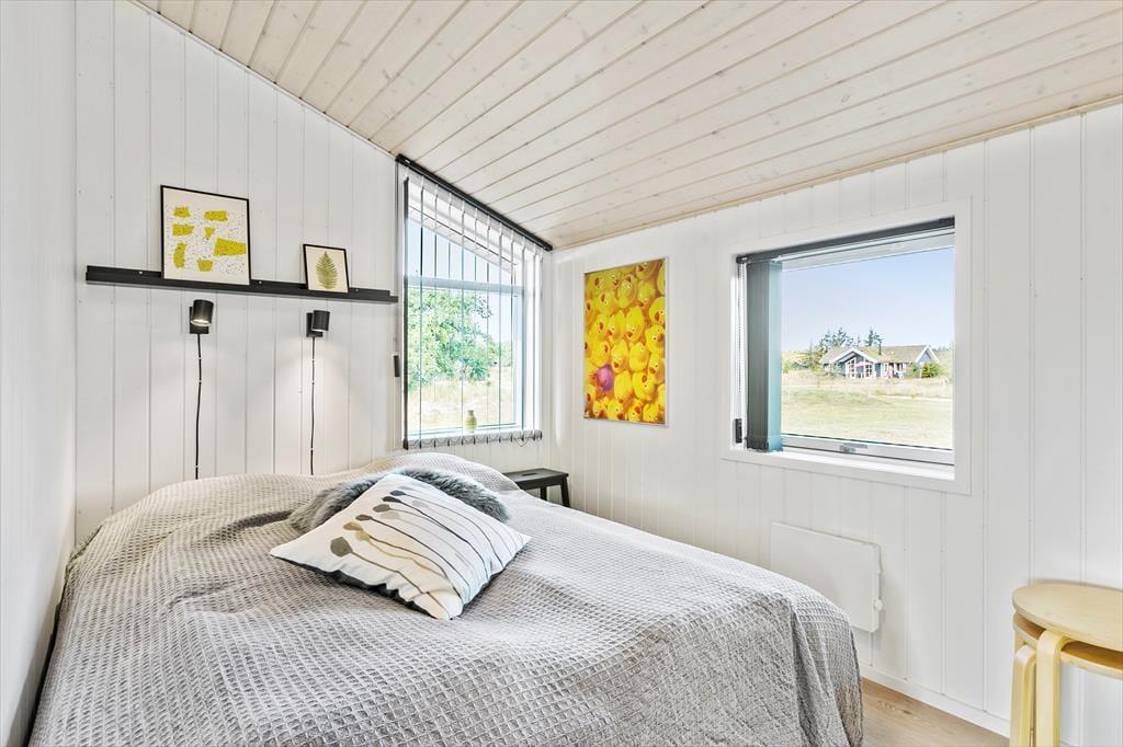 Overalt i huset oser det af behagelig komfort og god stil. Stuen er ud i et med køkkenet, og her er der alt i moderne bekvemmeligheder og hårde hvidevarer. I stuen er der store vinduespartier og loft til kip. Dette lader masser af det skønne nordjyske lys ind. Fra stuen er der ligeledes udgang til den ene af husets dejlige terrasser. Der er entre så man har mulighed for at hænge sit overtøj og stille skoene fra sig efter oplevelsesture inden man går ind i huset. Derudover er der fordelingsgang hvor der er adgang til husets dejlige badeværelse, der ligesom resten af huset er indrettet i smagfuld stil med sans for detaljer og komfort. Her er der både spabad og sauna. Så der er rig mulighed for at slappe af efter en oplevelsesrig dag, og nyde varmen i saunaen eller slappe af i spabadet. Fra fordelingsgangen er der ligeledes adgang til de 2 af husets soverum med gode komfortable senge. Fra stuen er der adgang til husets tredje soverum ligeledes med god komfortabel dobbeltseng. Et virkeligt skønt sommerhus til en vellykket ferie for hele familien eller par der ønsker at tilbringe ferien sammen. Et perfekt valg på alle tider af året.