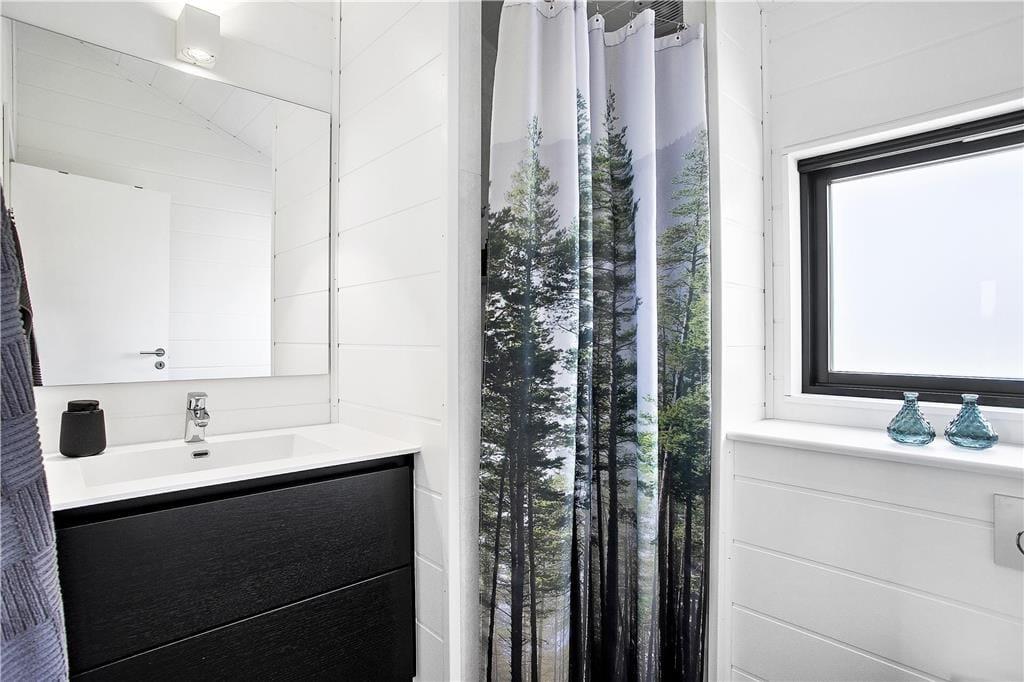 Udsigten og de fredsommelige omgivelser bliver naturligvis ikke ringere af, at I rykker jer udenfor under åben himmel. Fra træterrassen, der går hele vejen rundt om huset og er delvist overdækket, kan I skue ud over nåletræer, lave buskadser og åbne områder. Huset er det sidste på den lukkede vej, og til den ene side er jeres nabo endda et fredet areal. Måske tripper råvildt forbi, men meget mere sker her ikke – så det er med andre ord et oplagt sted at komme helt ned i tempo.