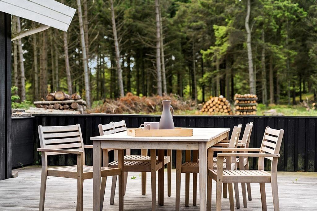 Med en skovgrund påhele 2.586 m2 får I mildest talt ingen pladsproblemer ude i det fri. Her kan I virkelig lege og boltre jer frit, og udelivet kommer endda til at foregå i 100% ugenerede og aldeles naturskønne rammer. Det får I selvfølgelig også glæde af, når I hygger jer på den sydvendte træterrasse, hvoraf en del ligger godt i læ mellem sommerhuset og annekset. Desuden er der gratis adgang til tennisbane på grundejerforeningens fællesareal.