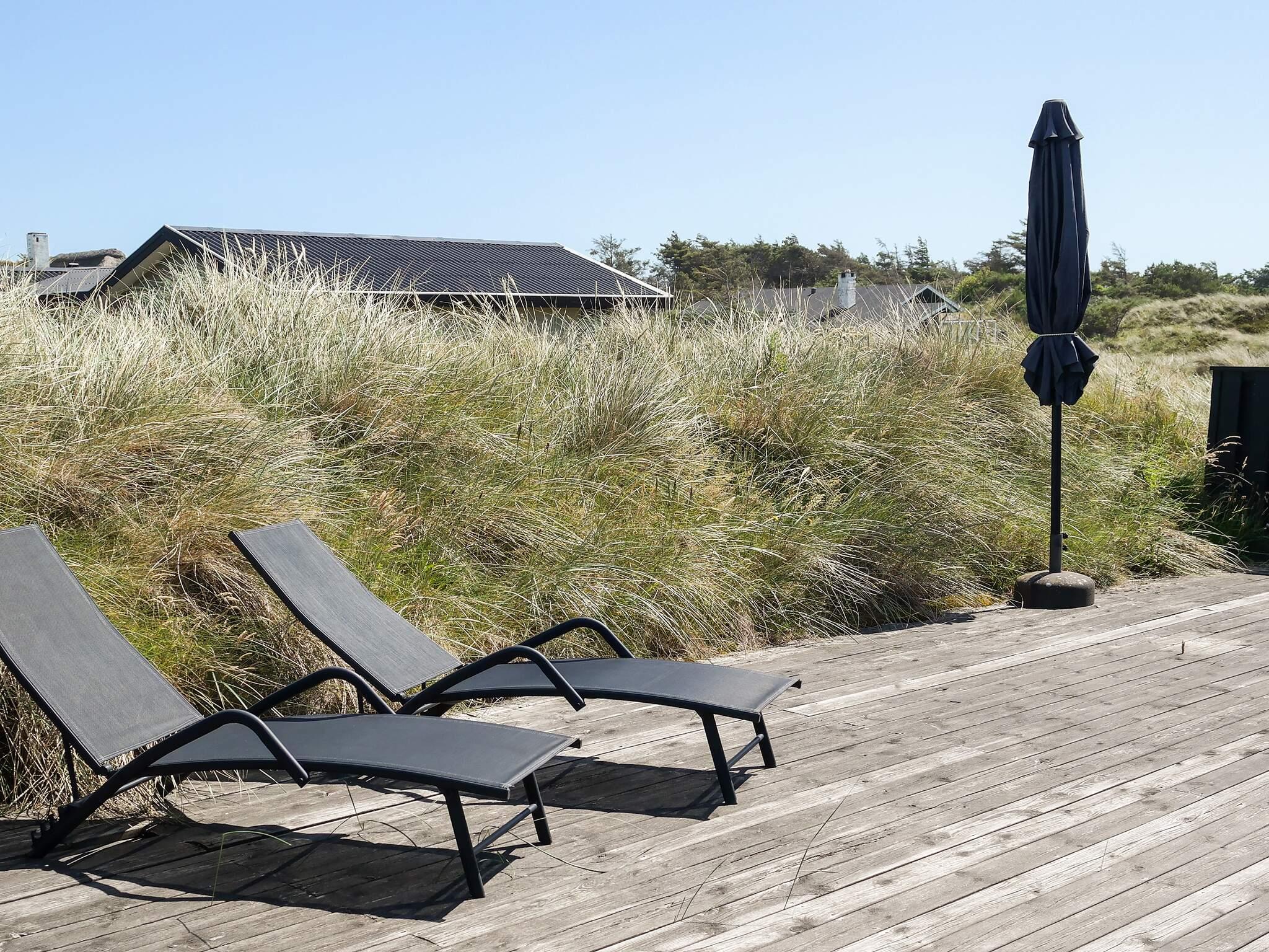Fra køkken/alrummet er der direkte udgang til én af husets to store terrasser. Begge terrasser er afskærmet af stakit og klitter, hvilket giver optimale rammer for ugeneret afslapning i fred og ro. Som en ekstra luksus råder sommerhuset over et vildmarksbad, hvor du kan læne dig tilbage og nyde naturen og udsigten på lange, lyse sommeraftener.