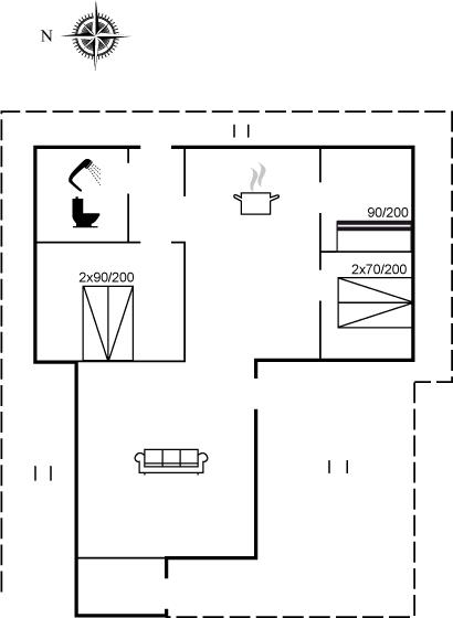 Ferieboligen er beliggende på en 6000 m² stor klitgrund. Der er 140 m til havet. Nærmeste forretning er beliggende i en afstand af 1900 m. Til ferieboligen hører åbent terrasseareal. Udendørs bruser. På lune aftener sørger en udendørs pejs for hyggelig stemning. Grill til rådighed. Parkering ved ferieboligen.