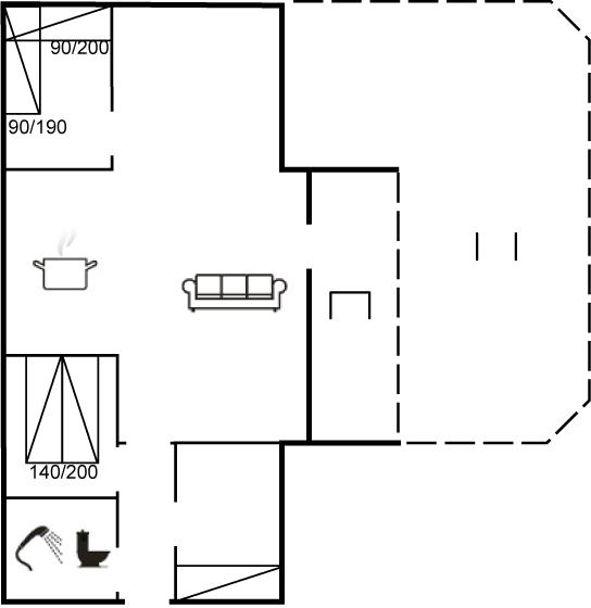 Der er i alt 3 soveværelser. Sovepladserne fordeler sig på: 2 sovepladser i dobbeltseng. 3 sovepladser i enkeltsenge.