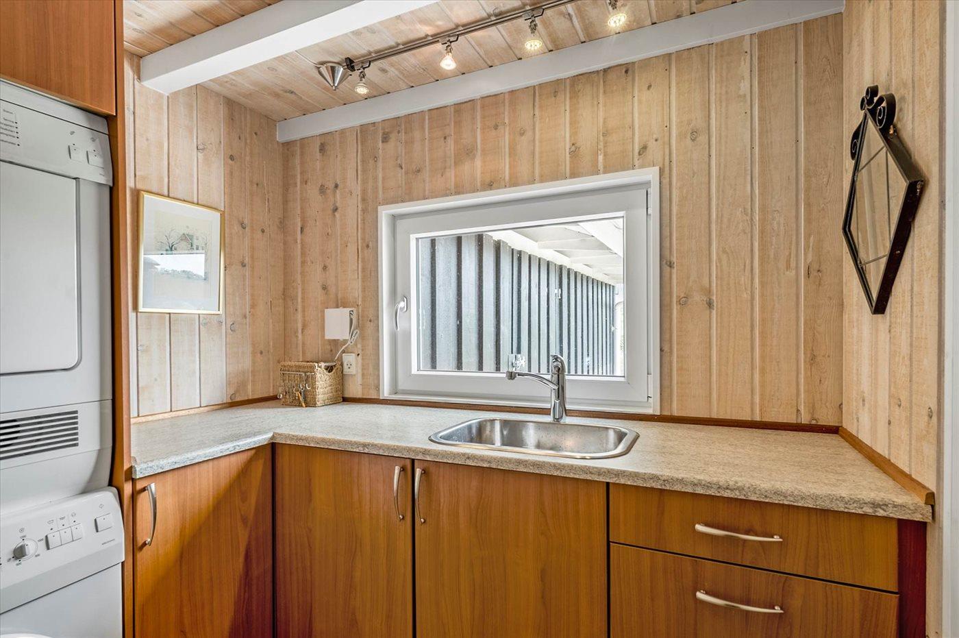 Køkkenet er udstyret med 1 køleskab. Der er 4 keramiske kogeplader, varmluftovn, mikrobølgeovn samt opvaskemaskine.