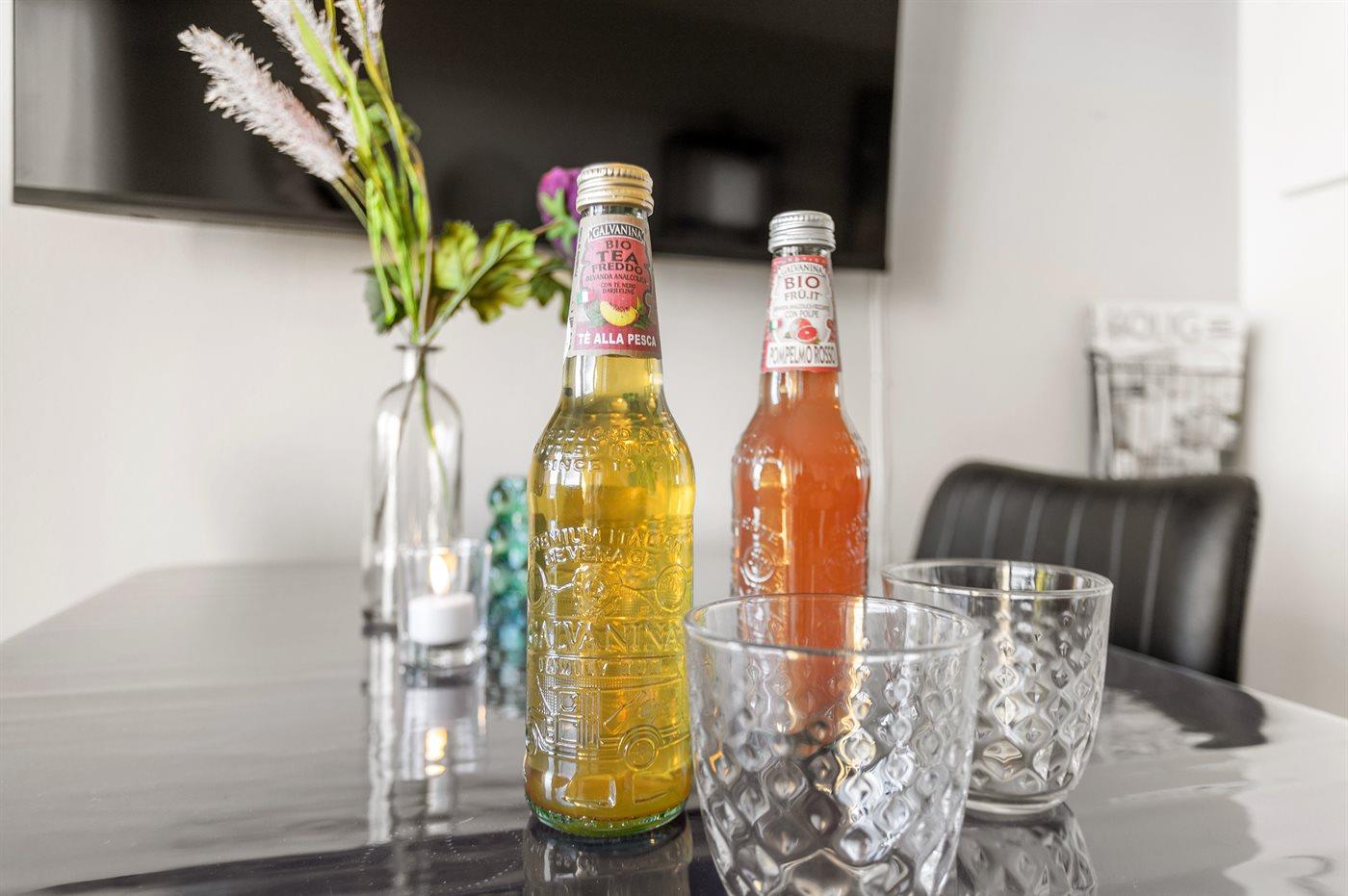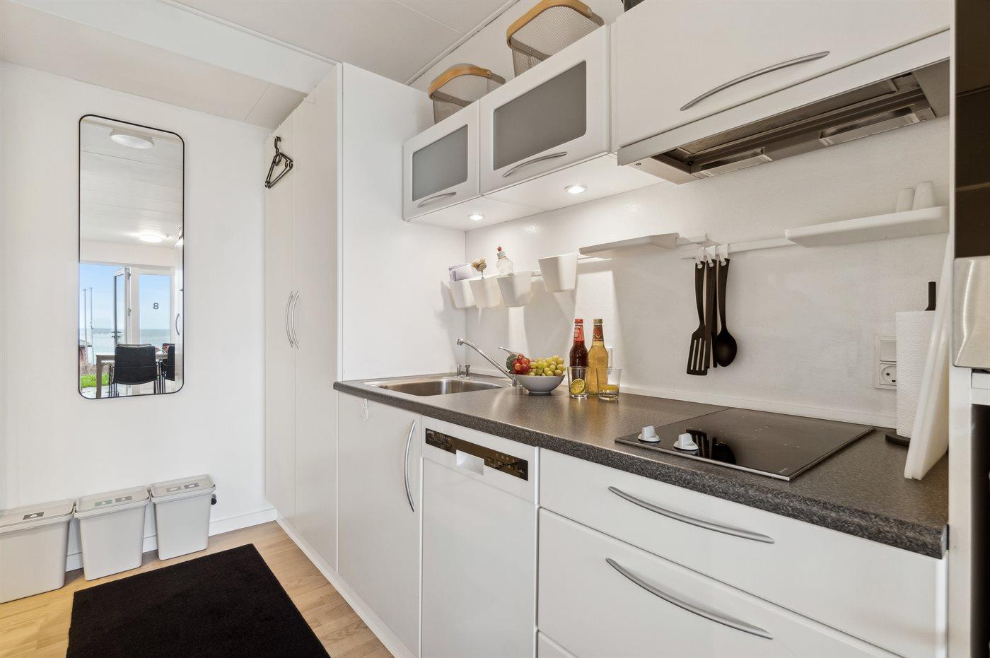 Køkkenet er udstyret med 1 køleskab. Der er 2 keramiske kogeplader, varmluftovn, mikrobølgeovn samt opvaskemaskine.