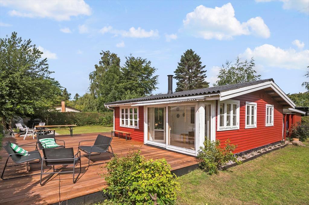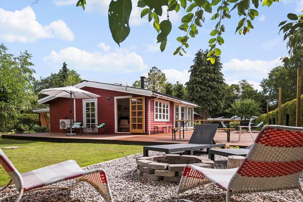 Sommerhuset har en have, med udeareal både for både børn og voksne. Fra haven kan du gå ind på en overdækket terrasse med havemøbler.