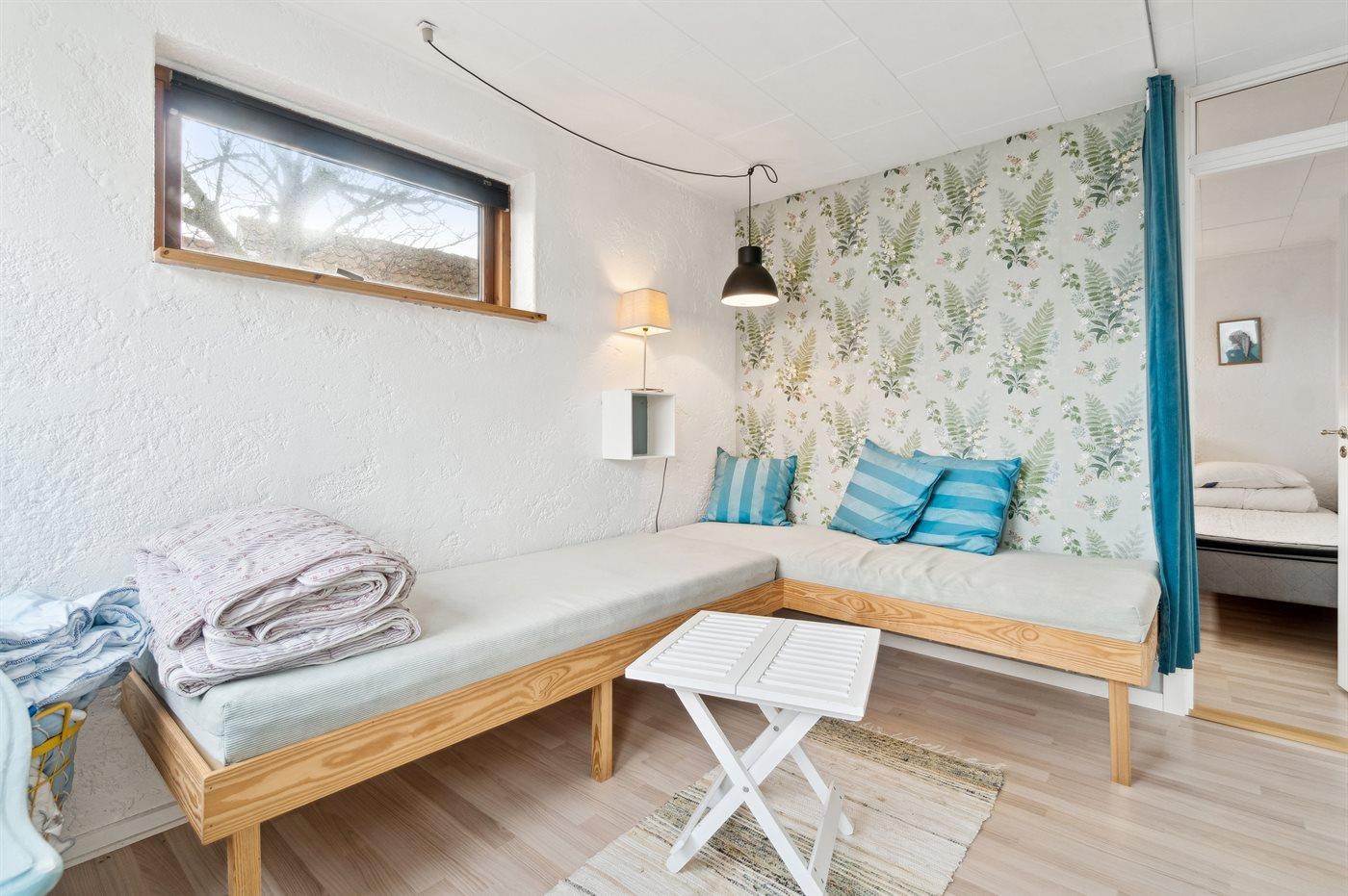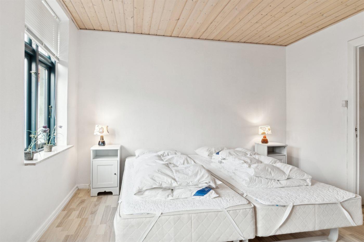 Der er i alt 3 soveværelser. Sovepladserne fordeler sig på: 2 sovepladser i dobbeltseng. 4 sovepladser i enkeltsenge. Derudover er der 1 stk. barneseng.