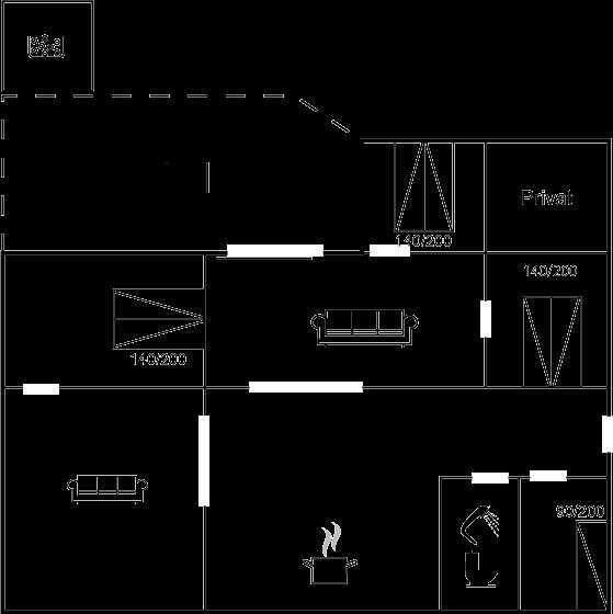 Der er i alt 3 soveværelser. Sovepladserne fordeler sig på: 6 sovepladser i dobbeltsenge. 1 soveplads i enkeltseng. 2 af disse sovepladser befinder sig i stuen. Derudover er der 1 stk. barneseng.