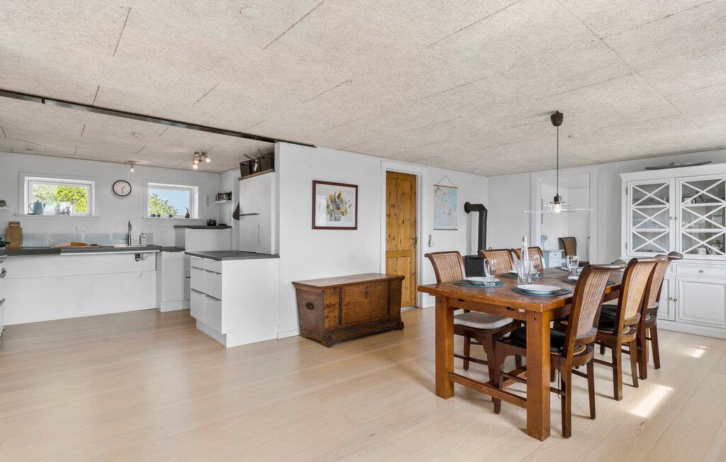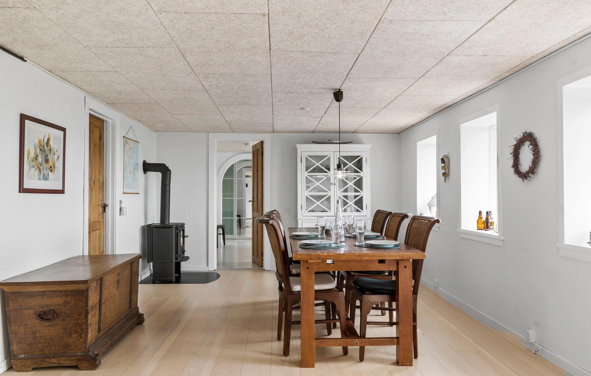 Nyd jeres ferie i dette rummelige sommerhus i Jylland, hvor der er tænkt på hele familien. Jeres optimale tilflugtssted kombinerer afslapning og aktiviteter og byder jer hjertelig velkommen. Begynd dagene med en lækker morgenmad ved det rummelige spisebord lige ved siden af det åbne, moderne køkken. Hvis vejret tillader det, er det bedst at nyde jeres måltid på terrassen, som er optimal til at slappe af udendørs. Find jer godt til rette i det indbydende sofahjørne, mens brændeovnen skaber en hyggelig atmosfære. Tilbring omgængelige timer med familien med at spille kortspil eller trække jer tilbage med en god bog. Der tilbydes også underholdning og motion. Den store have byder på plads til en spændende familie fodboldkamp. Om aftenen kan I slutte dagen af med en grillmiddag på terrassen og nyde de idylliske omgivelser her i Sillerslev Strand på Kås Bredning med et glas vin. Tag på ture til fjorden og indånd den friske luft. I kan også besøge det historiske Spøttrup Borg, Danmarks bedst bevarede middelalderborg, og fordybe jer i regionens spændende fortid. Friluftsmennesker vil elske Flyndersø Naturpark med sine naturskønne vandrestier og forskelligartede plante- og dyreliv.